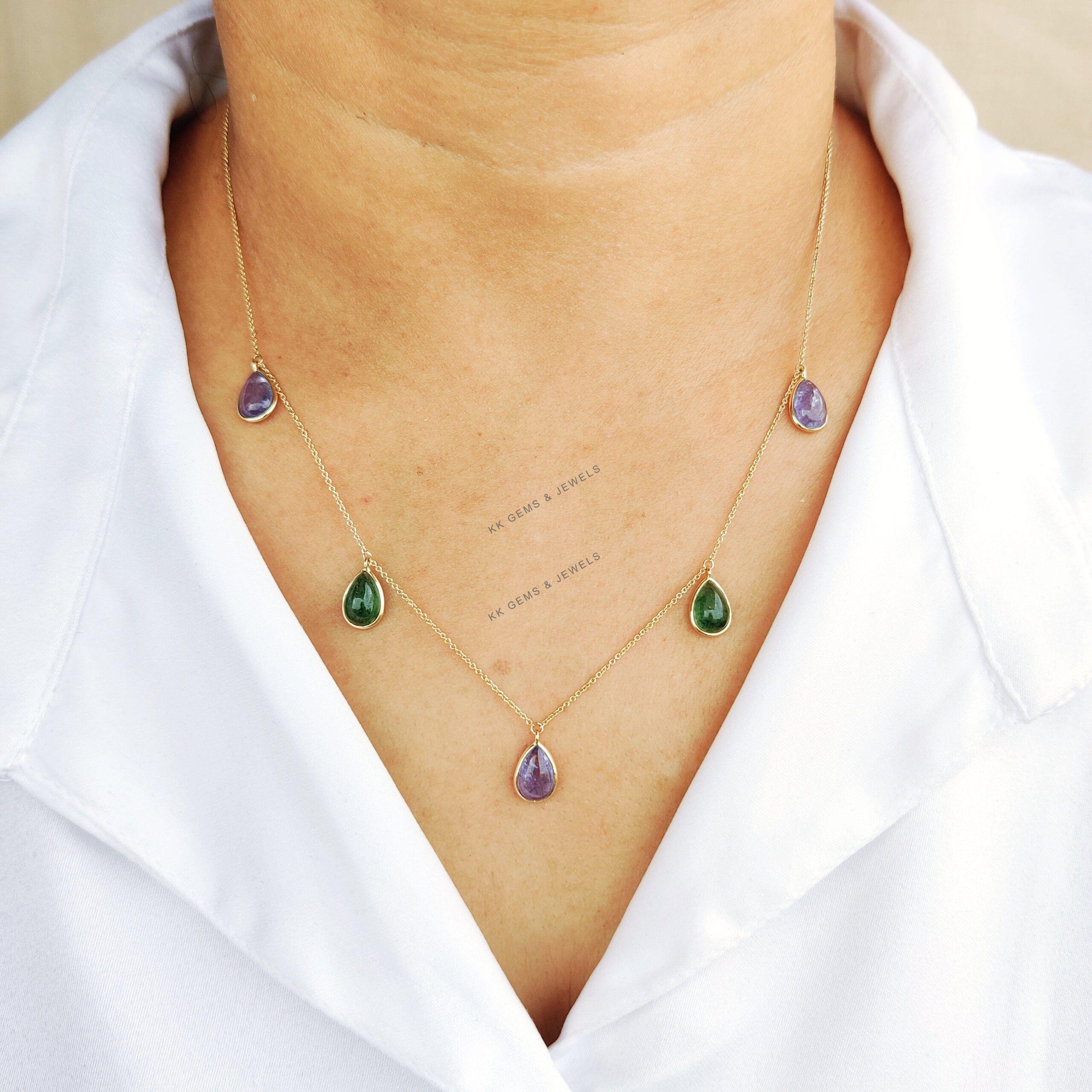 This stunning pendant necklace is set in 14K Solid Yellow Gold with Natural Tanzanite and Green Aventurine with utmost precision. It is an unique gemstone pendant for nearly every occasion and is completely hassle-free jewelry. ✓ ABOUT GEMSTONE Tanzanite is…