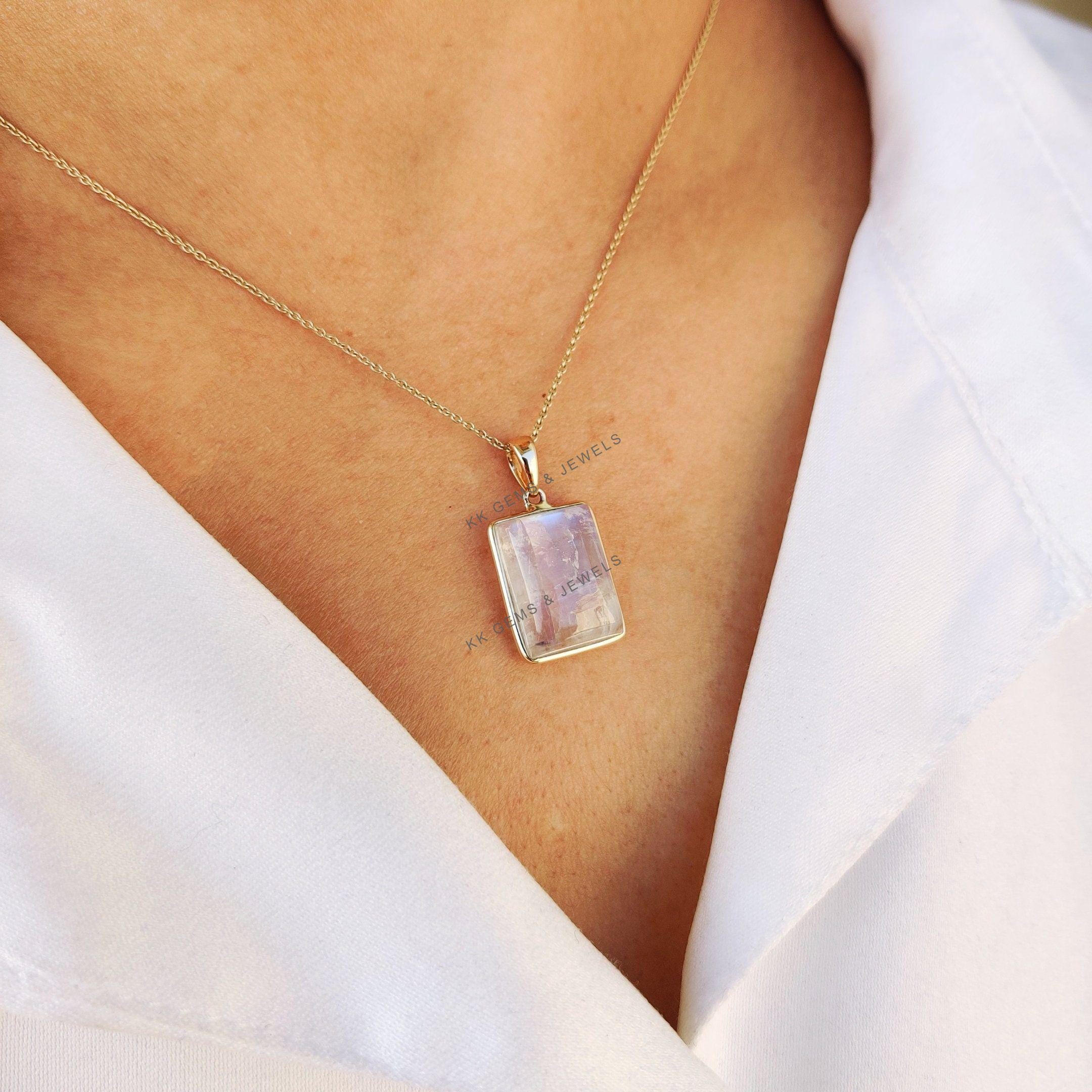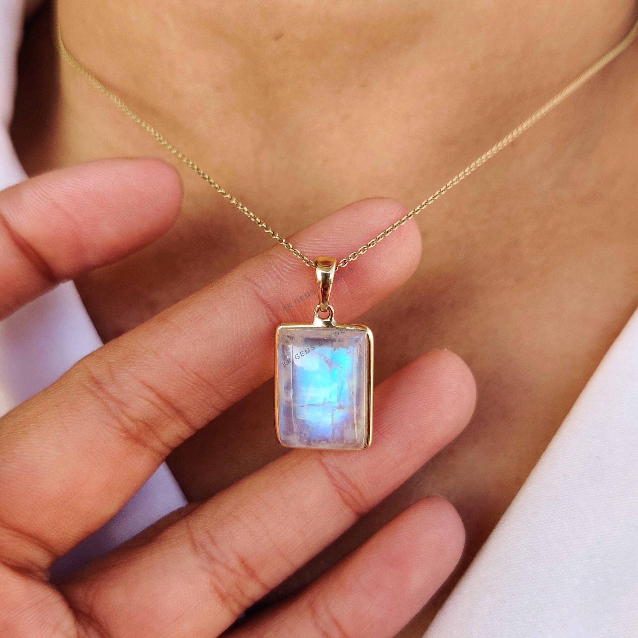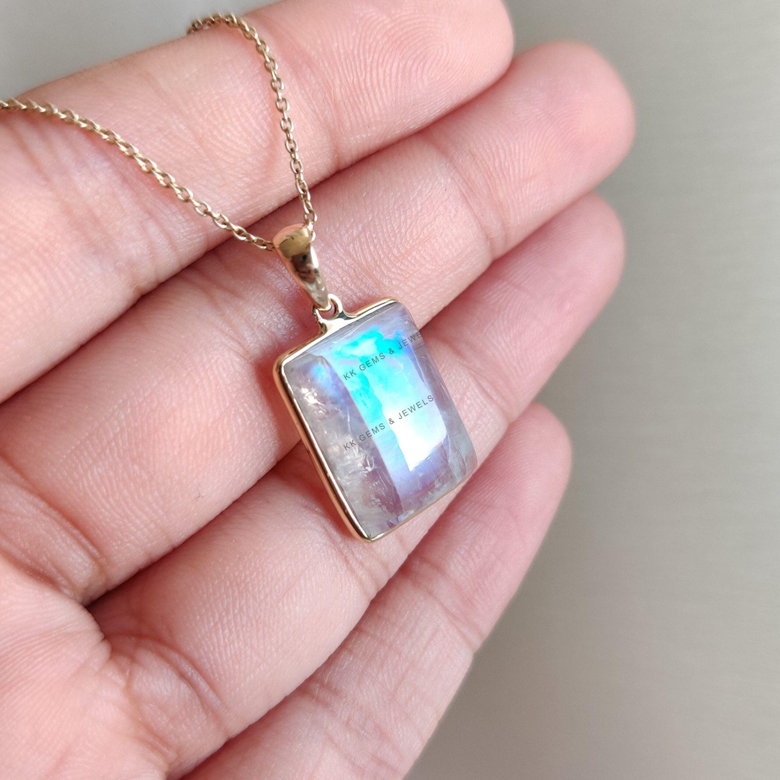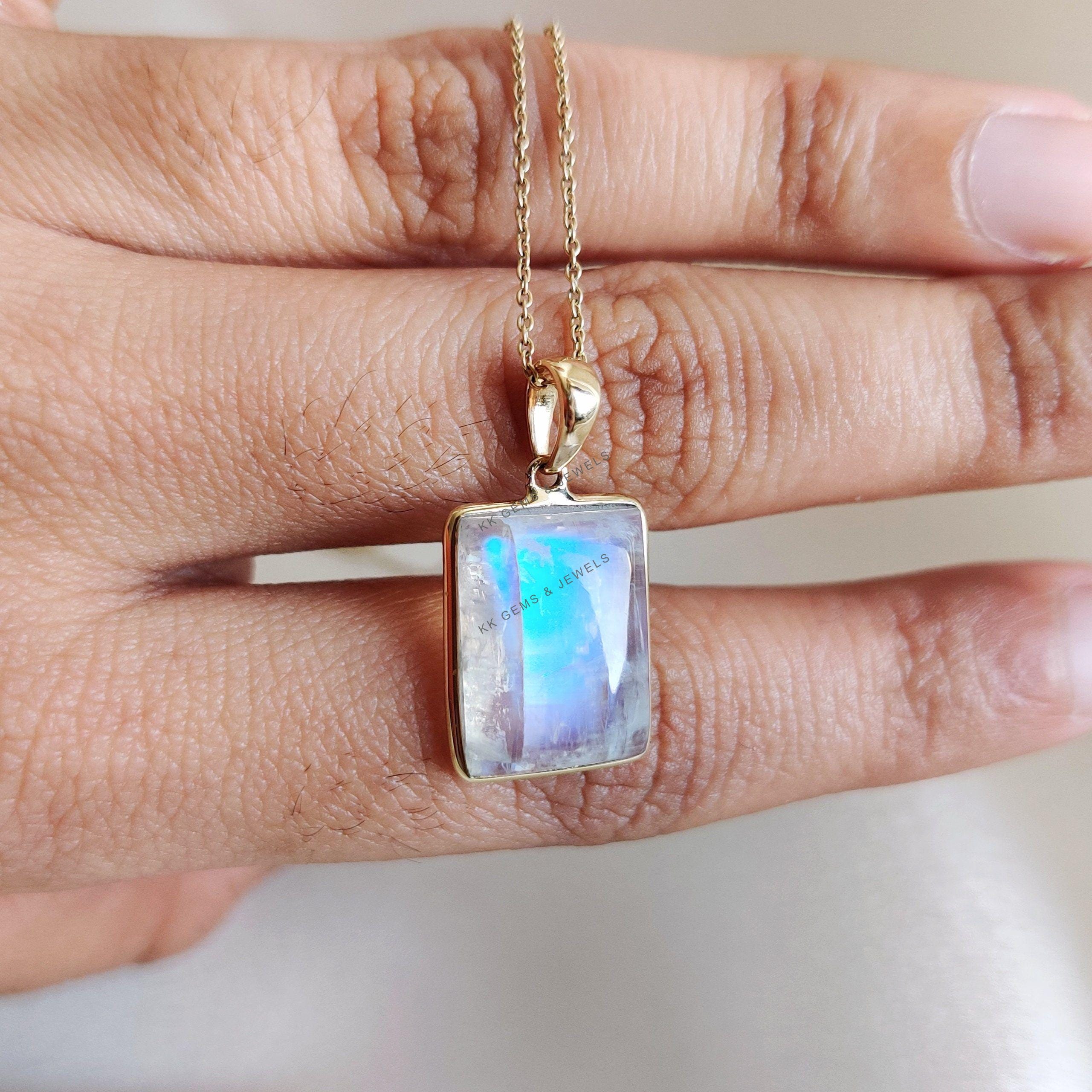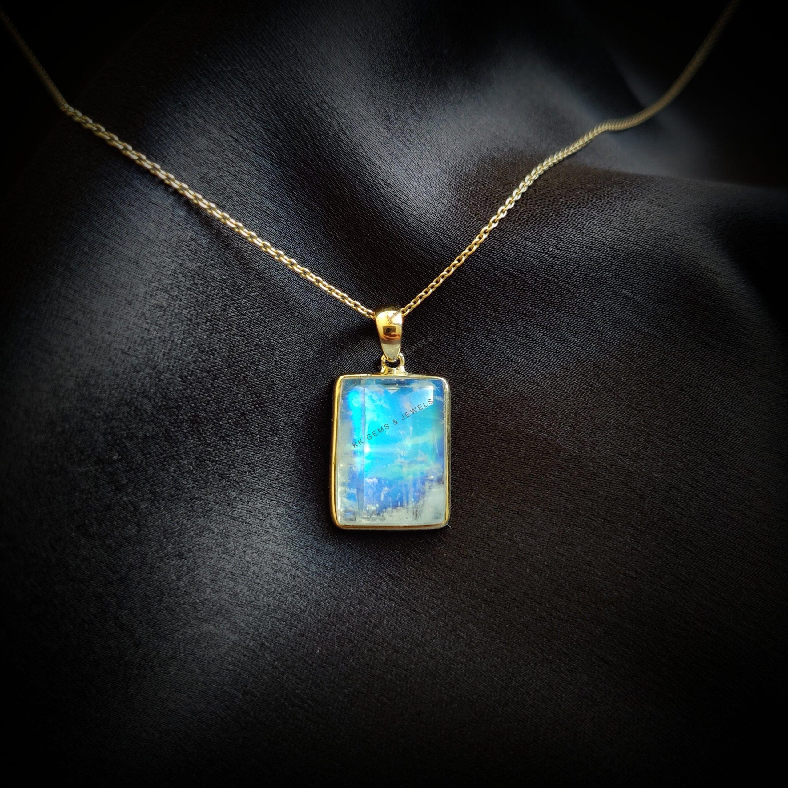 This stunning pendant is set in 14K Solid Yellow Gold with Natural Rainbow Moonstone with utmost precision. It is an unique gemstone pendant for nearly every occasion and is completely hassle-free jewelry. ✓ ABOUT GEMSTONE: Rainbow Moonstone is believed to…