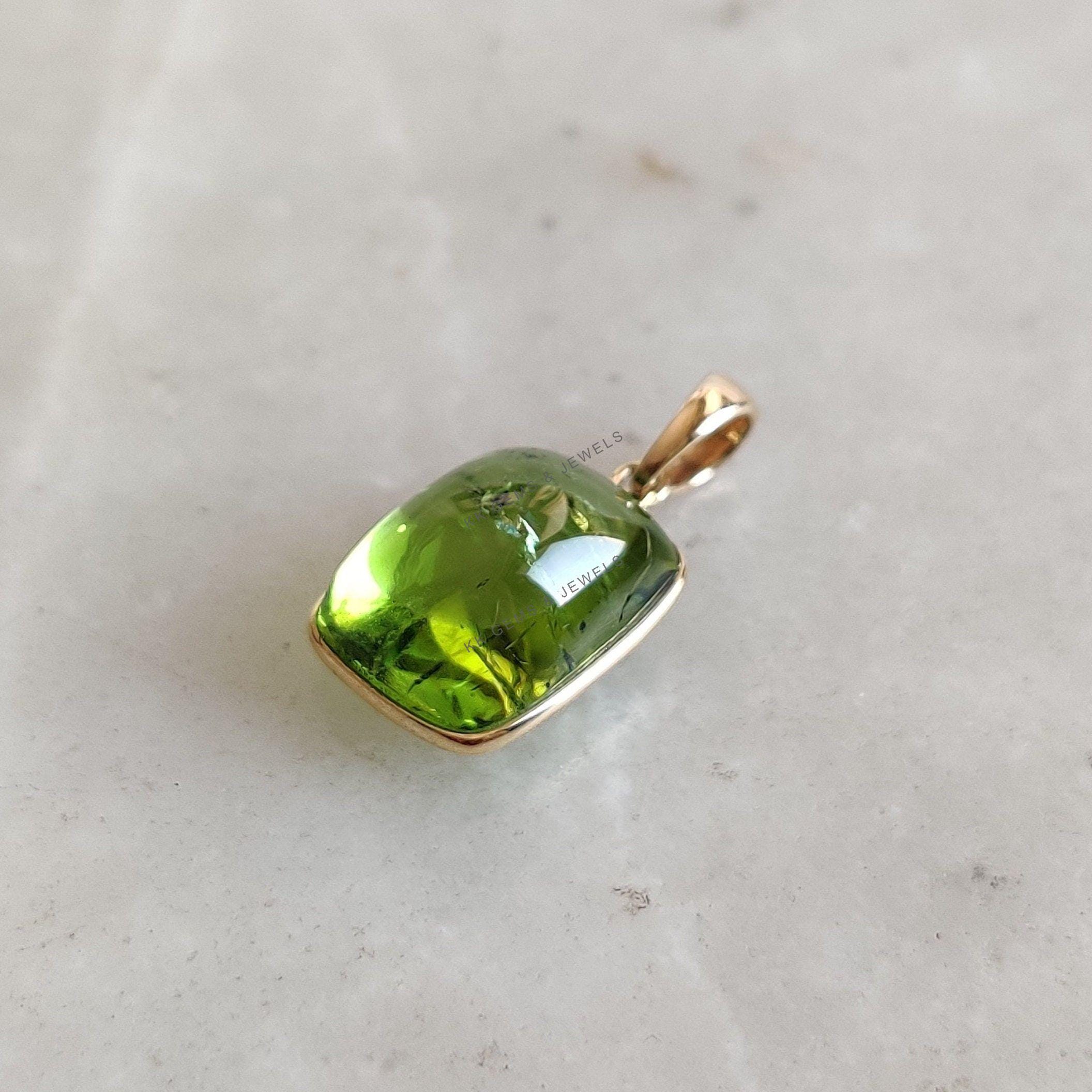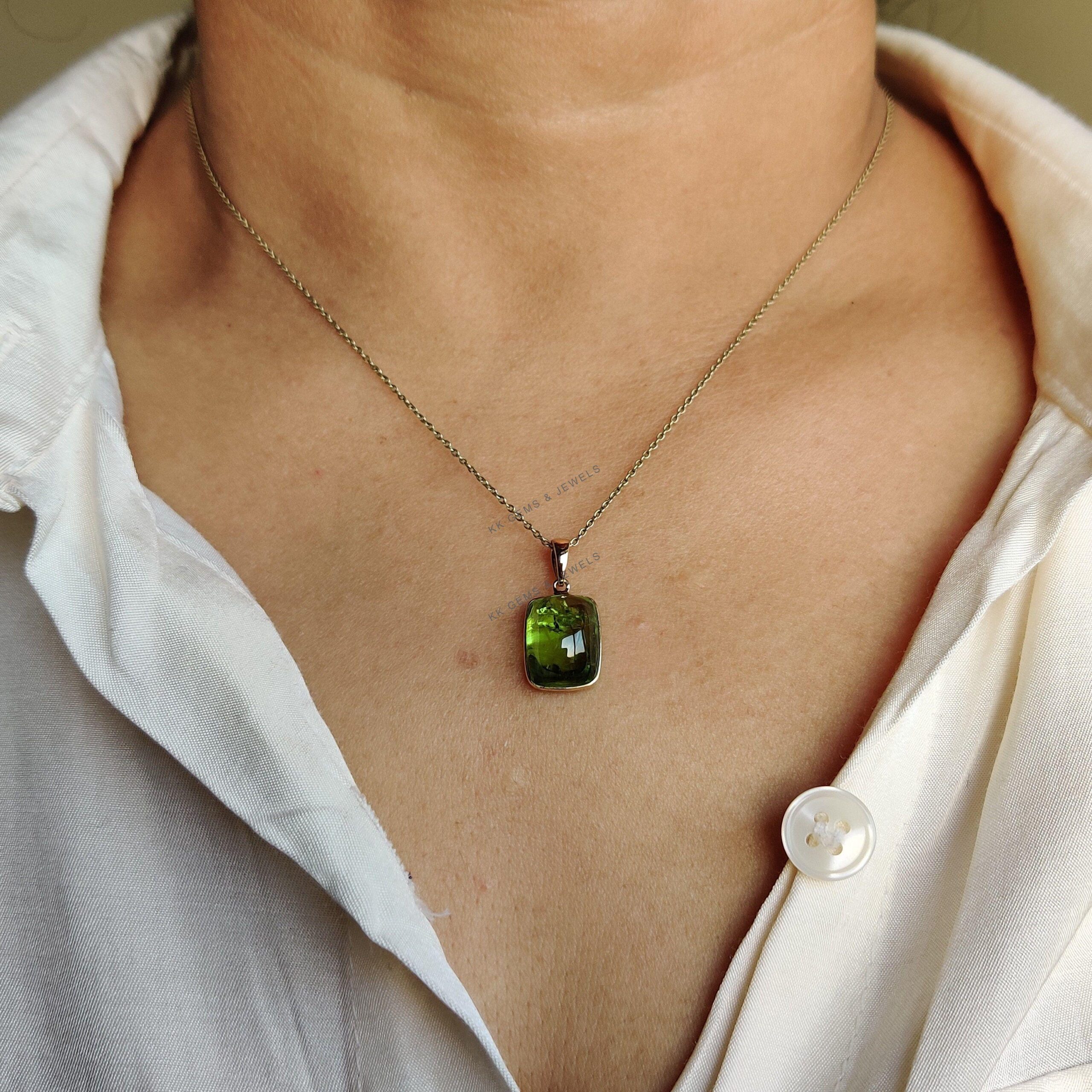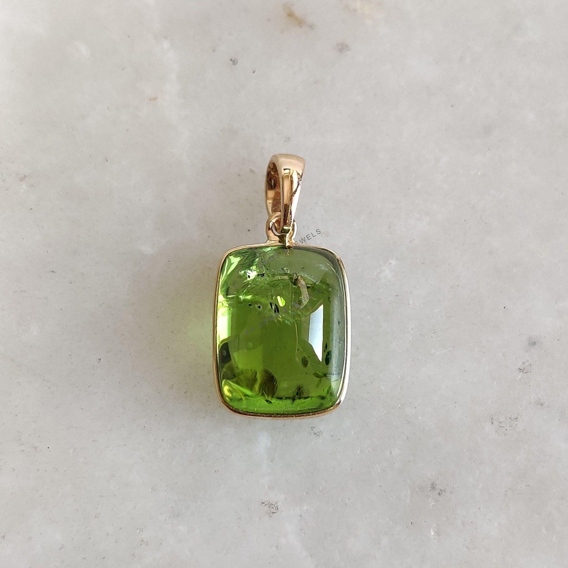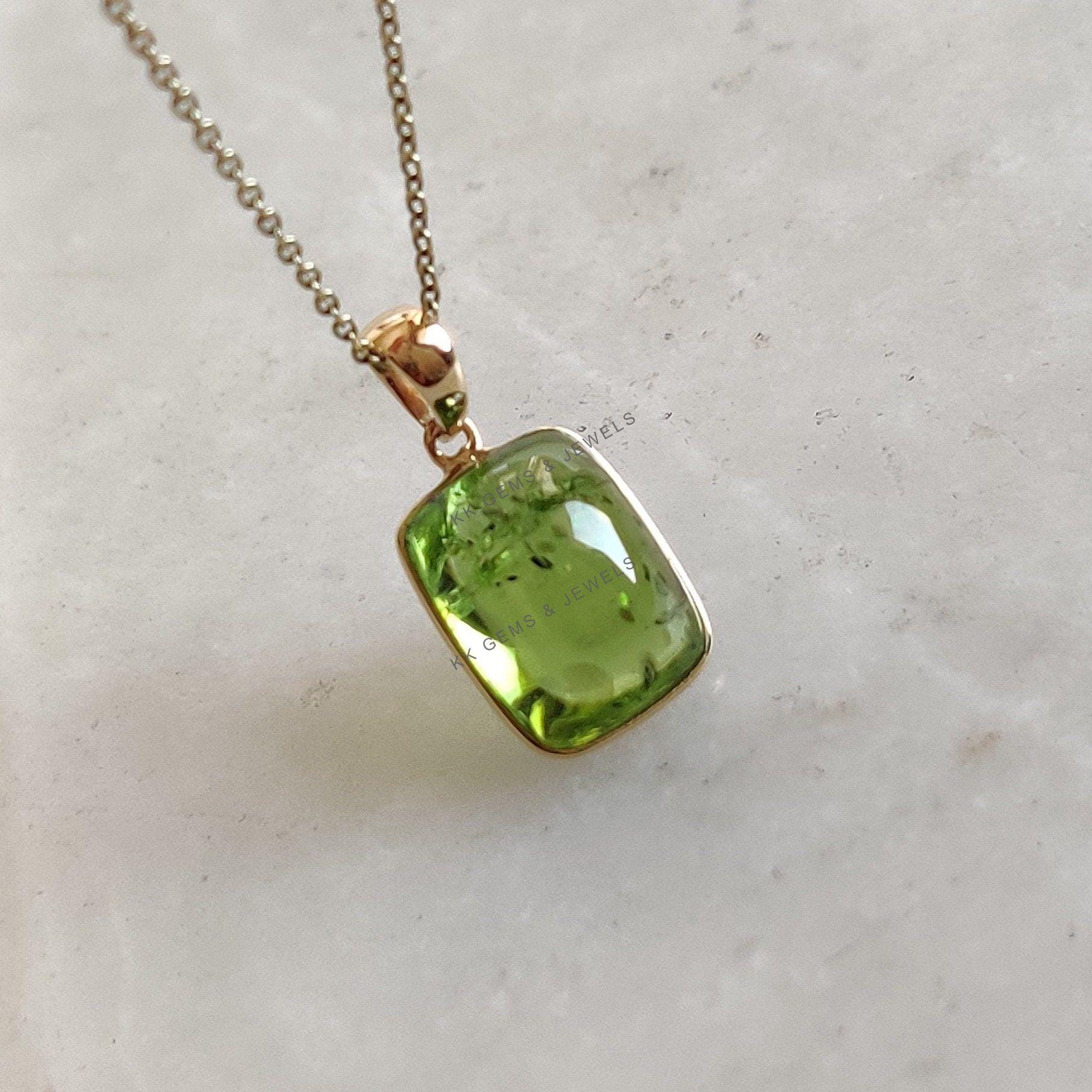Be the first to review “Rectangle Cushion Natural Peridot Birthstone Pendant Set in 14K Solid Gold”