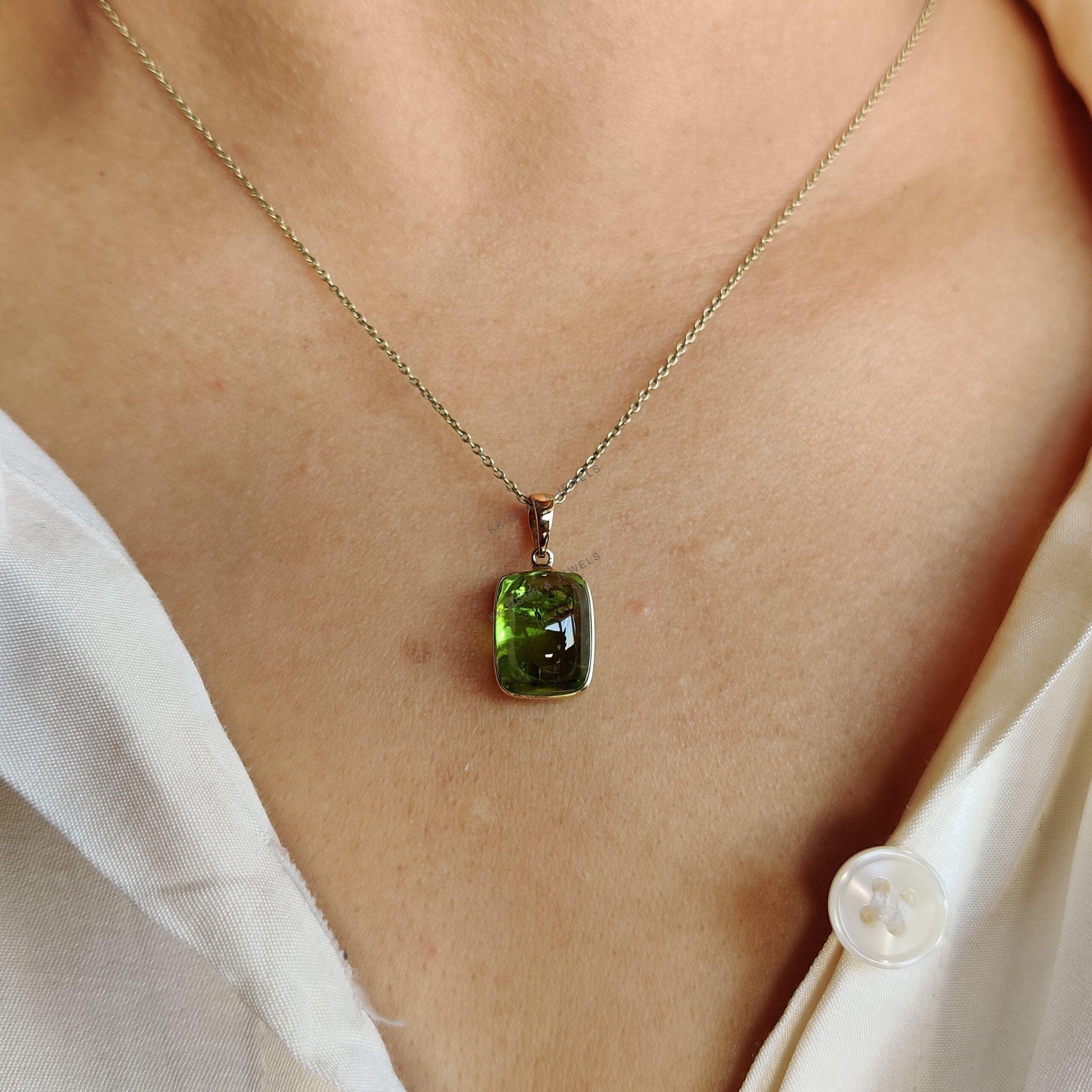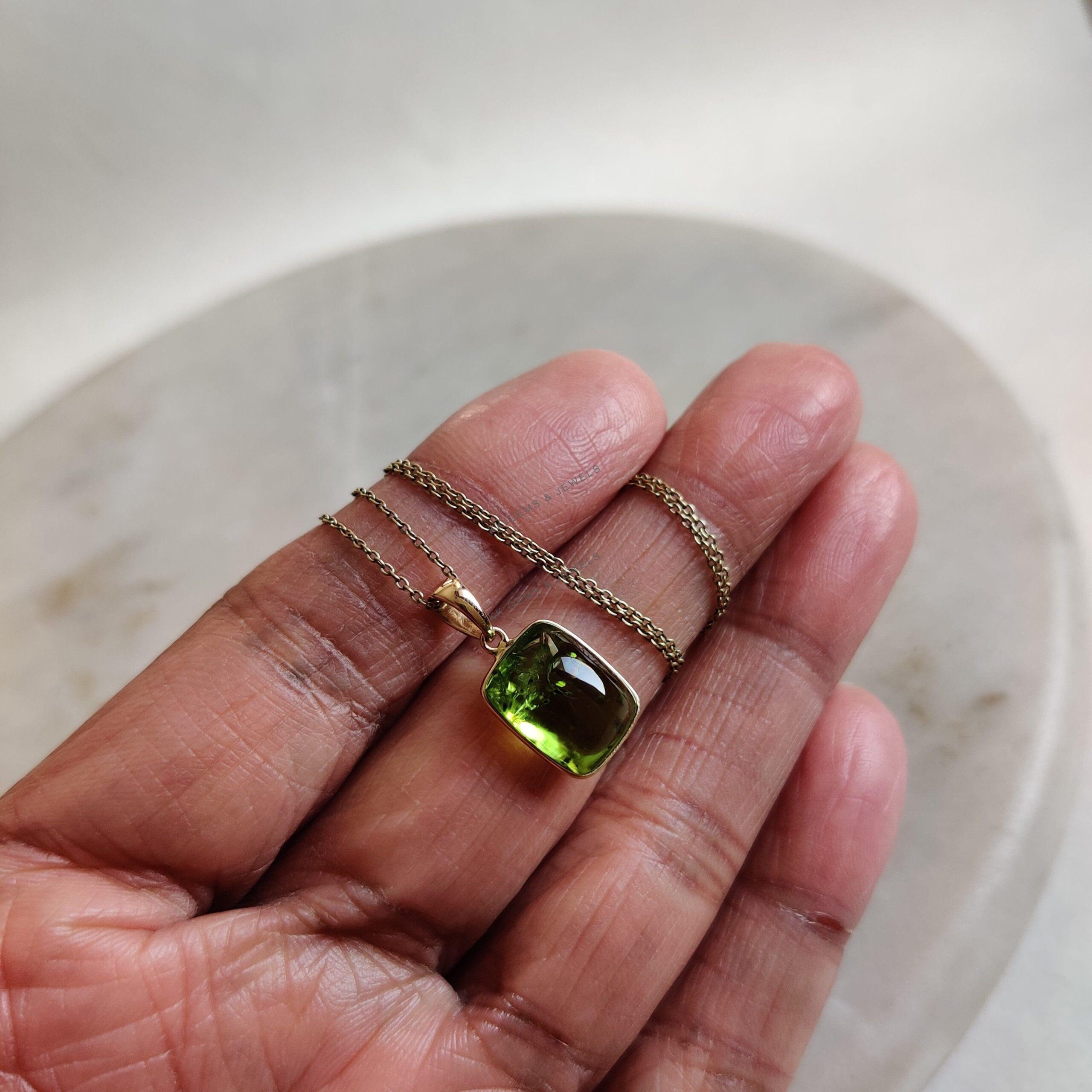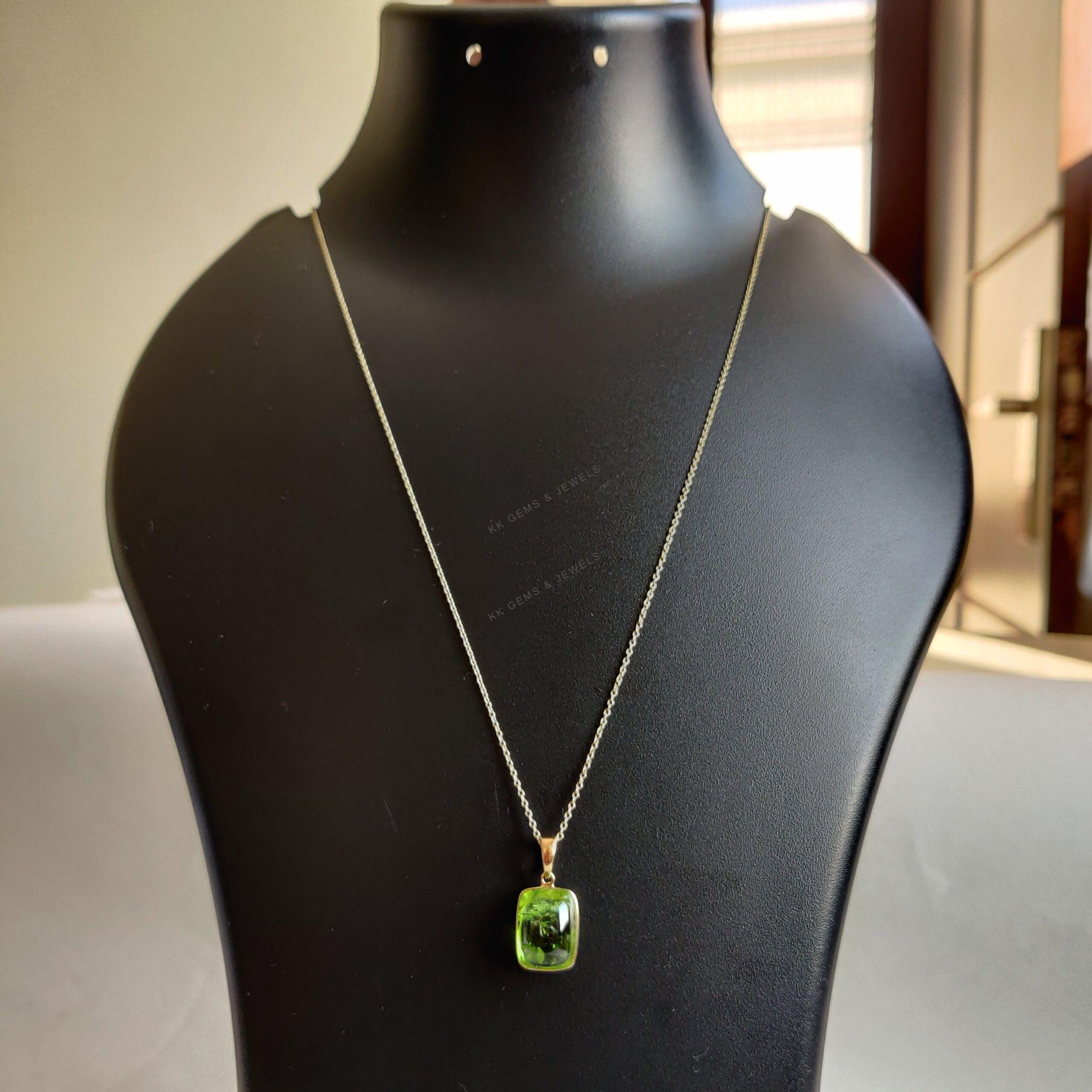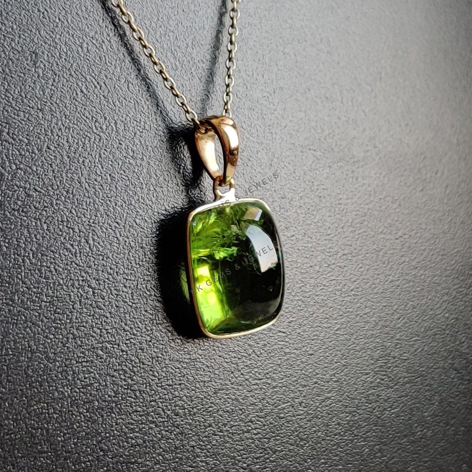 Be the first to review “Rectangle Cushion Natural Peridot Birthstone Pendant Set in 14K Solid Gold”