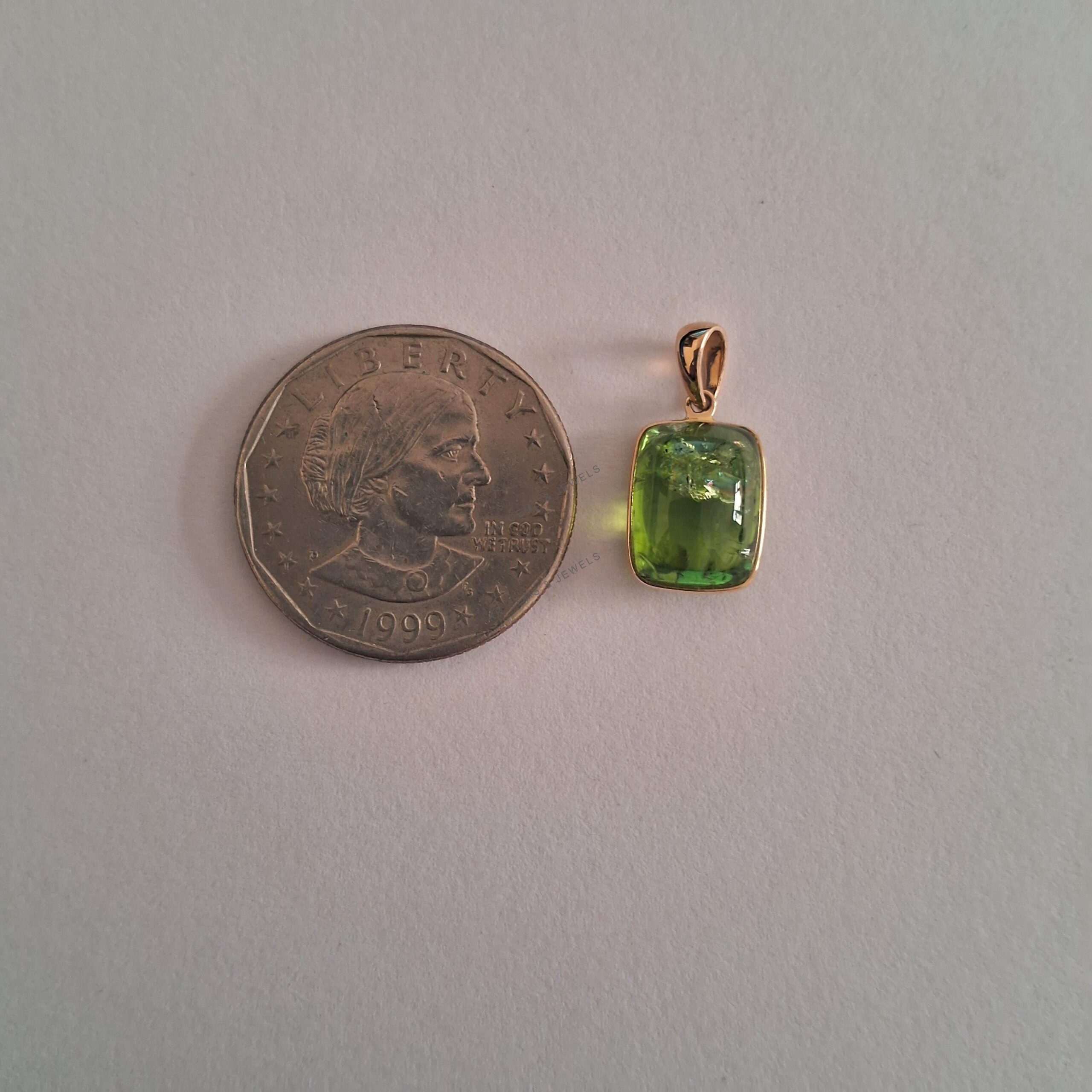 Rectangle Cushion Natural Peridot Birthstone Pendant Set in 14K Solid Gold
