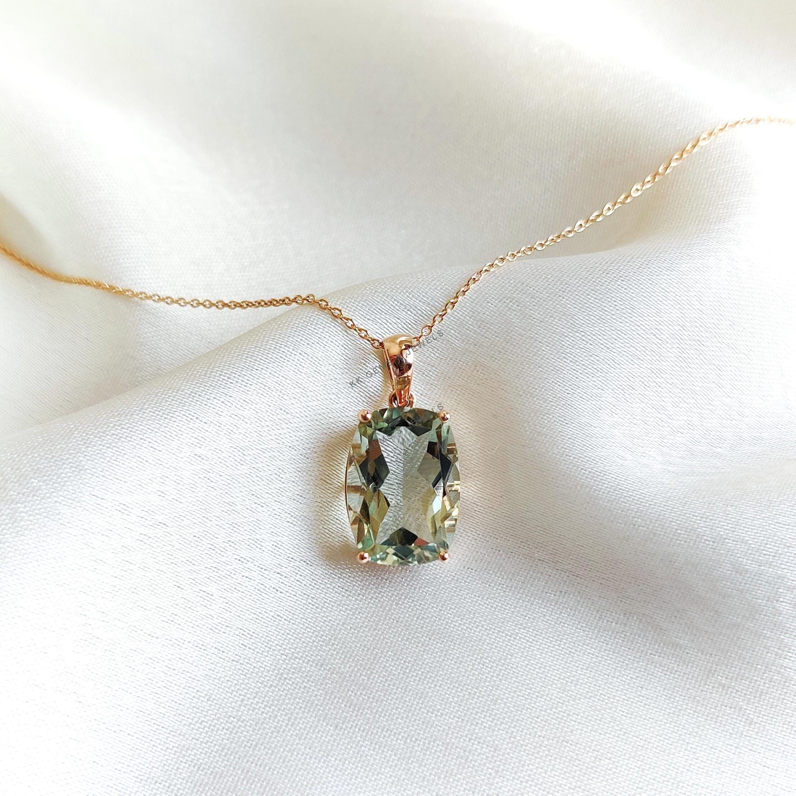 This stunning pendant is set in 14k Solid Rose Gold with Natural Green Amethyst with utmost precision. It is an unique gemstone pendant for nearly every occasion and is completely hassle-free jewelry. ✓ ABOUT GEMSTONE Green amethyst, also known as…