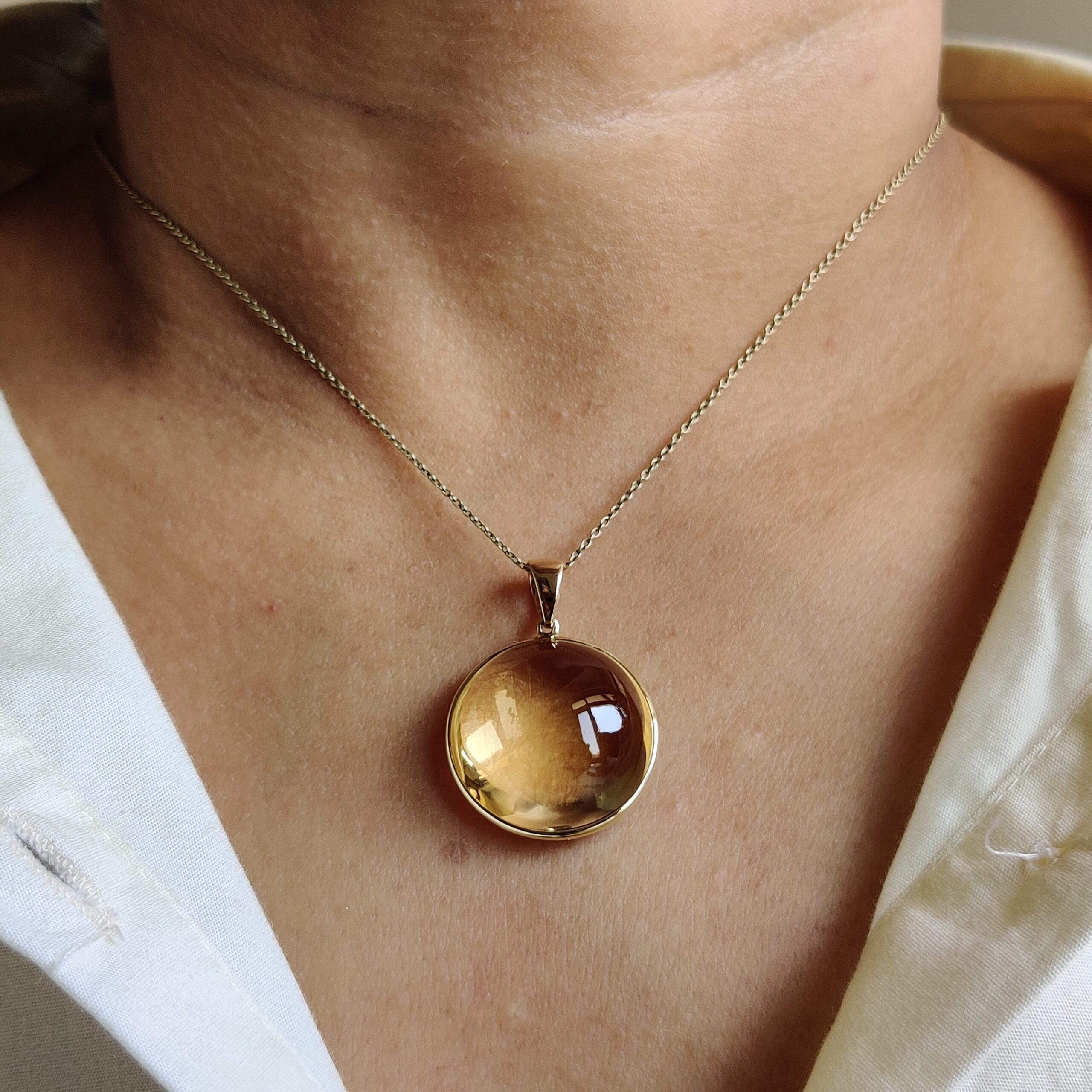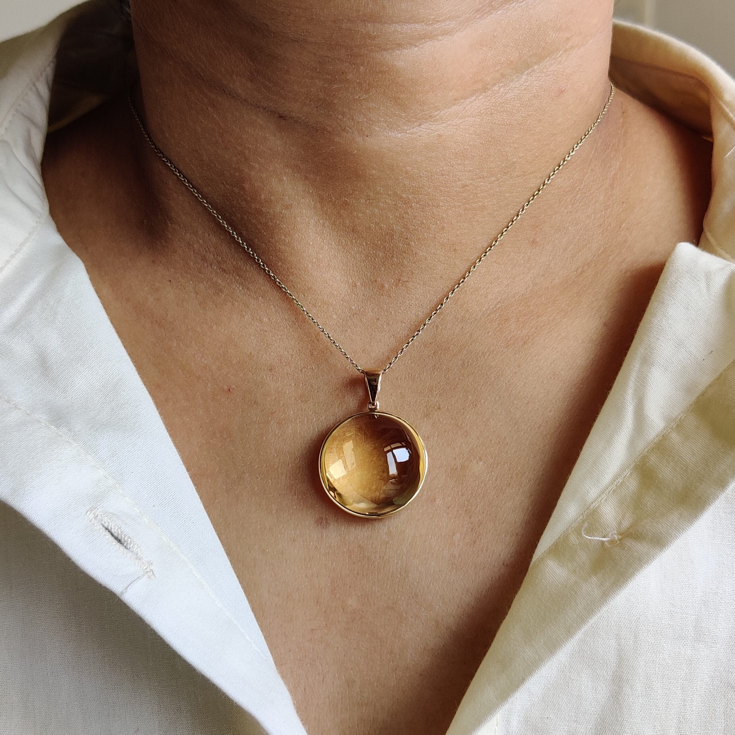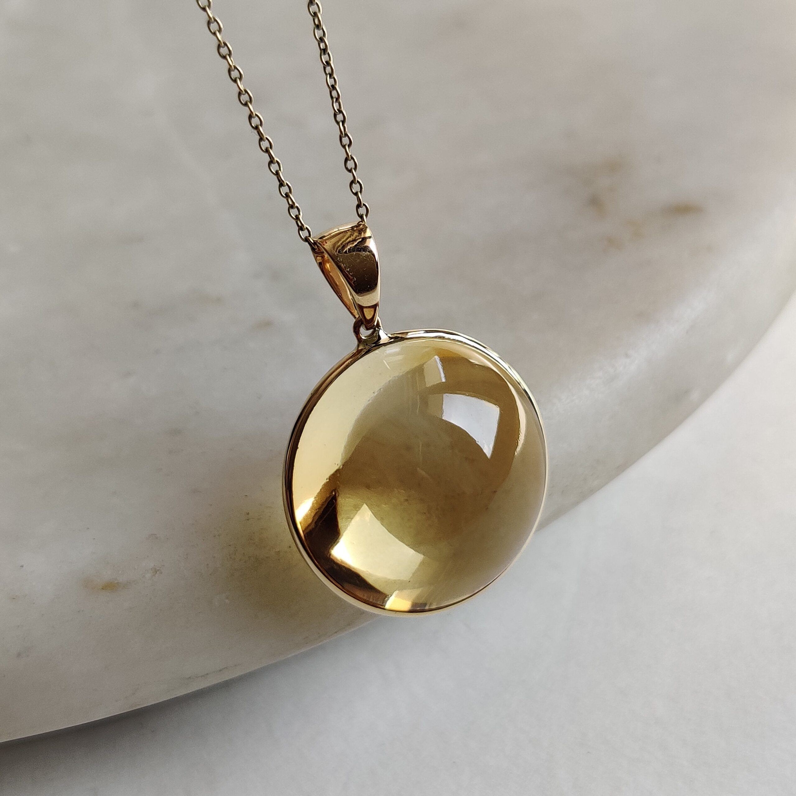 1 review for Round Shape Natural Citrine Birthstone Pendant, 14K Solid Gold, Bezel Set