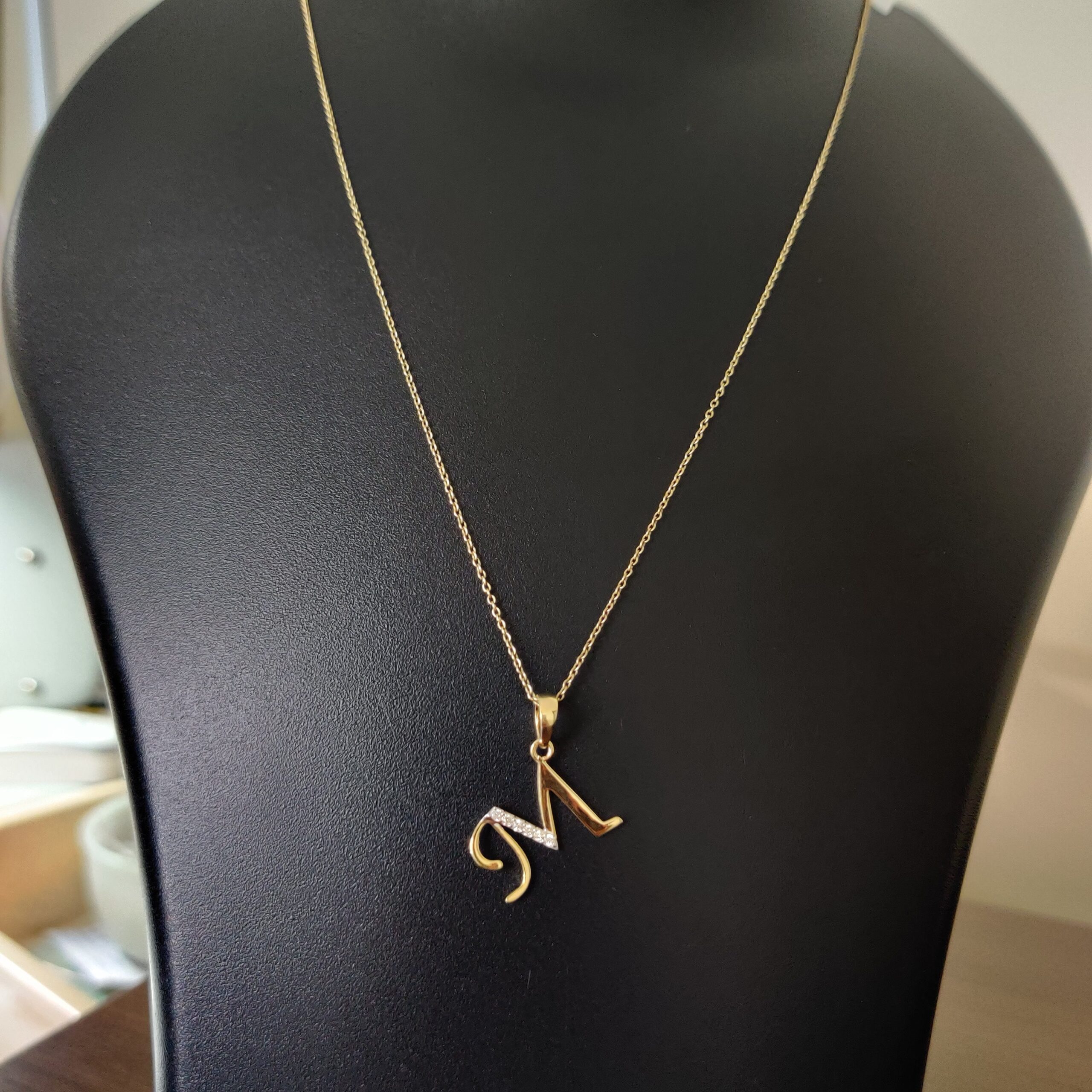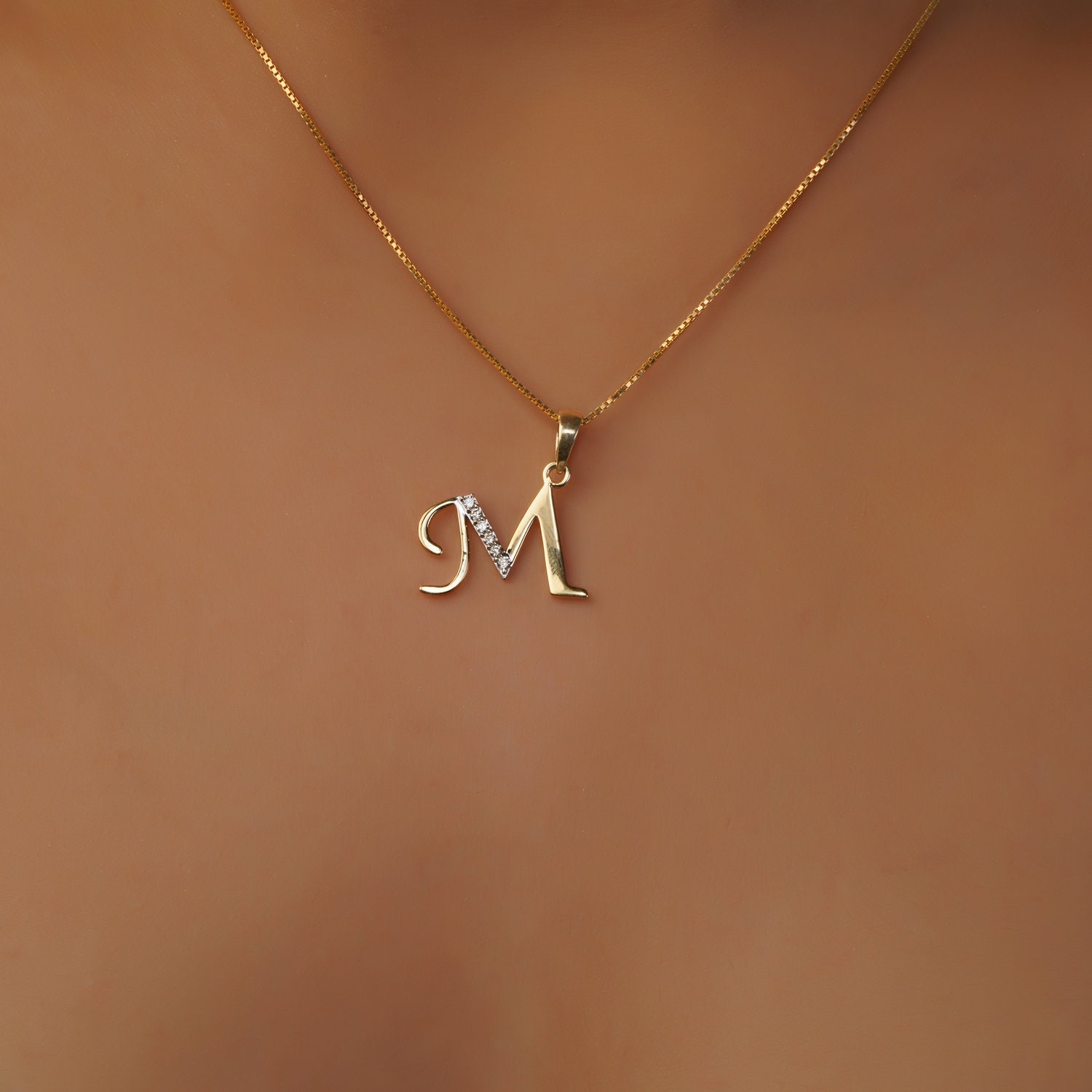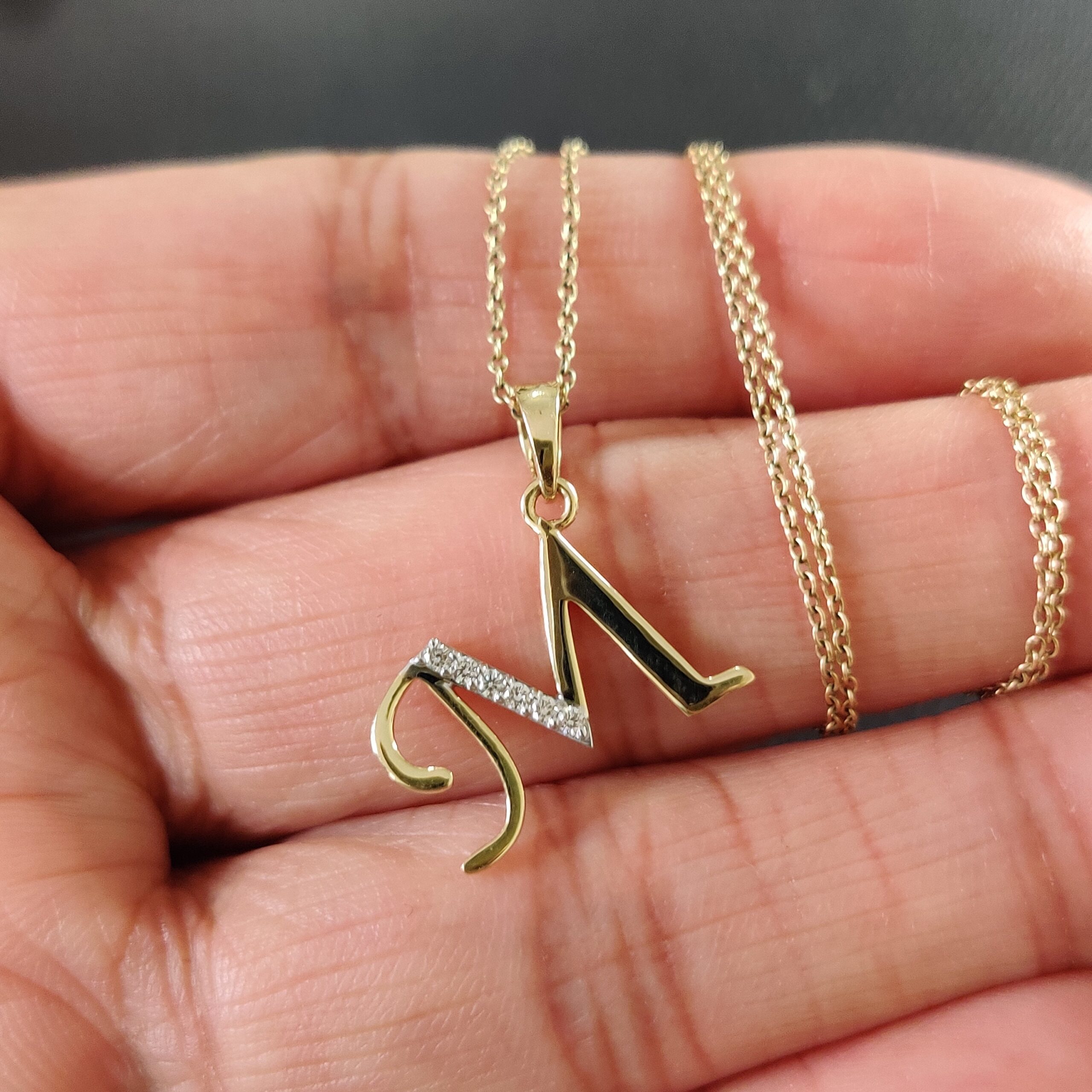 This is an exquisite initial diamond charm pendant set in 14K Solid Gold. An elegant design, perfect for any occassion ITEM DETAILS: ✓ Letter : M ✓ Gold Kt: Solid 14K Yellow Gold ✓ 14 K Gold Weight : 1.18…