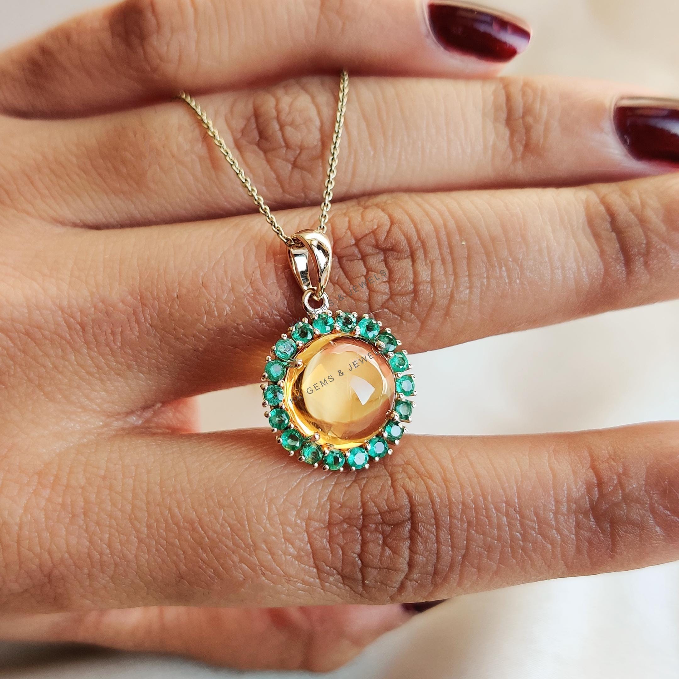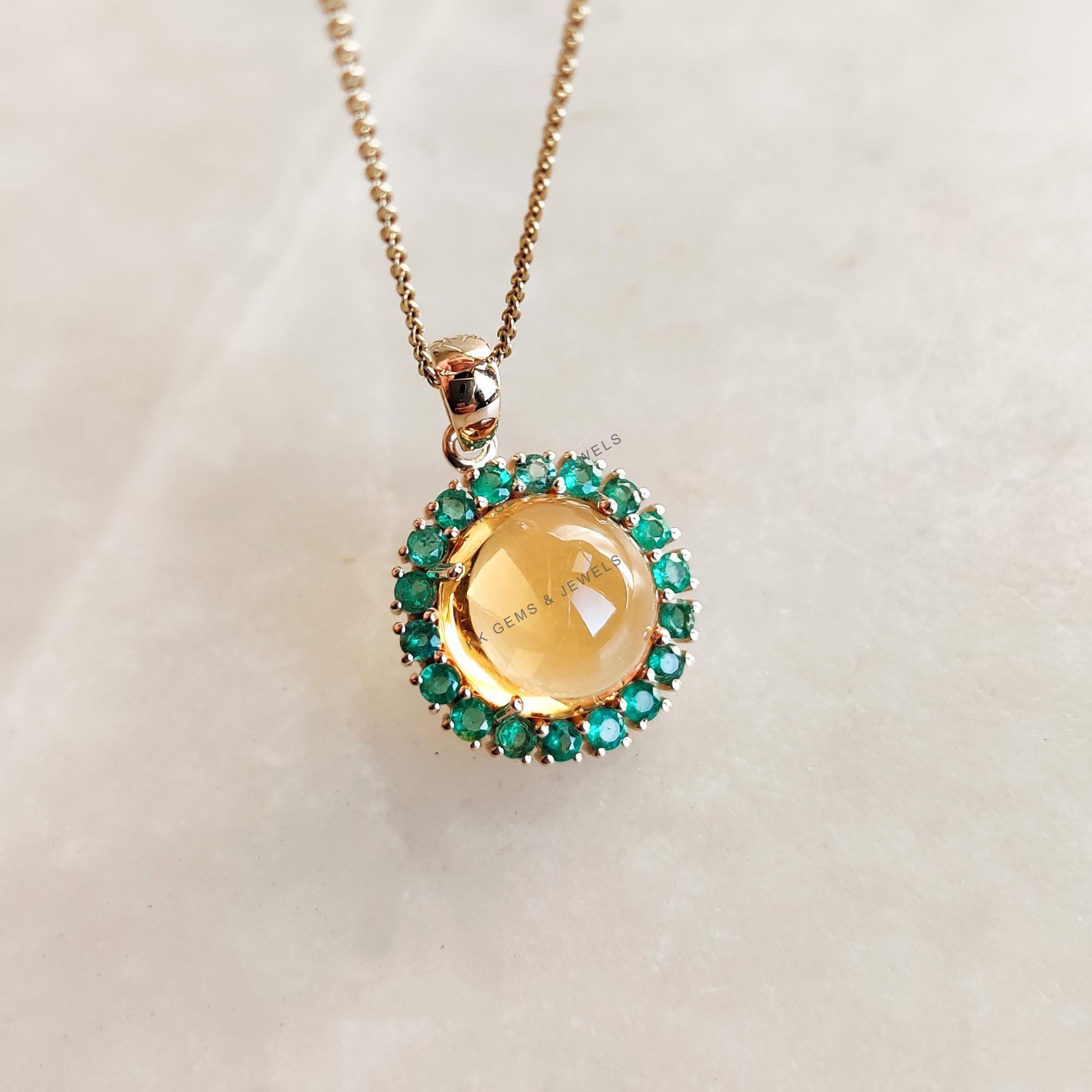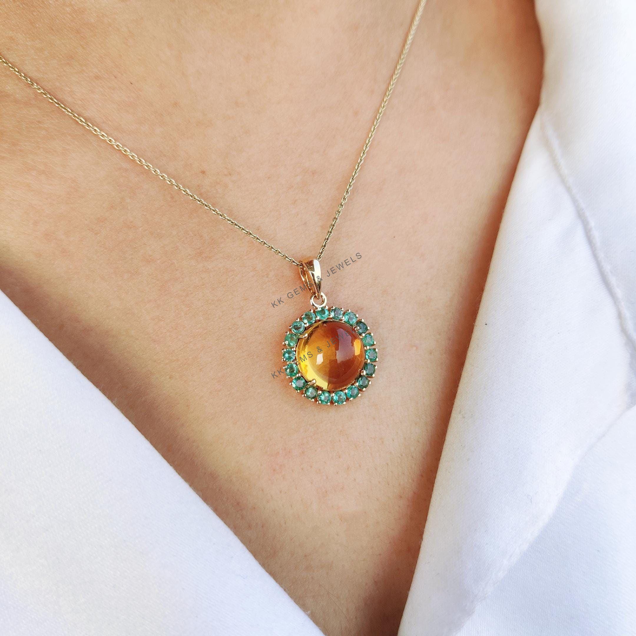 This stunning pendant is set in 14K Solid Yellow Gold with Natural Citrine and Emerald with utmost precision. It is an unique gemstone pendant for nearly every occasion and is completely hassle-free jewelry. ✓ ABOUT GEMSTONE Citrine, with its vibrant…