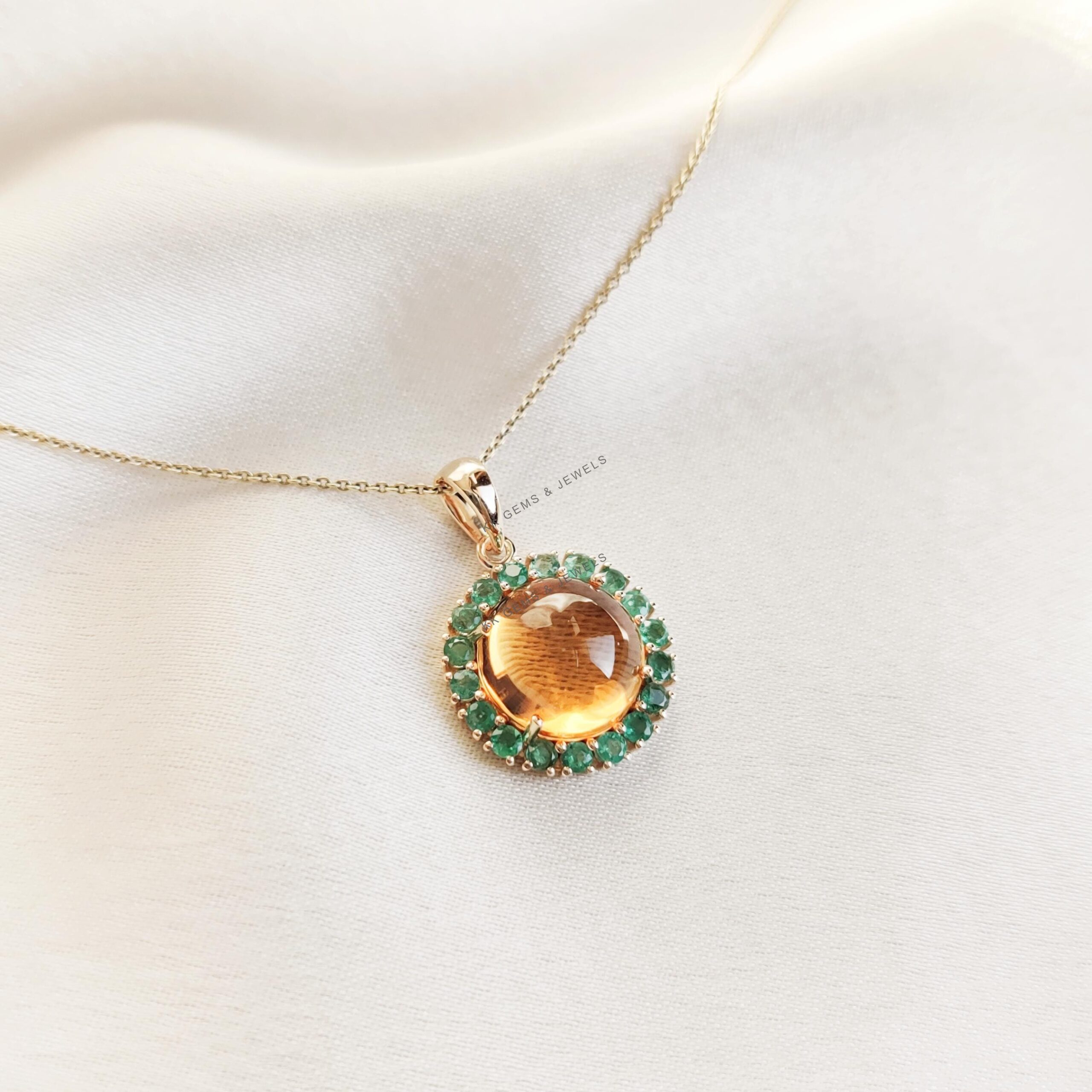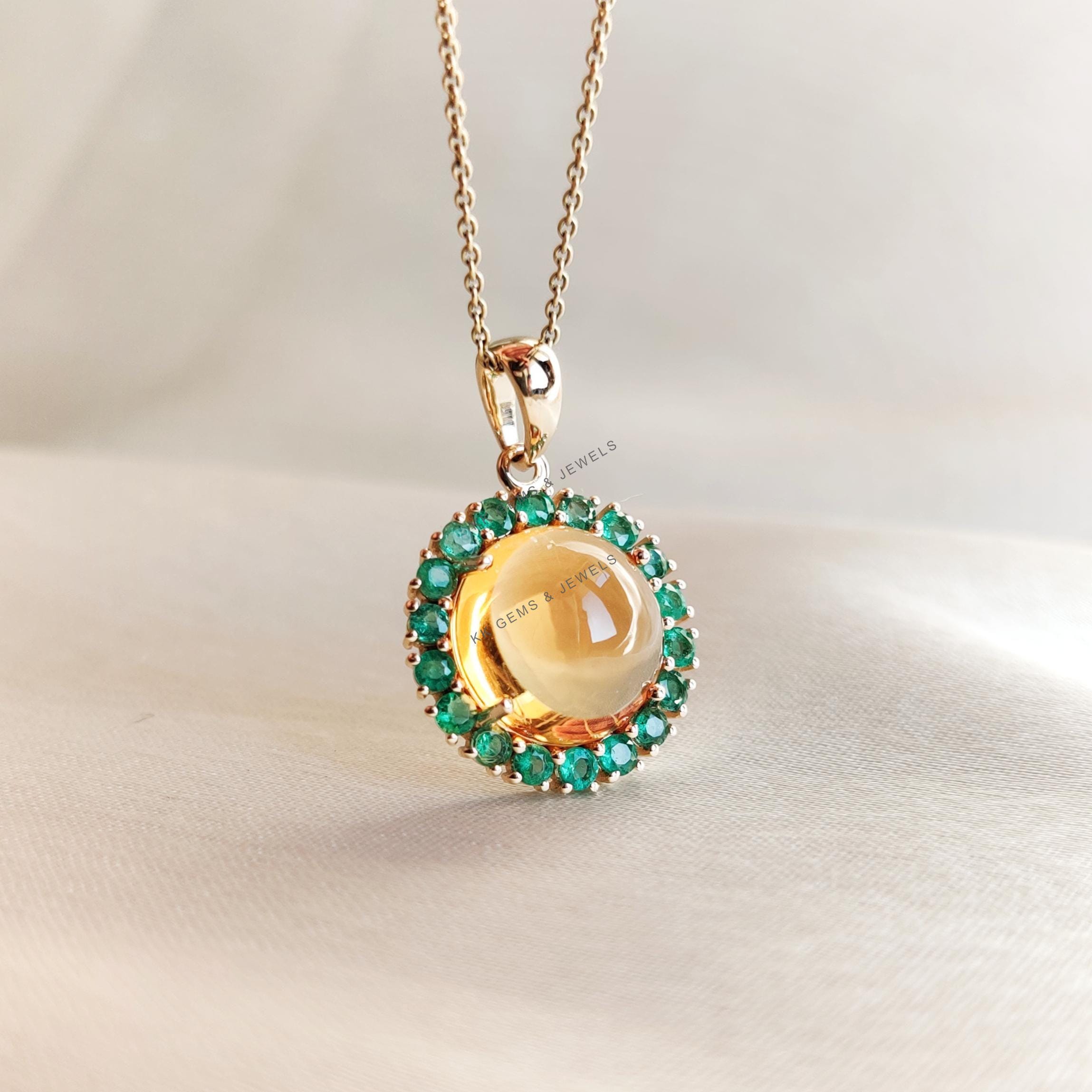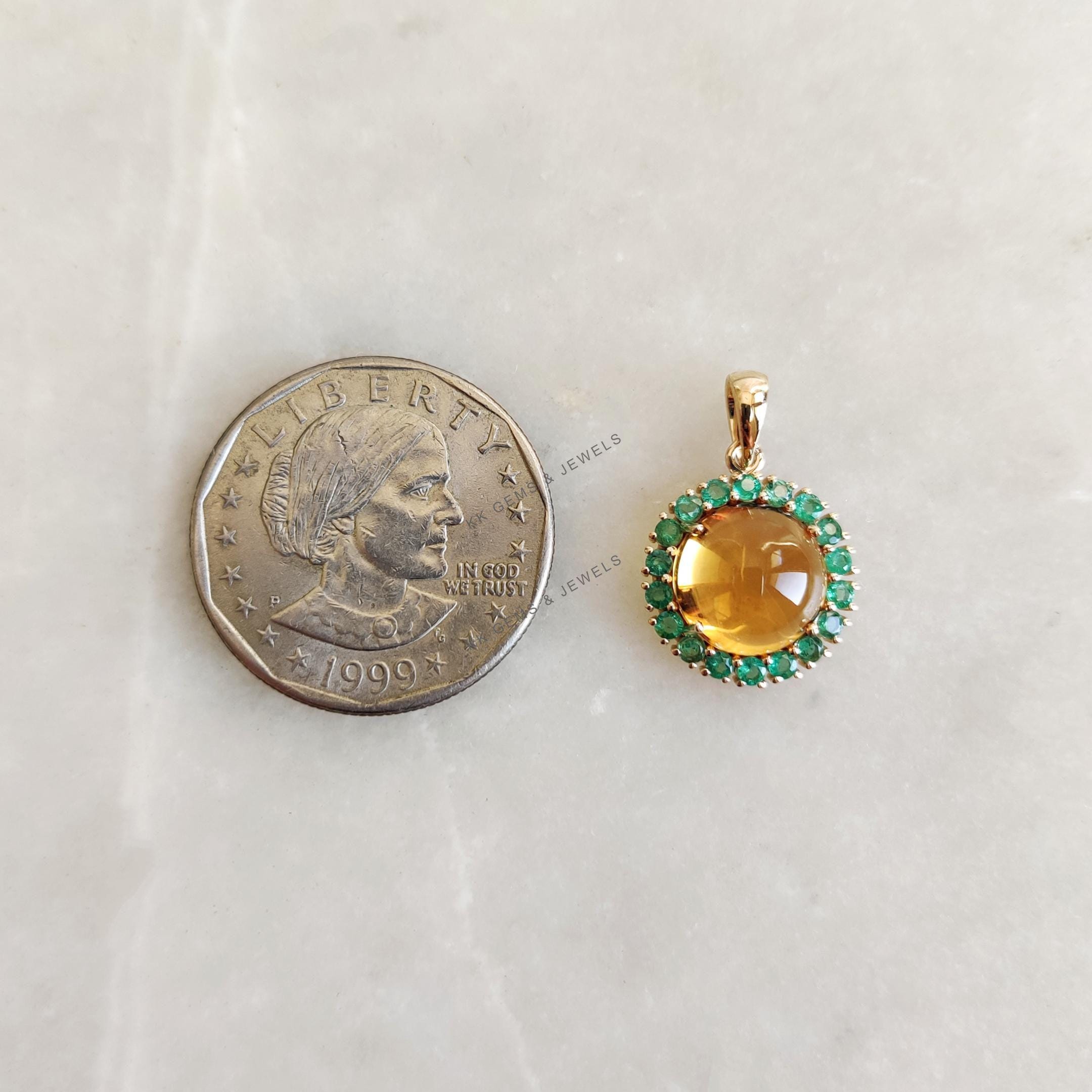 This stunning pendant is set in 14K Solid Yellow Gold with Natural Citrine and Emerald with utmost precision. It is an unique gemstone pendant for nearly every occasion and is completely hassle-free jewelry. ✓ ABOUT GEMSTONE Citrine, with its vibrant…