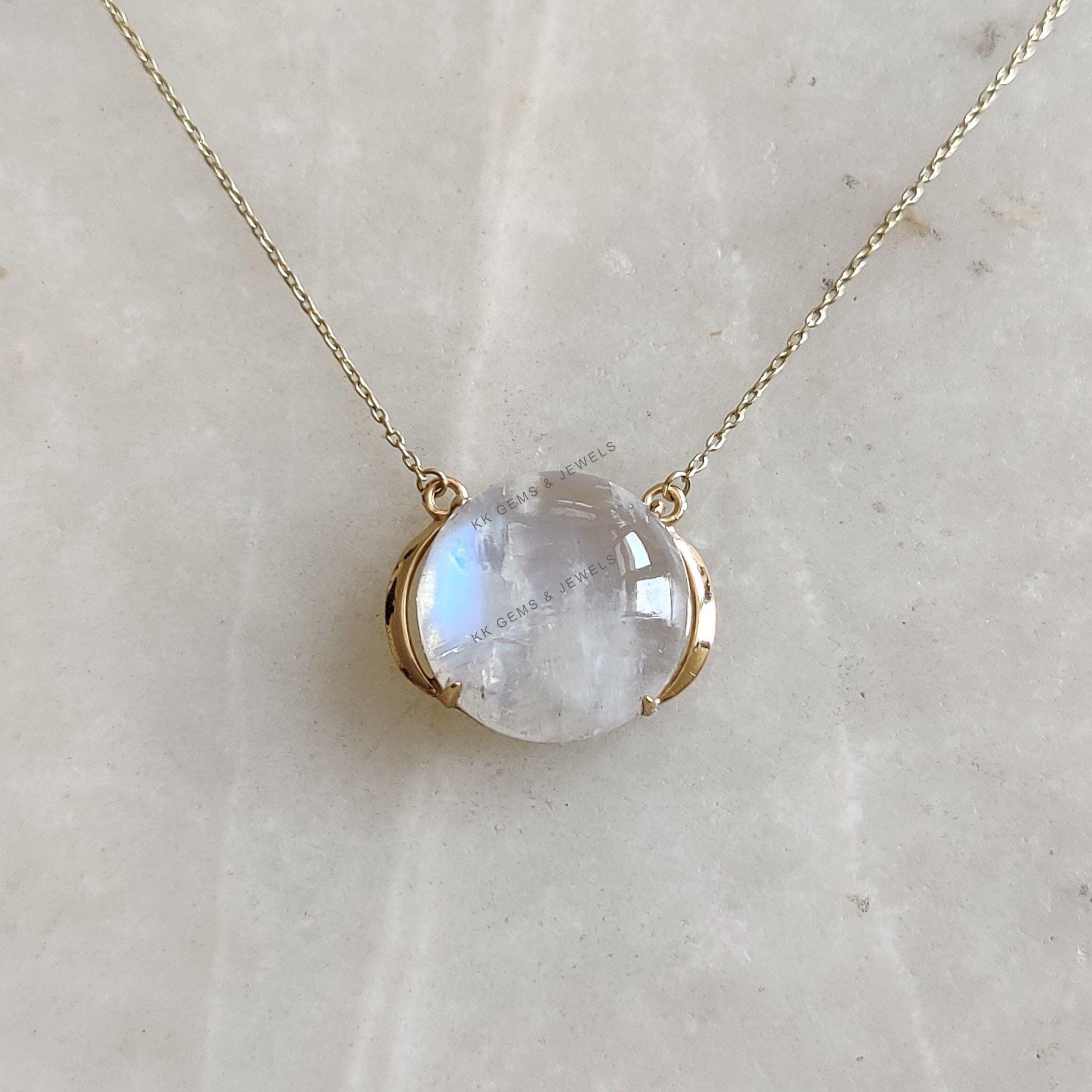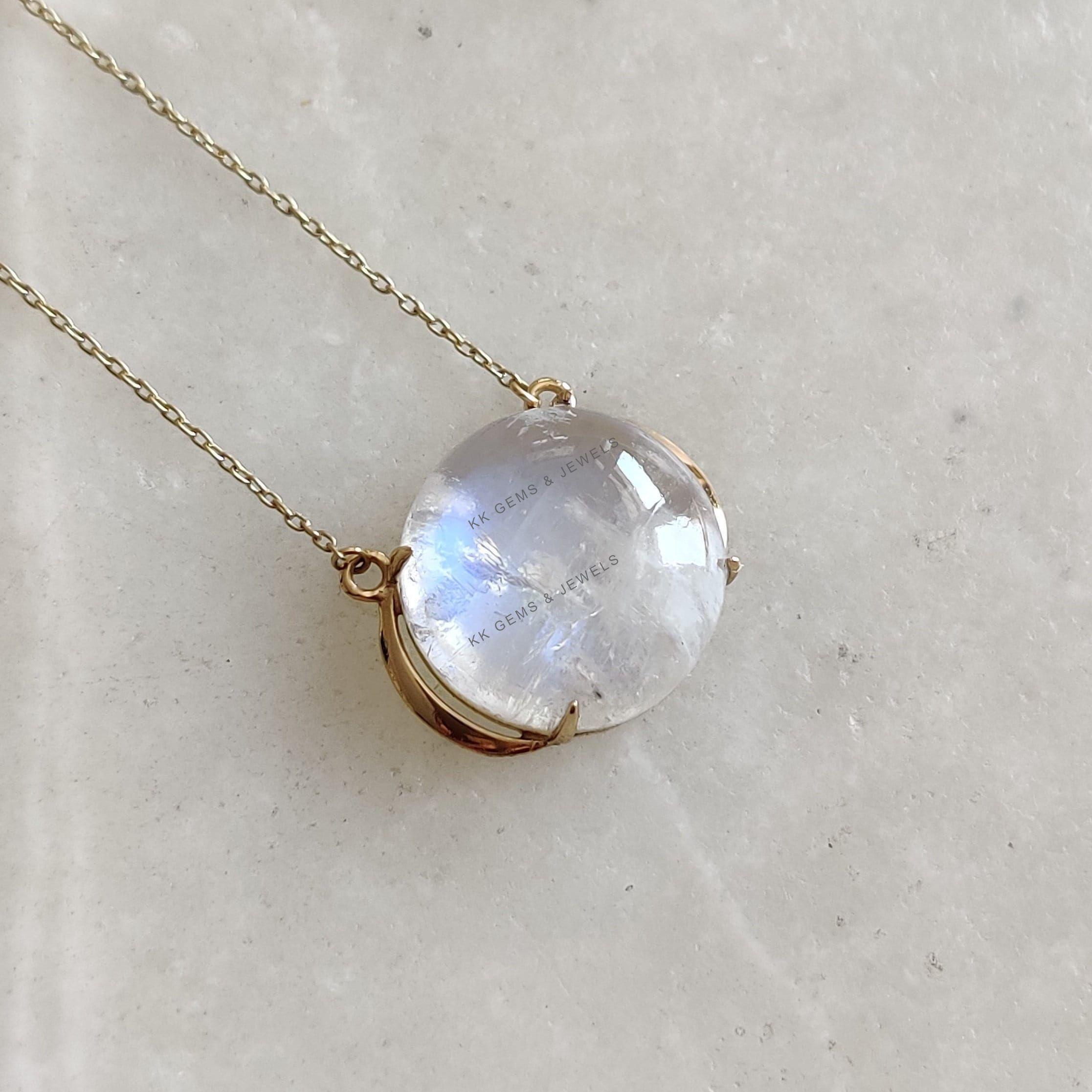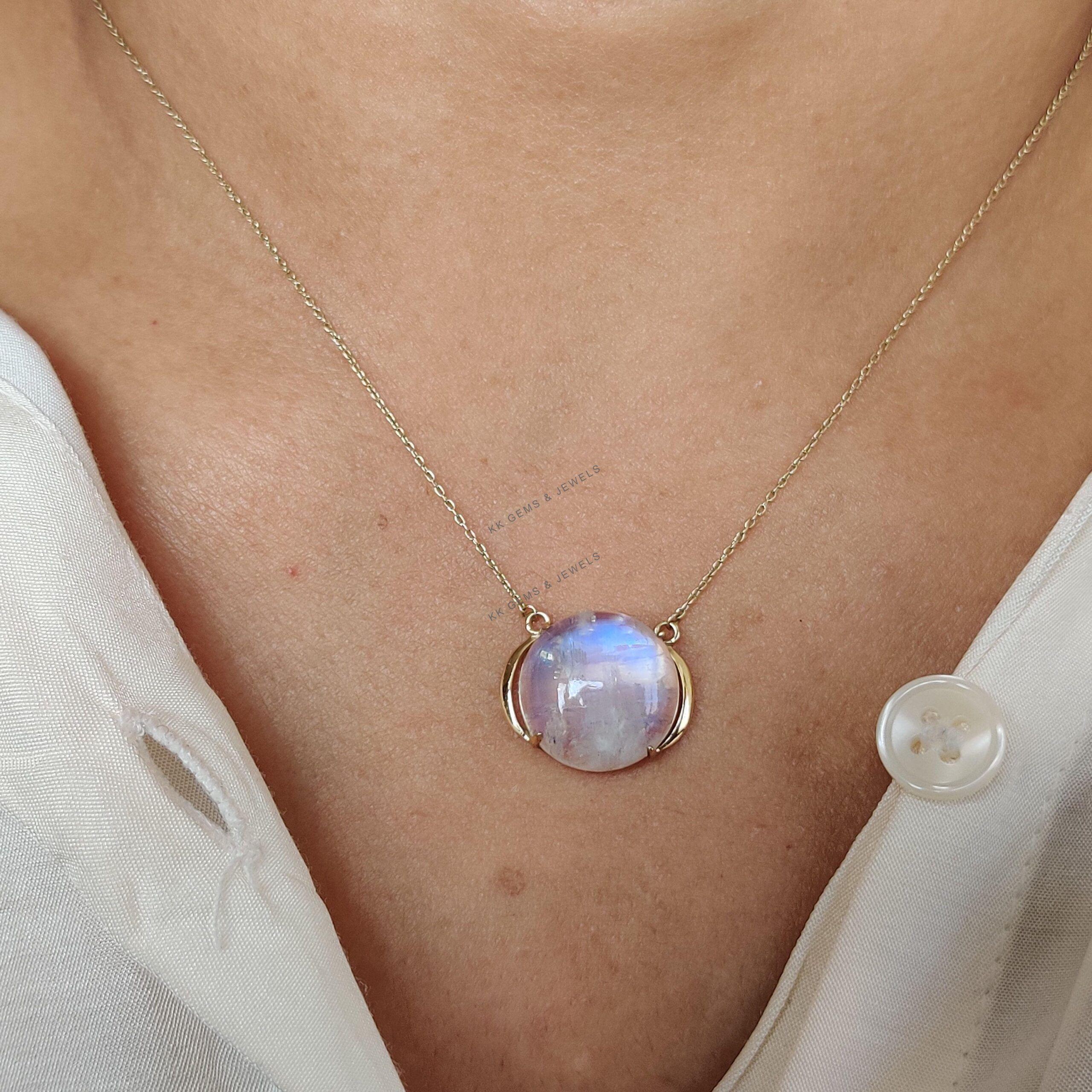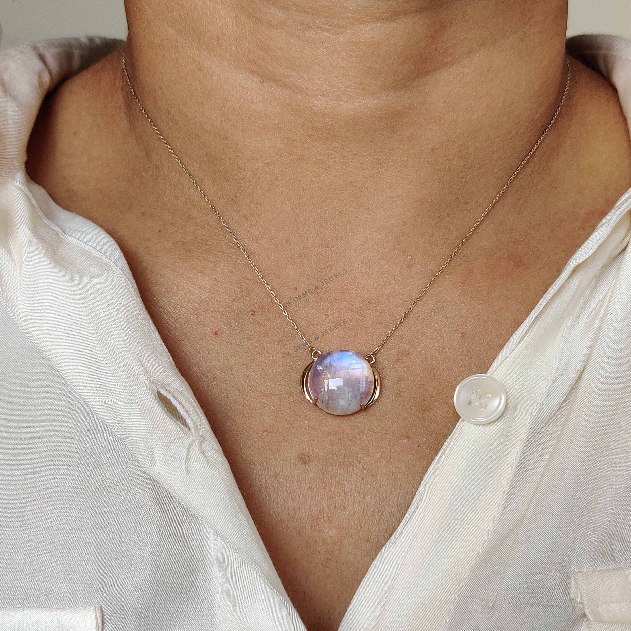 1 review for Round Cabochon Natural Rainbow Moonstone Necklace Set in 14K Solid Gold, June Birthstone