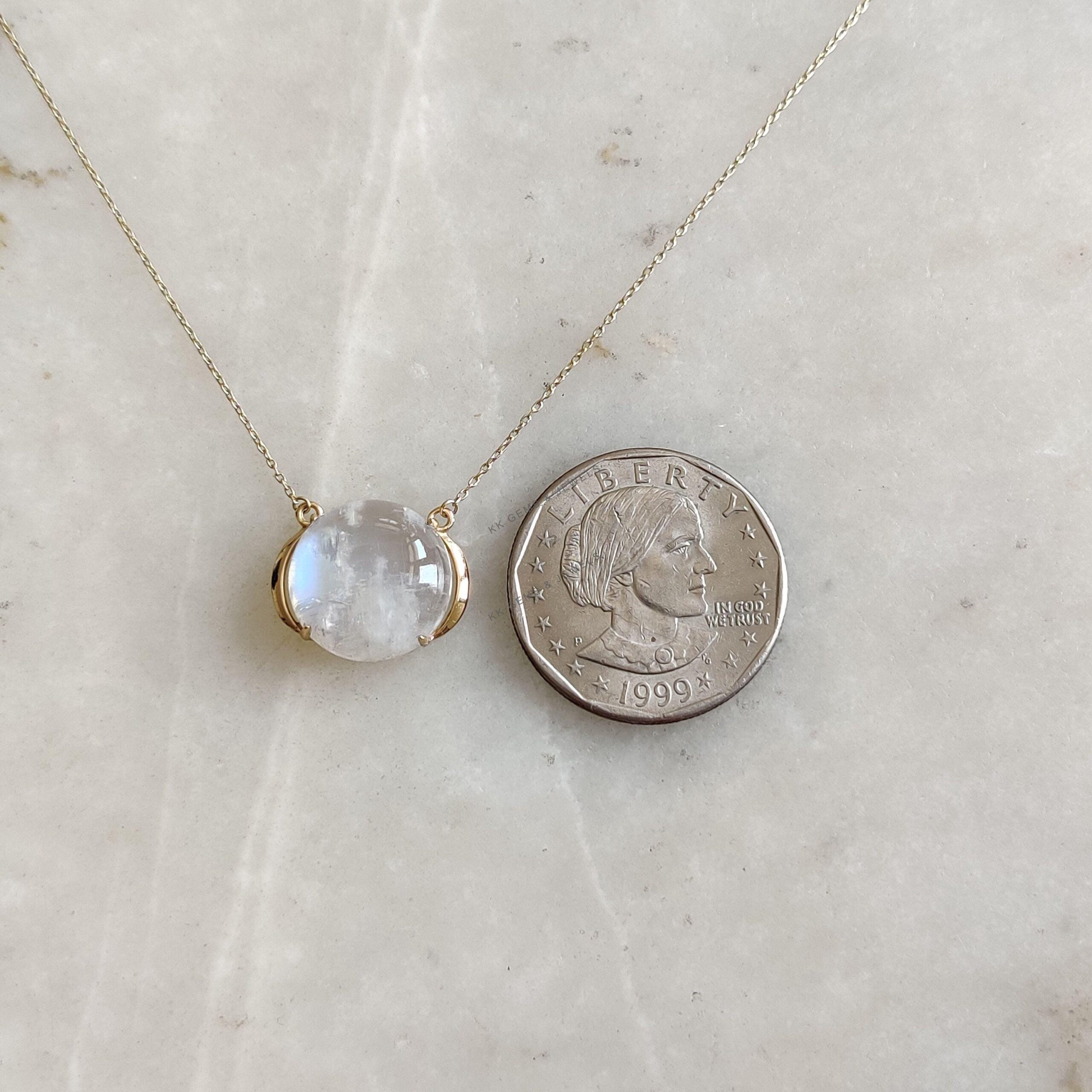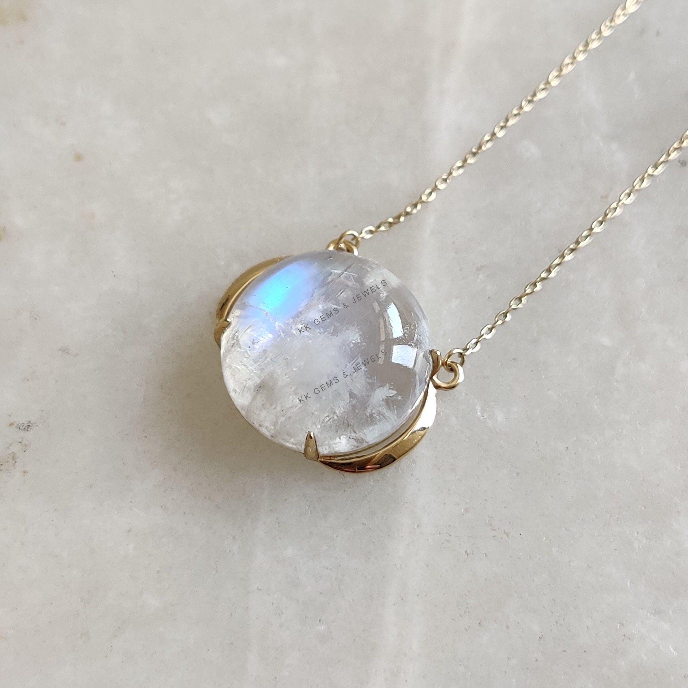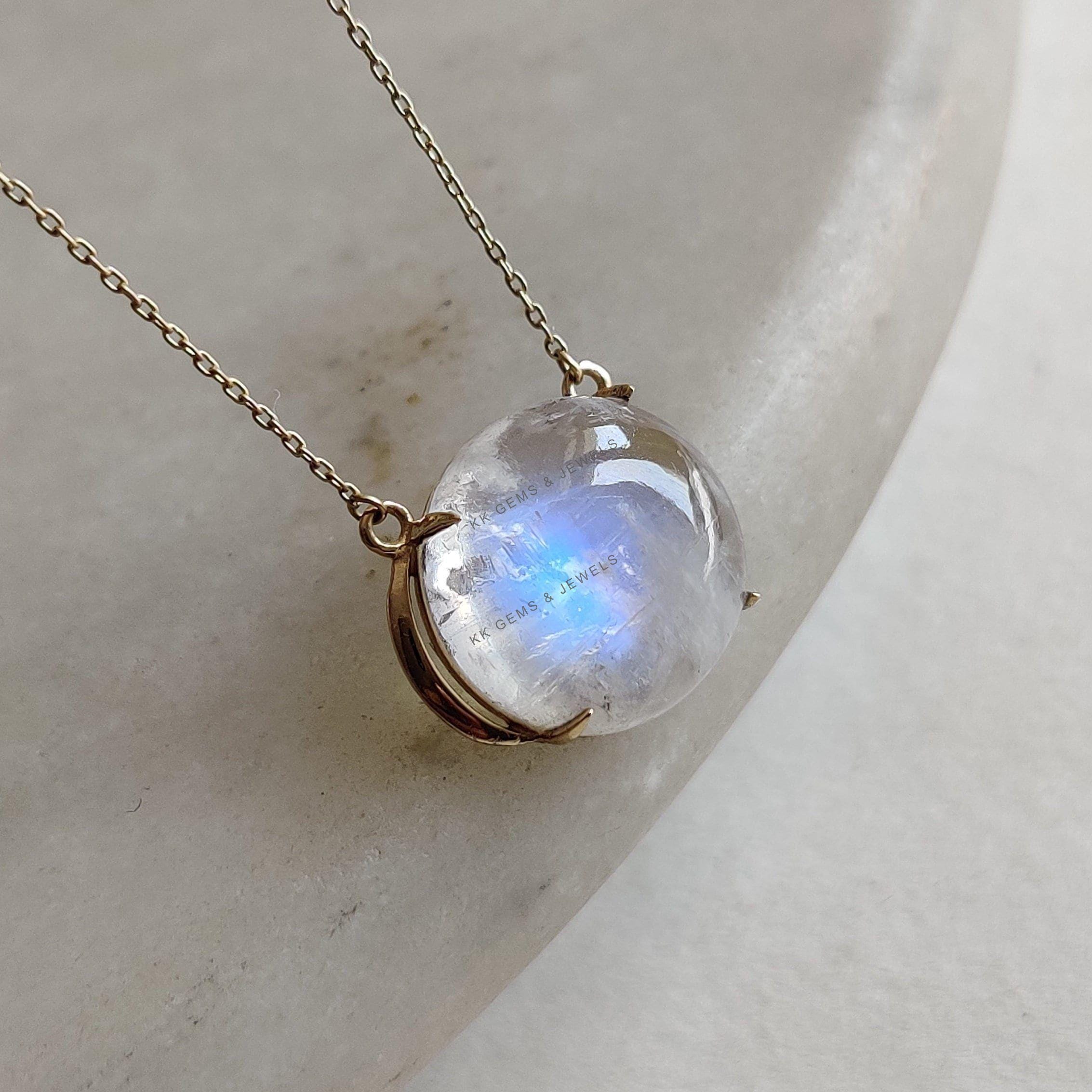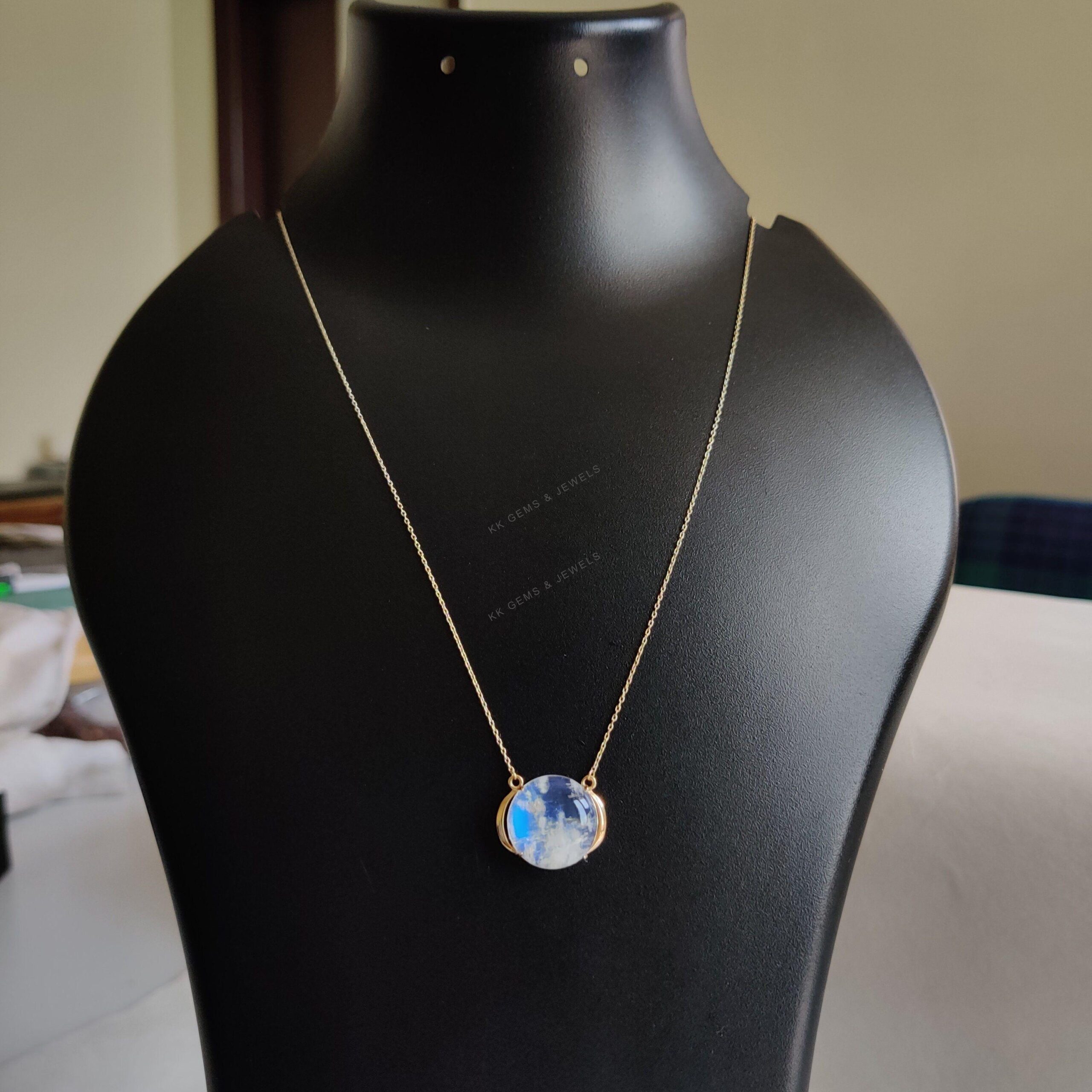 1 review for Round Cabochon Natural Rainbow Moonstone Necklace Set in 14K Solid Gold, June Birthstone