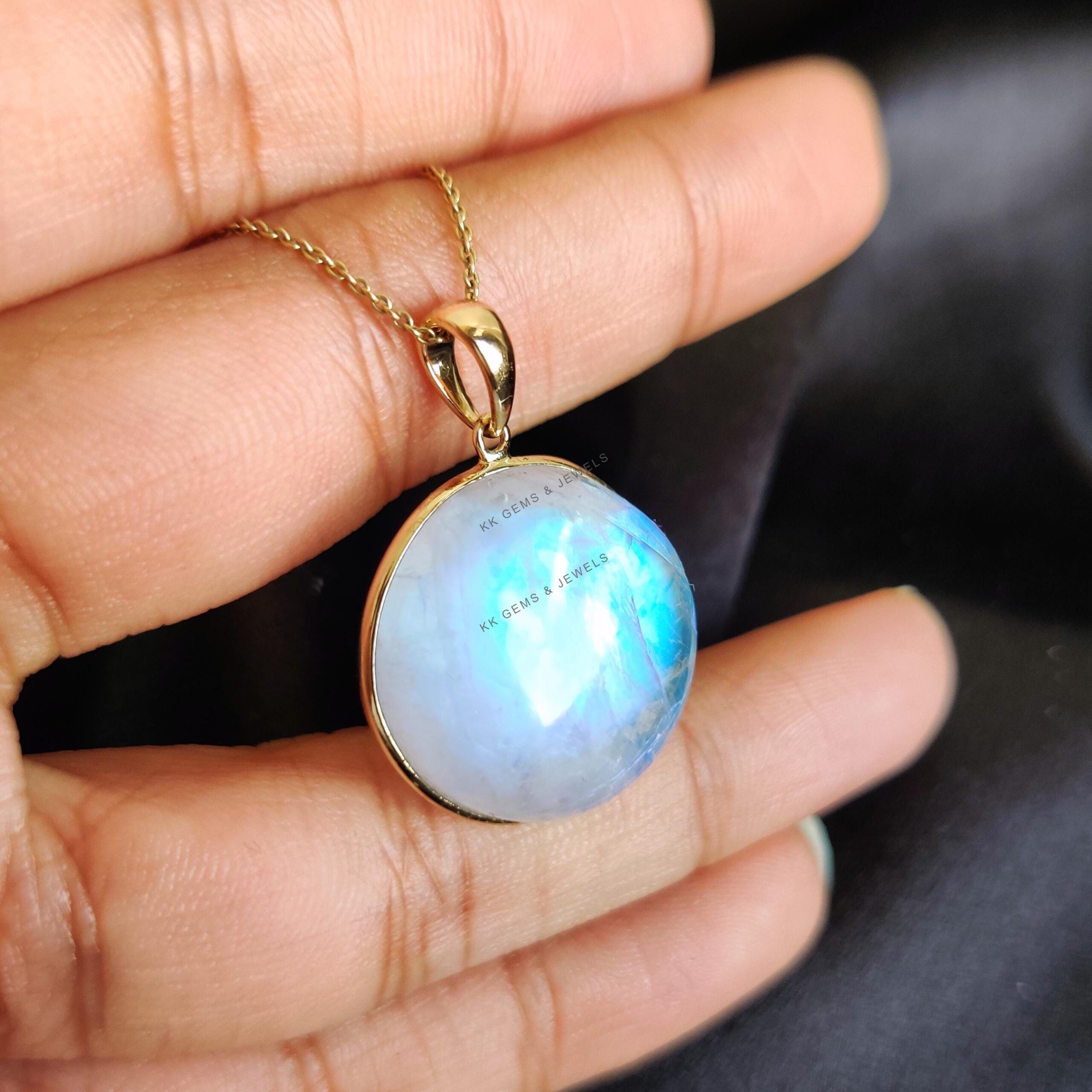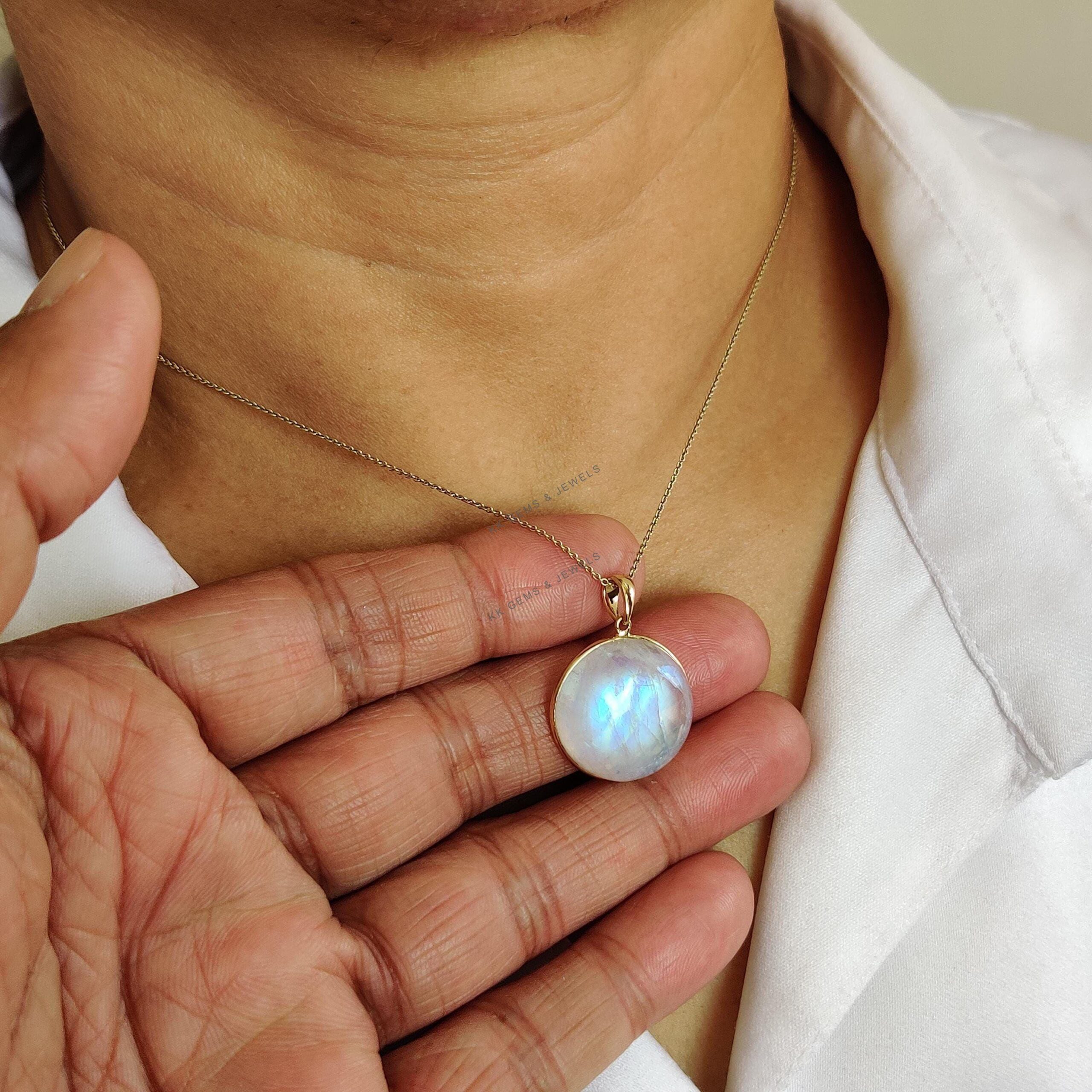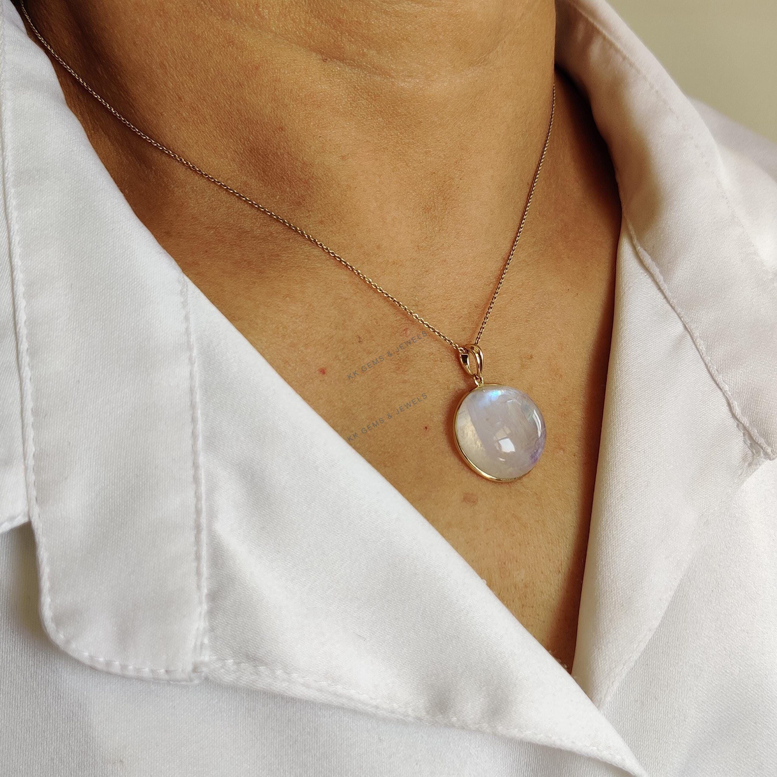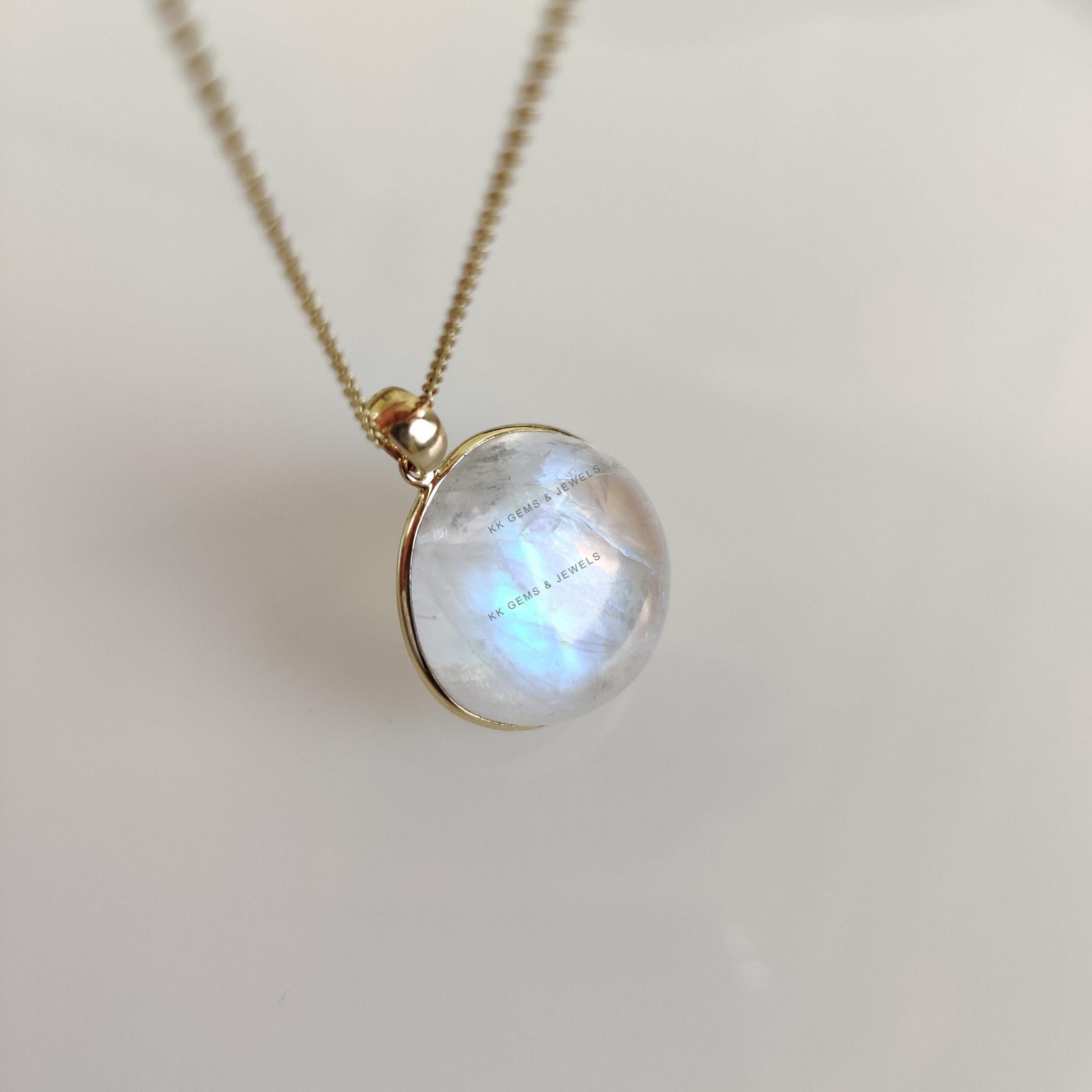 1 review for Round Cabochon Natural Rainbow Moonstone Pendant Set in 14K Solid Gold, June Birthstone Jewelry