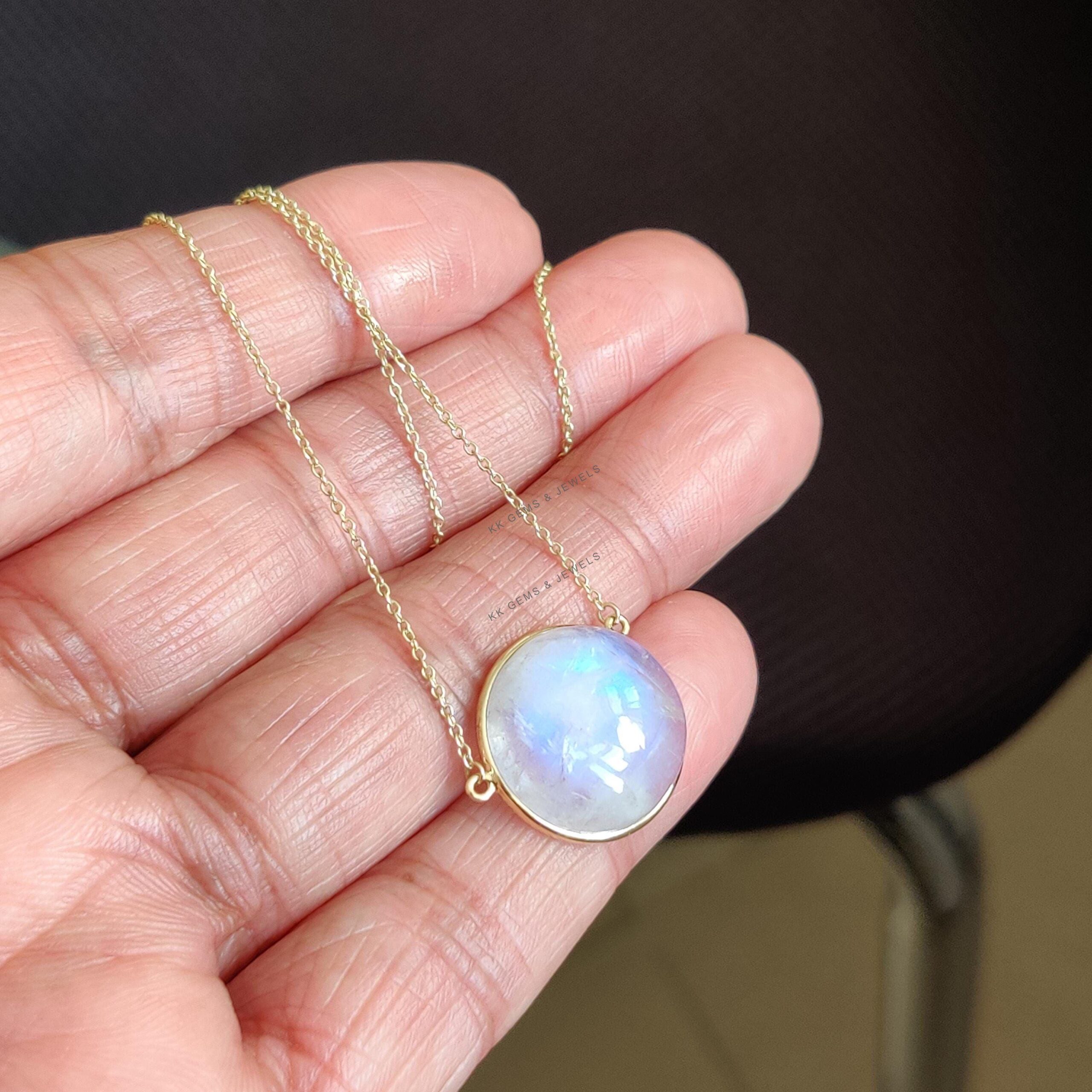 This stunning pendant is set in 14k Solid Yellow Gold with Natural Rainbow Moonstone with utmost precision. It is an unique gemstone pendant for nearly every occasion and is completely hassle-free jewelry. ABOUT GEMSTONE: Rainbow Moonstone is believed to help…