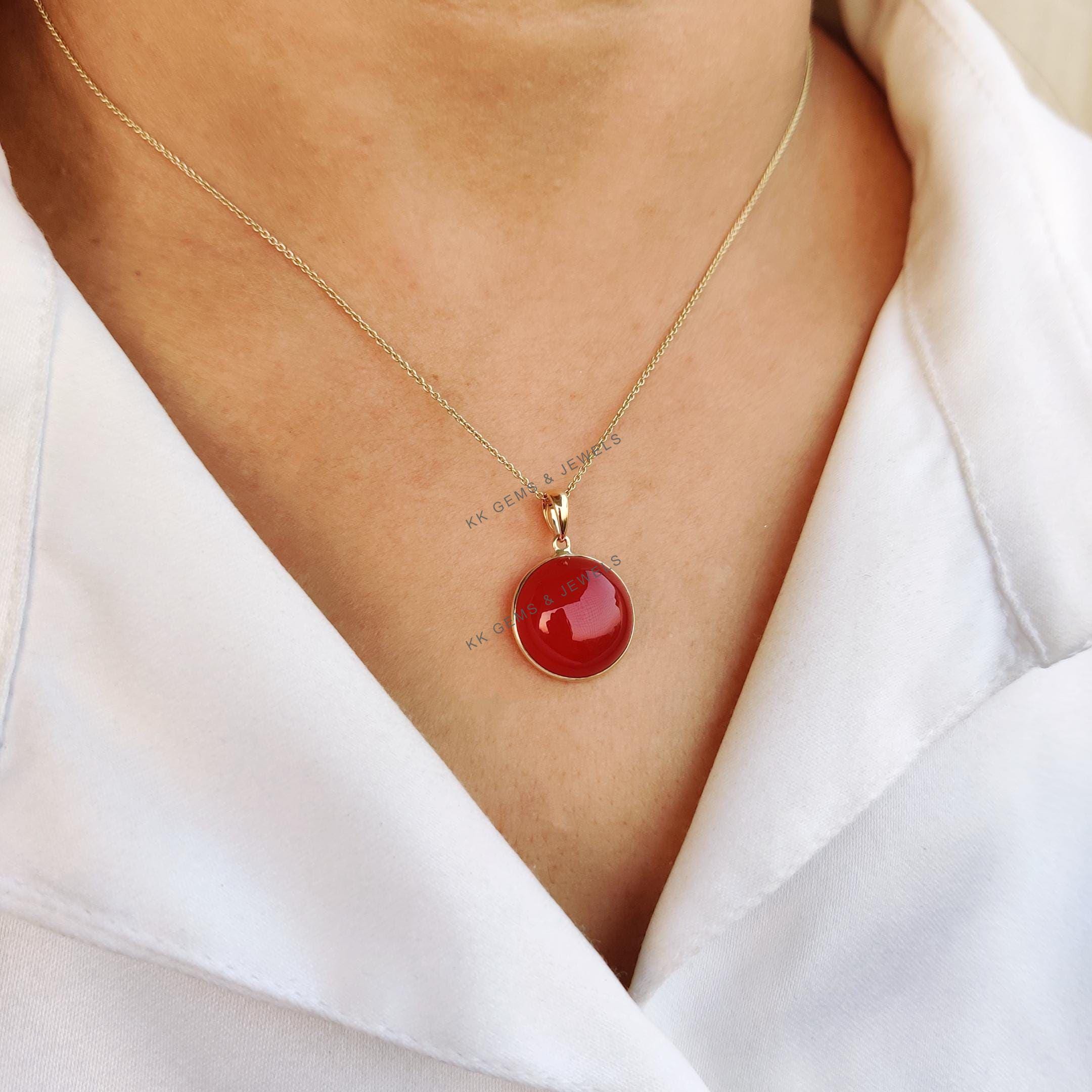 This stunning pendant is set in 14K Solid Yellow Gold with Natural Red Onyx with utmost precision. It is an unique gemstone pendant for nearly every occasion and is completely hassle-free jewelry. ✓ ABOUT GEMSTONE: Red Onyx is a striking…