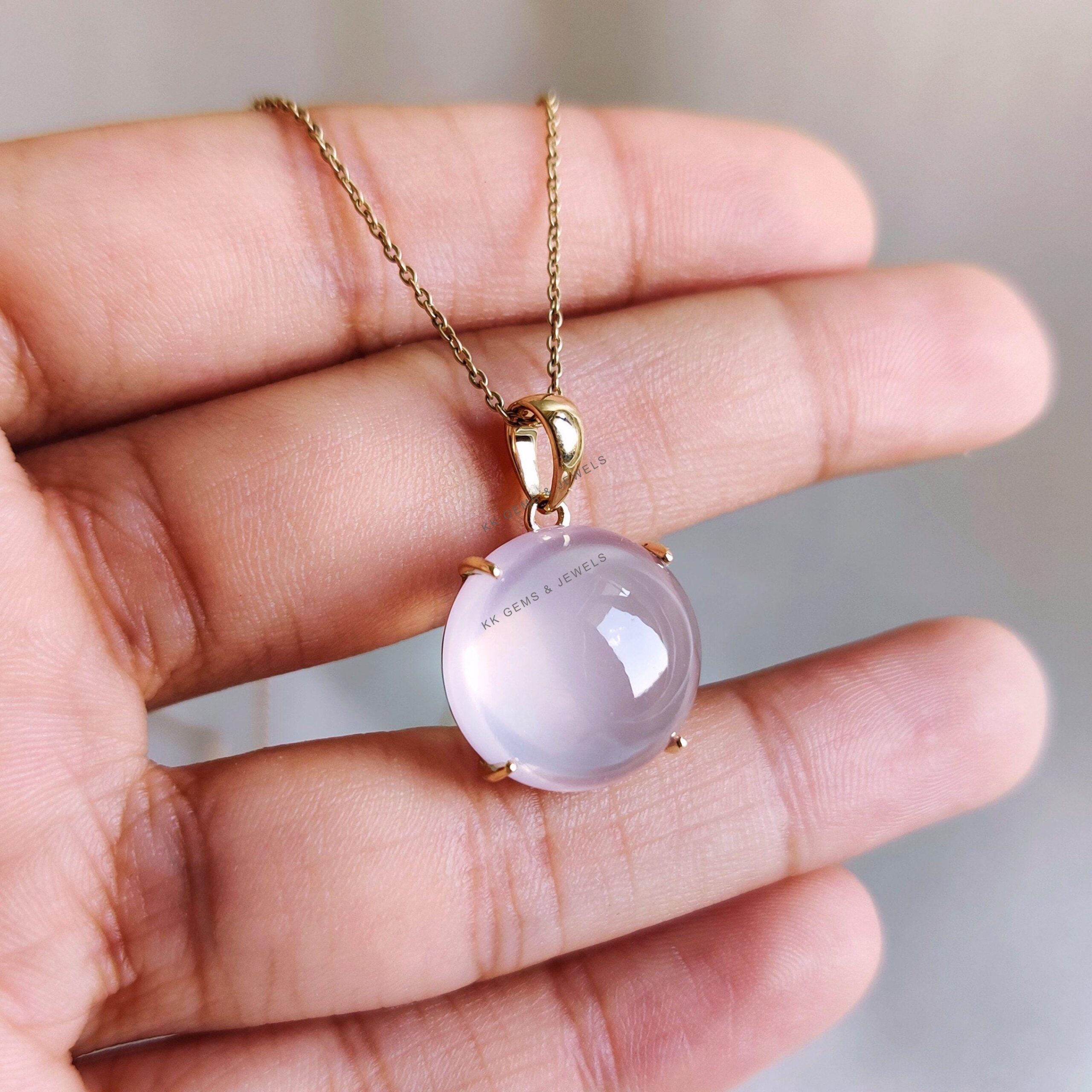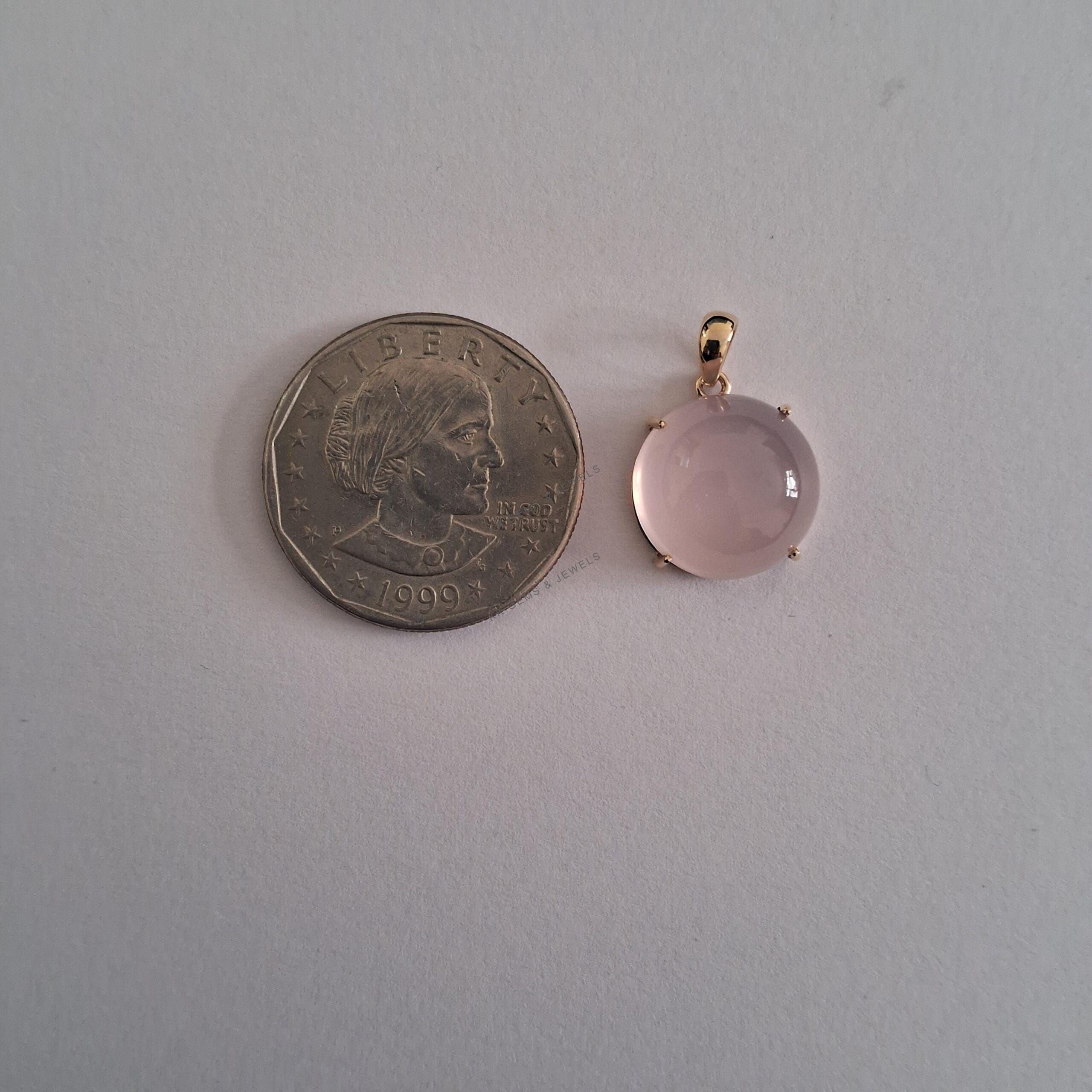 2 reviews for Round Cabochon Natural Rose Quartz Pendant, Birthstone Pendant Set in 14K Solid Gold