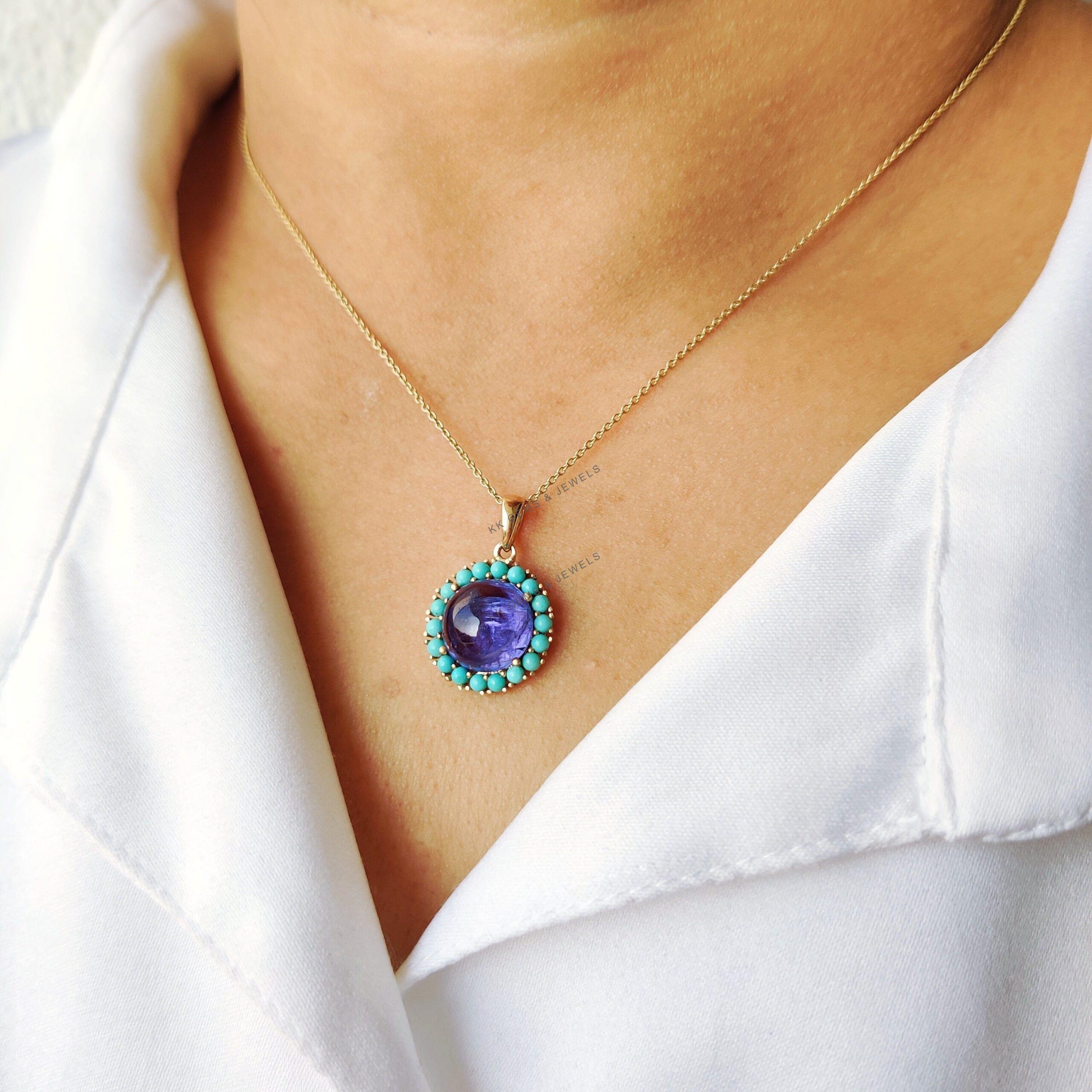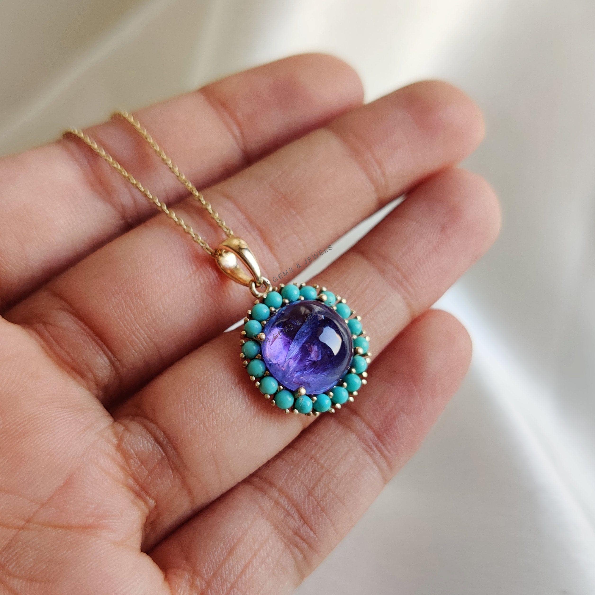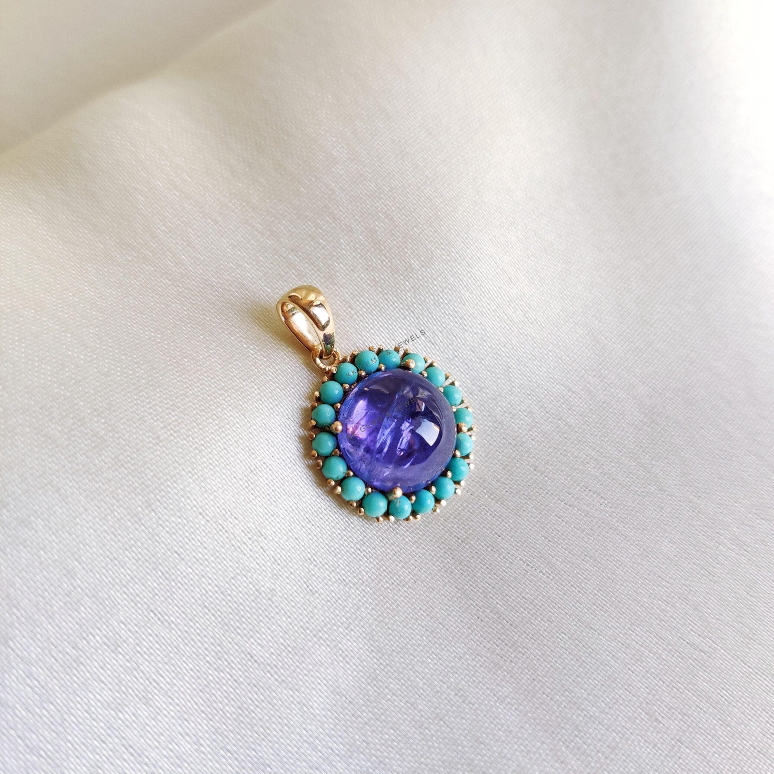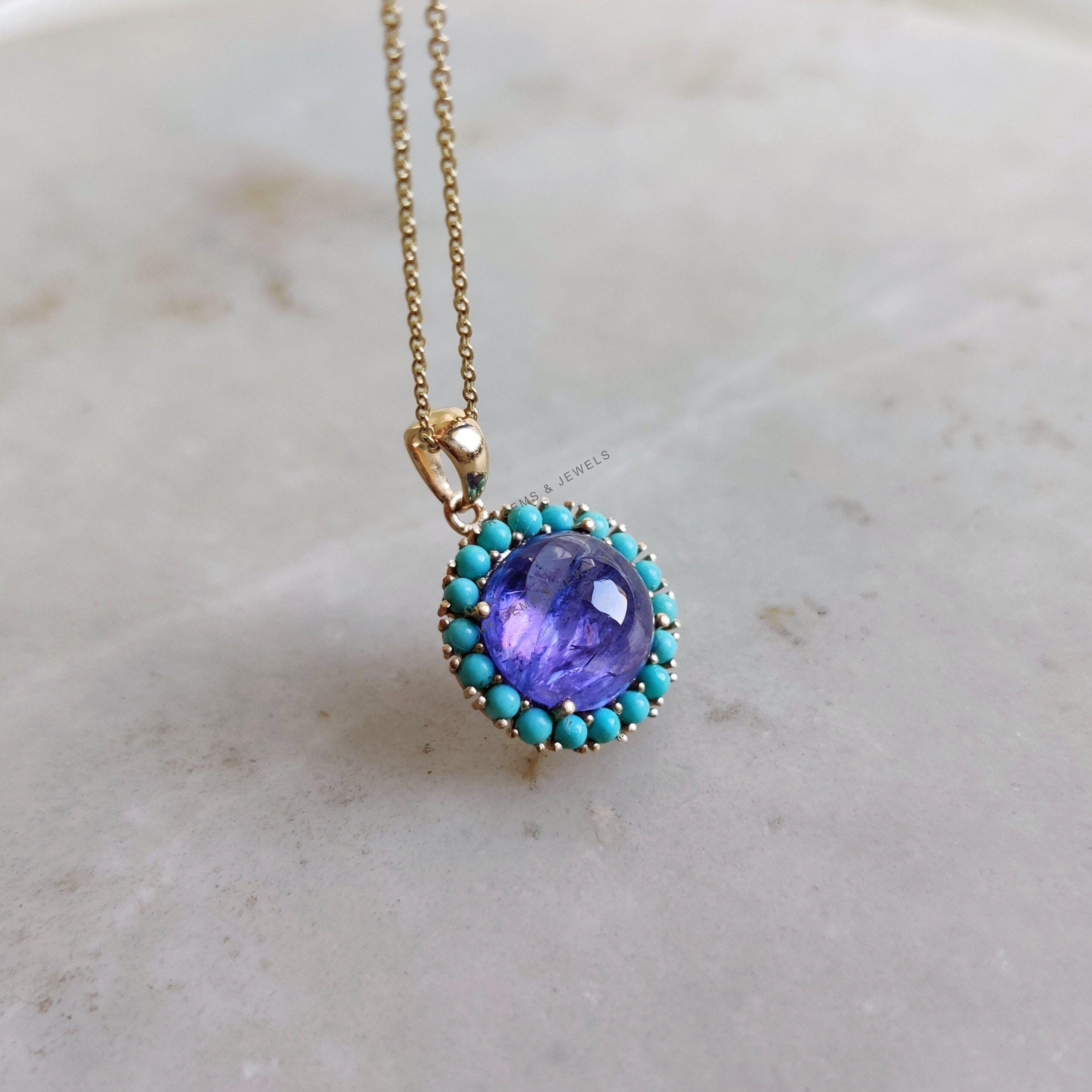 Be the first to review “Round Cabochon Natural Tanzanite Multi Stone Pendant Set in 14K Solid Gold”