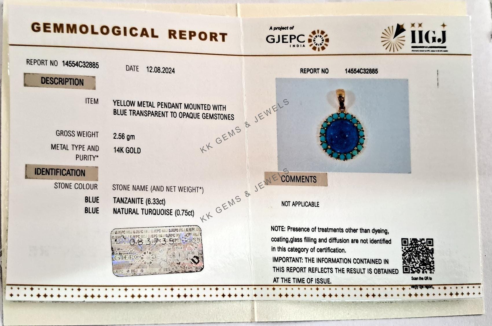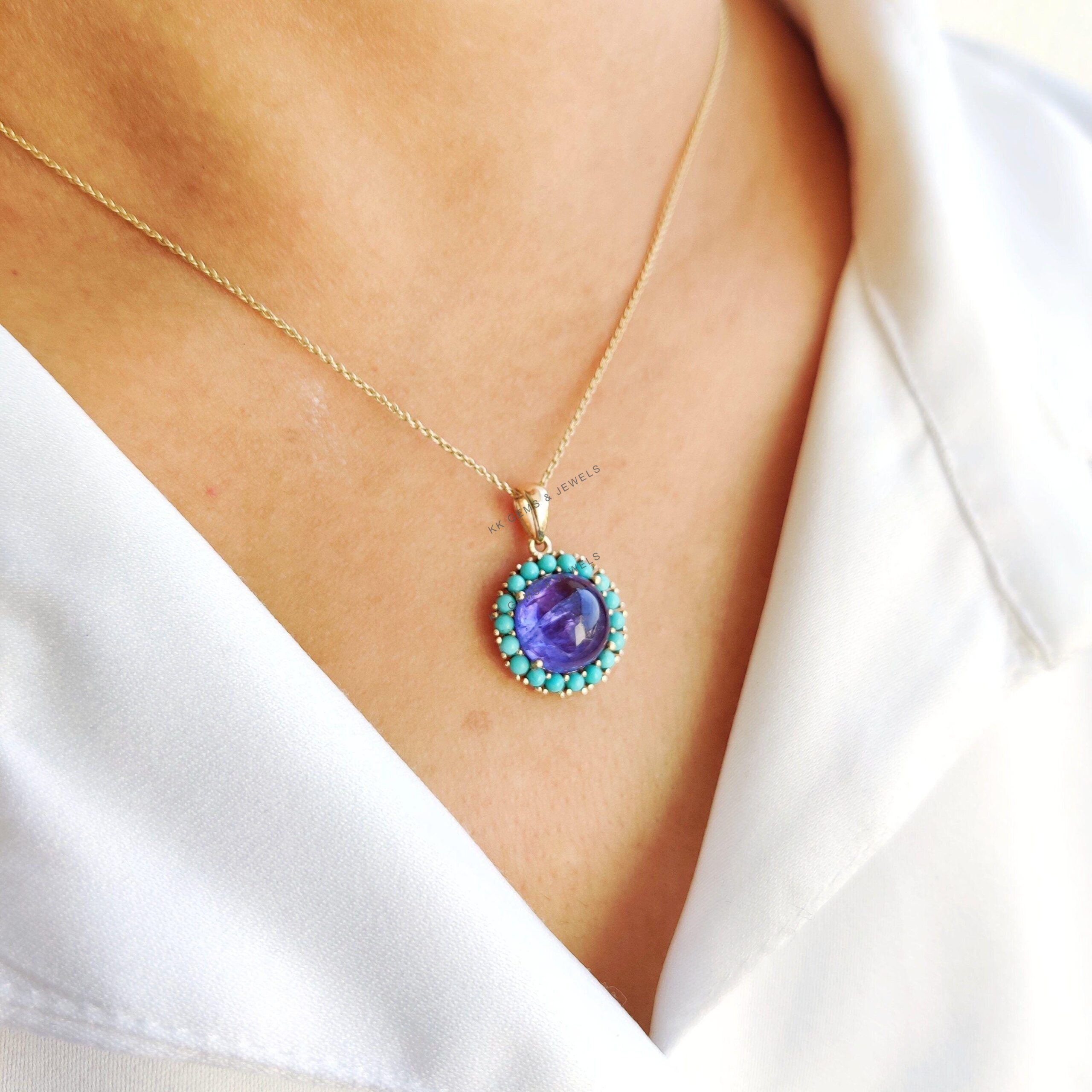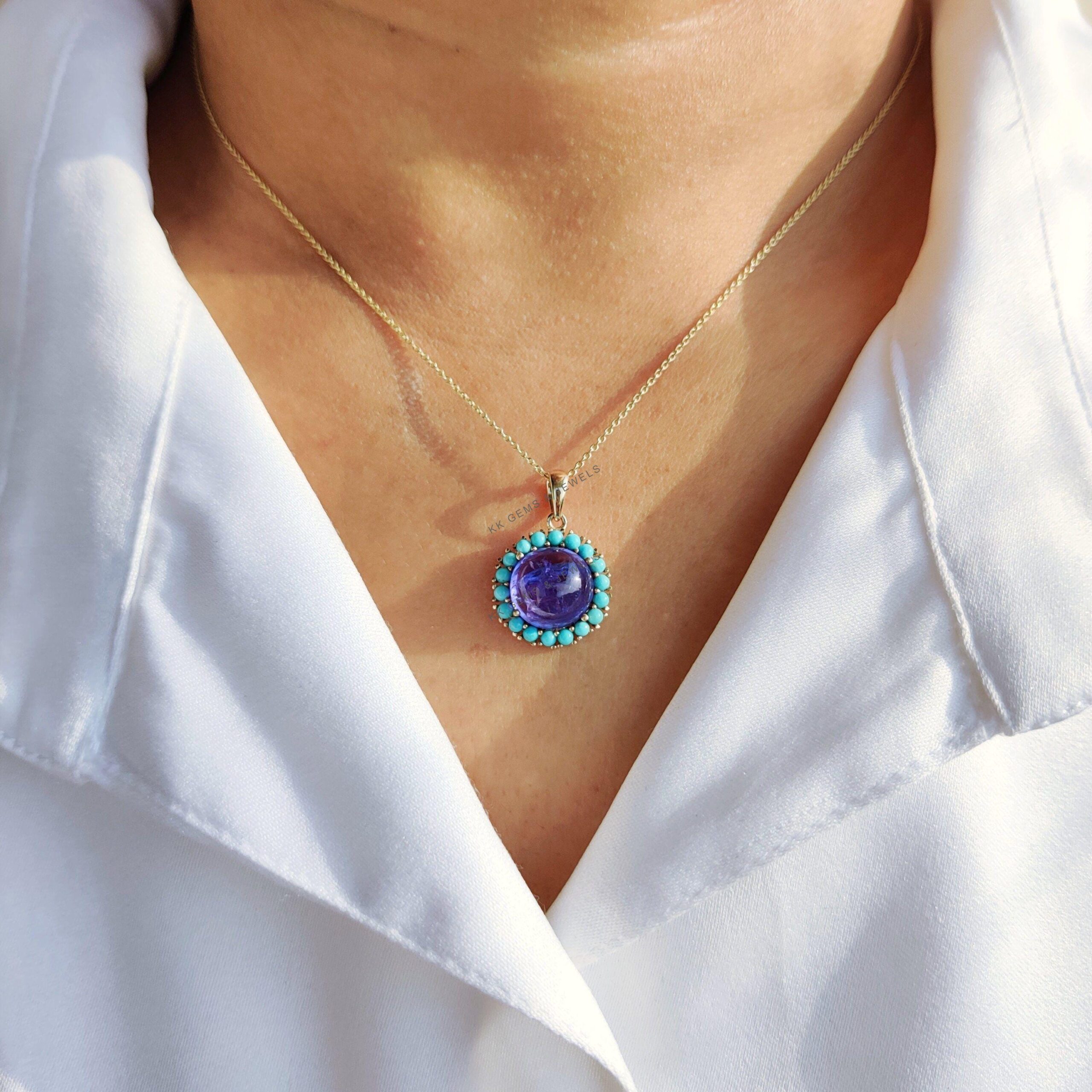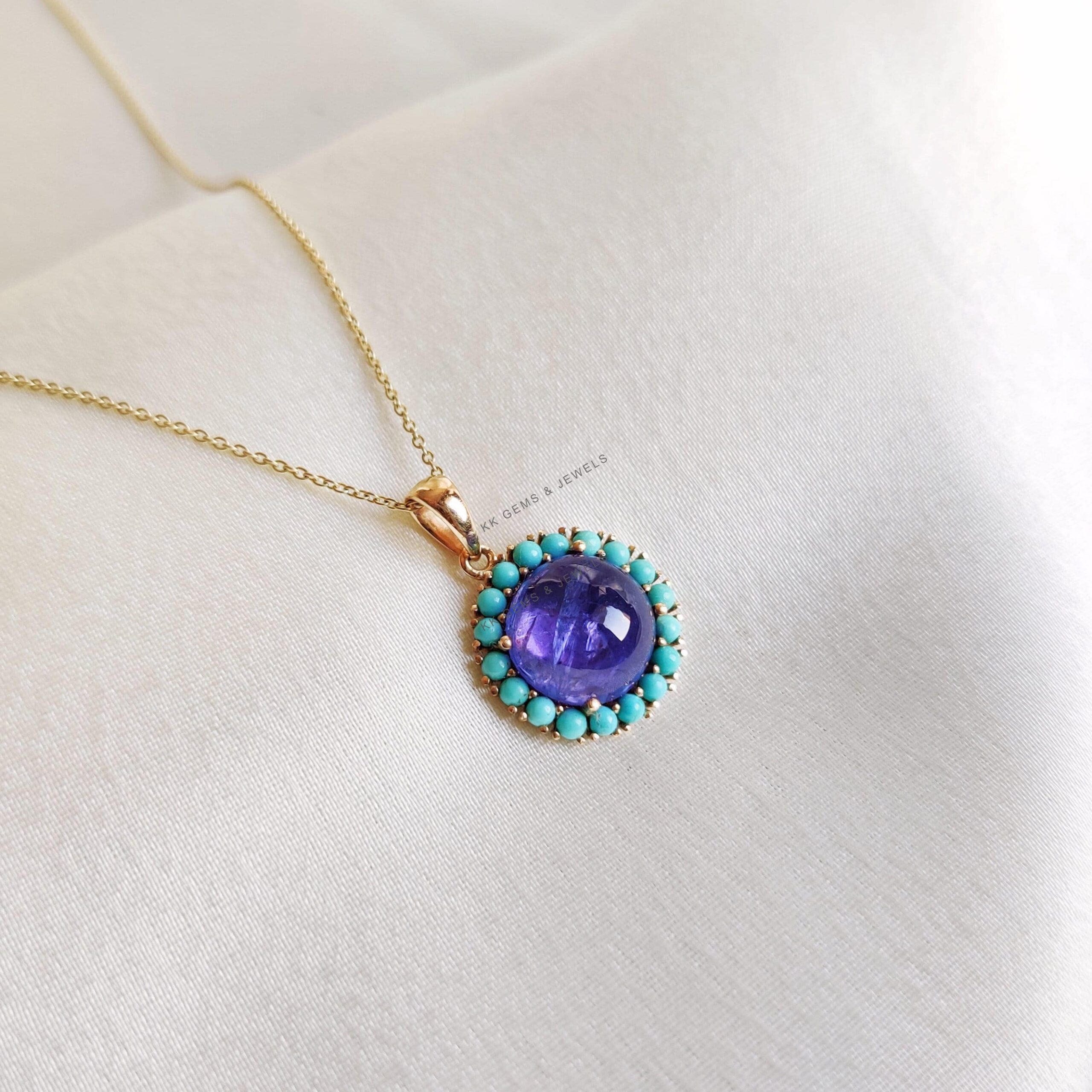 This stunning pendant is set in 14k Solid Yellow Gold with Natural Tanzanite & Sleeping Beauty Turquoise with utmost precision. It is an unique gemstone pendant for nearly every occasion and is completely hassle-free jewelry. ✓ ABOUT GEMSTONE Tanzanite is…