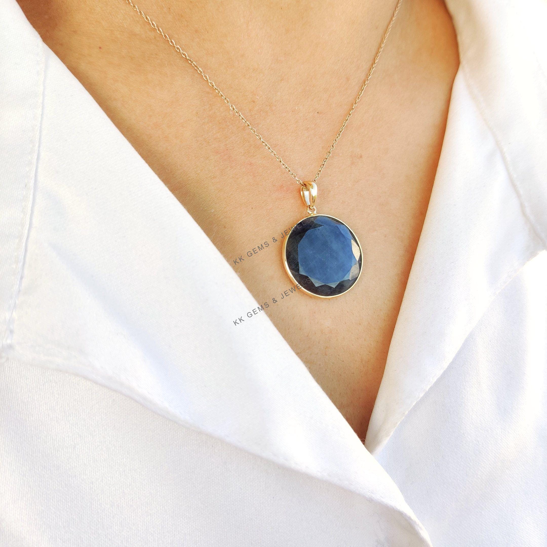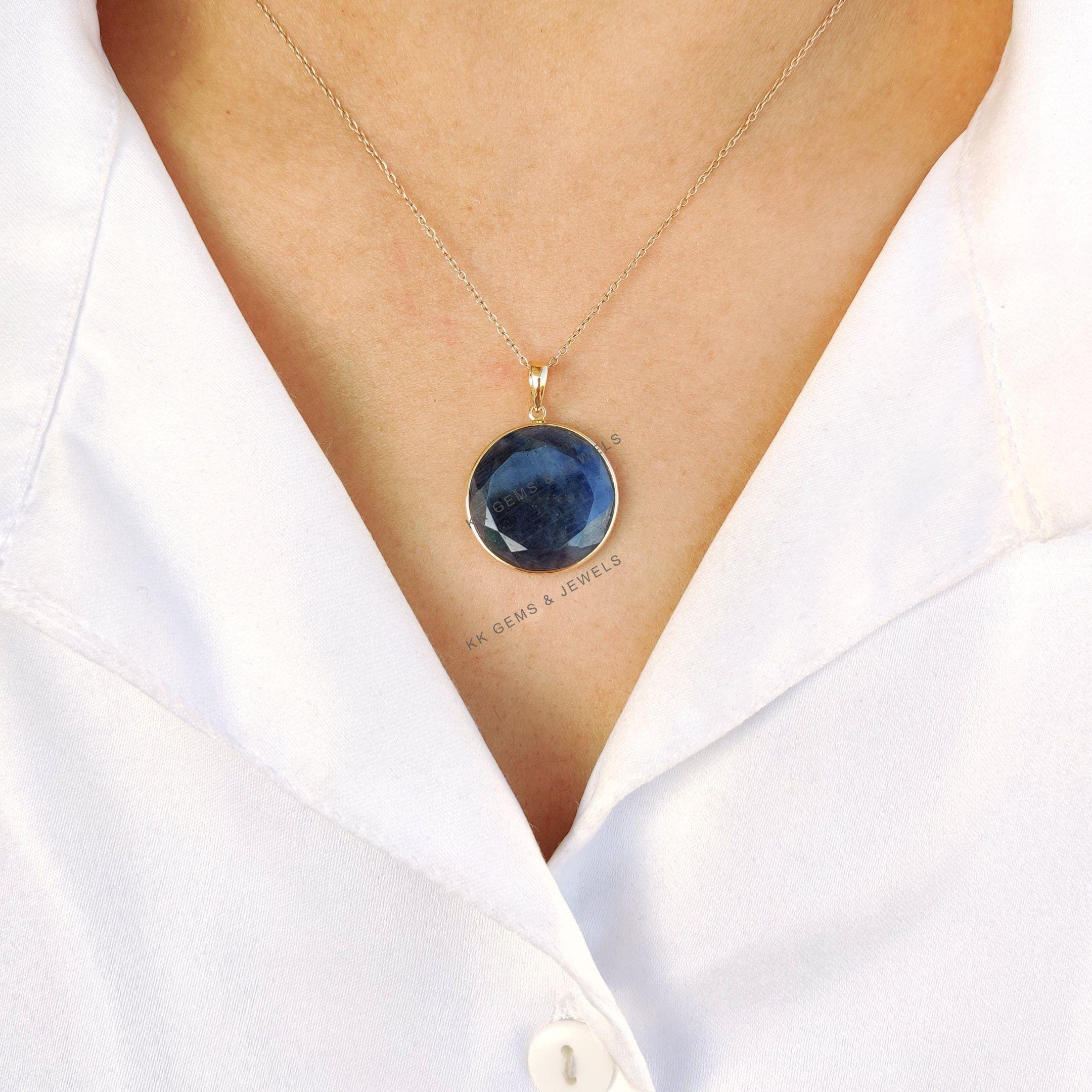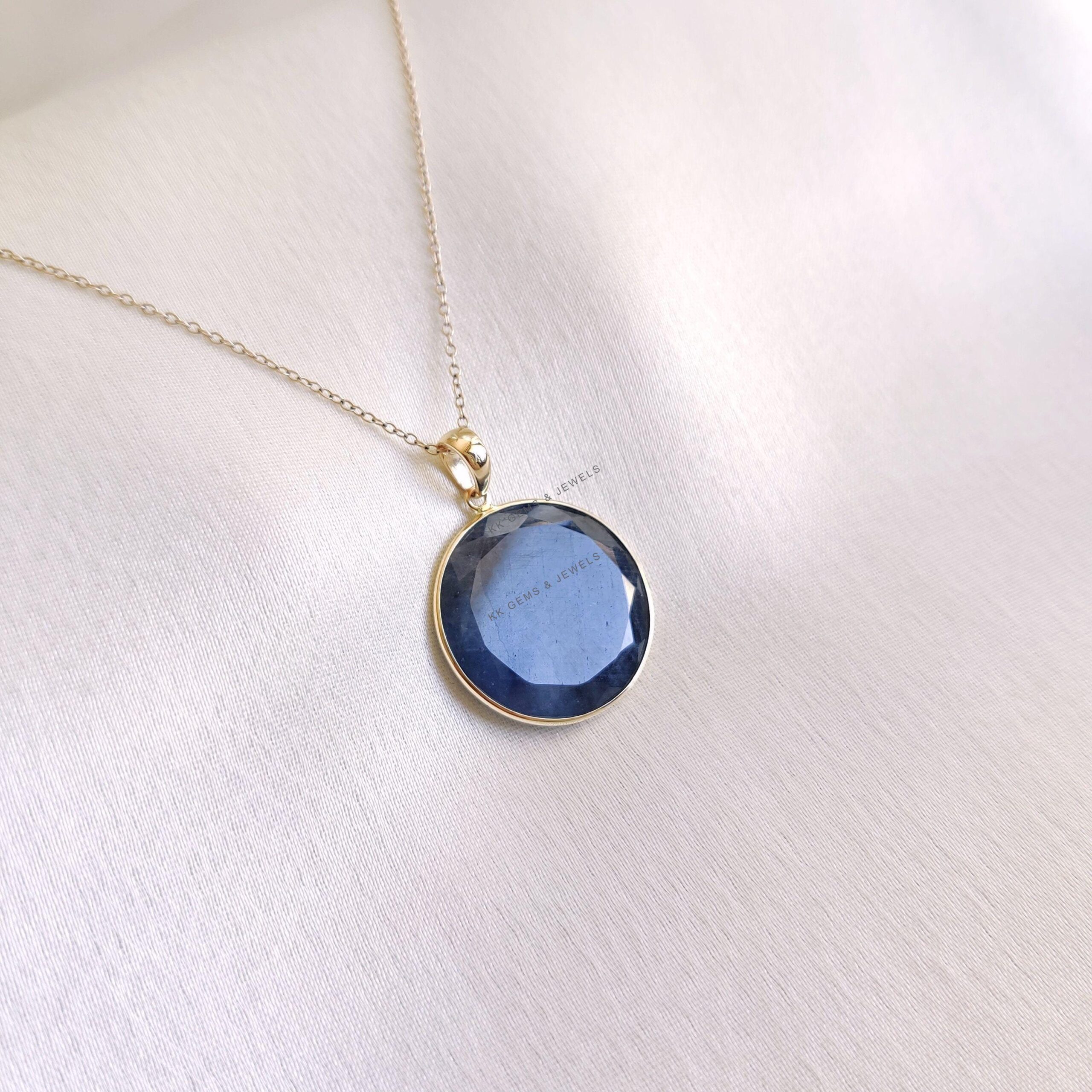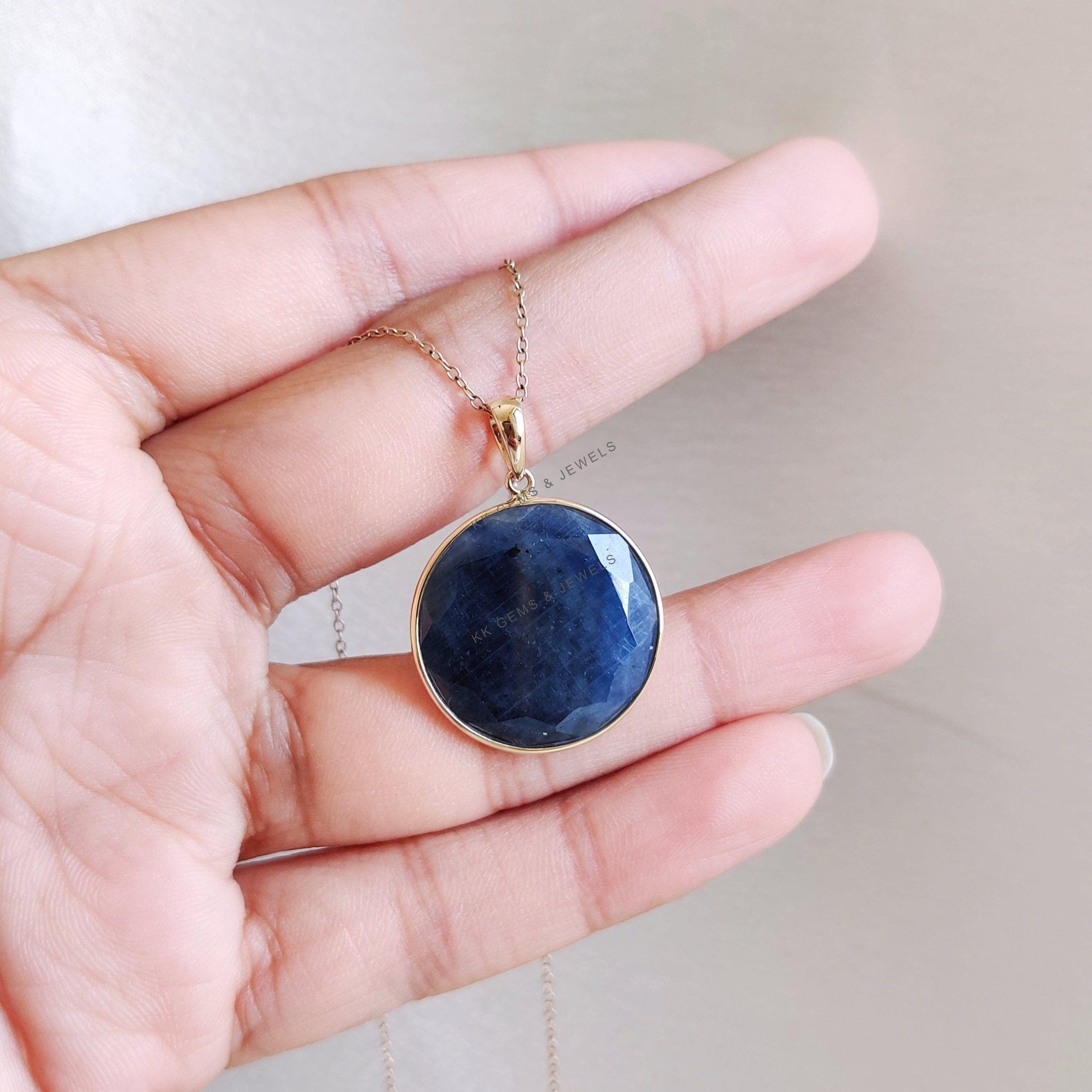1 review for Round Cut Natural Blue Sapphire Bezel Set Birthstone Pendant in 14K Solid Gold