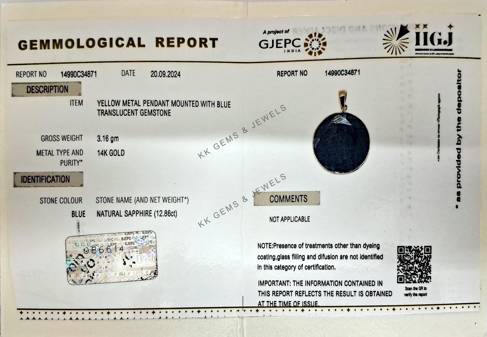 • Gem: Blue Sapphire