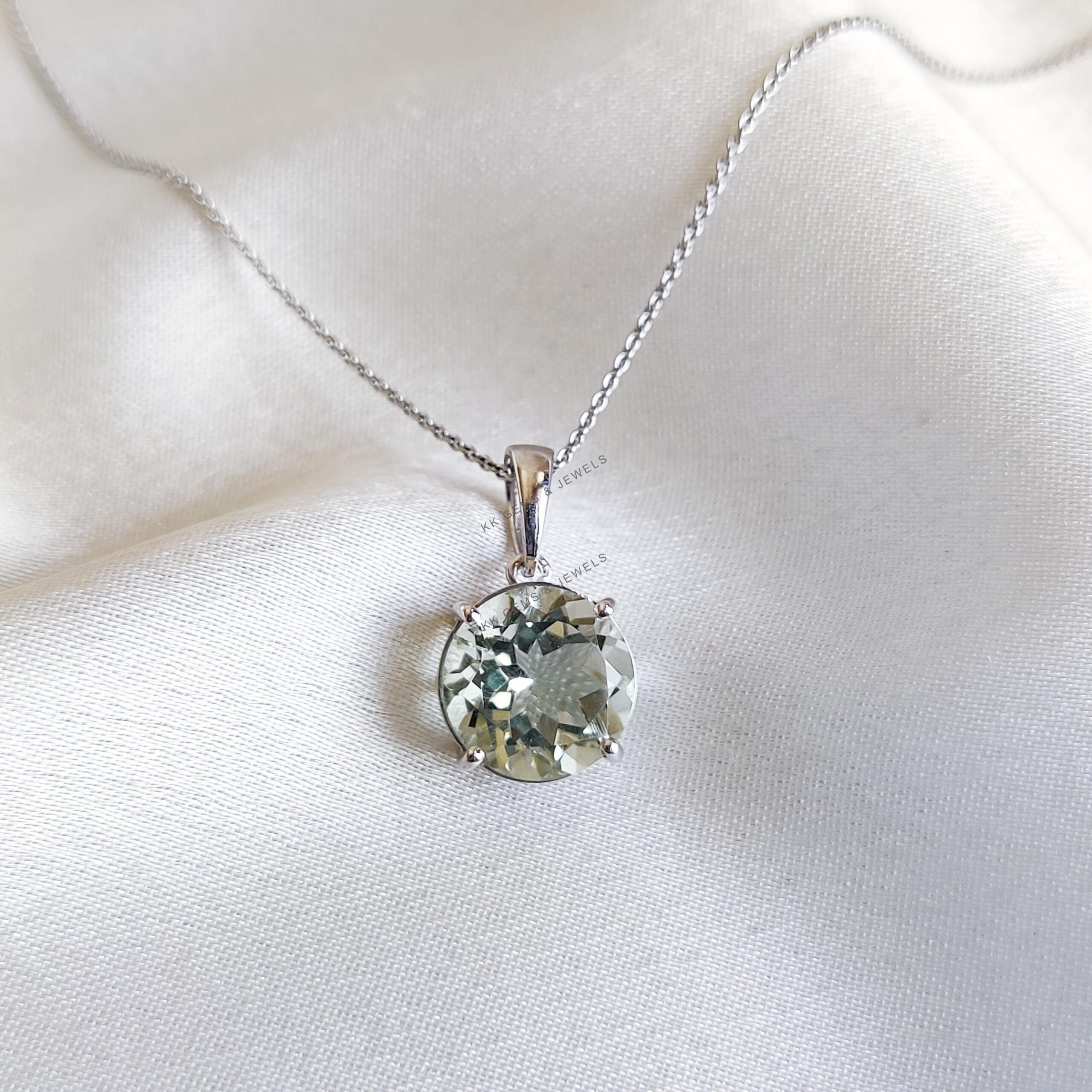 This stunning pendant is set in 14k Solid White Gold with Natural Green Amethyst with utmost precision. It is an unique gemstone pendant for nearly every occasion and is completely hassle-free jewelry. ✓ ABOUT GEMSTONE: Green amethyst, also known as…