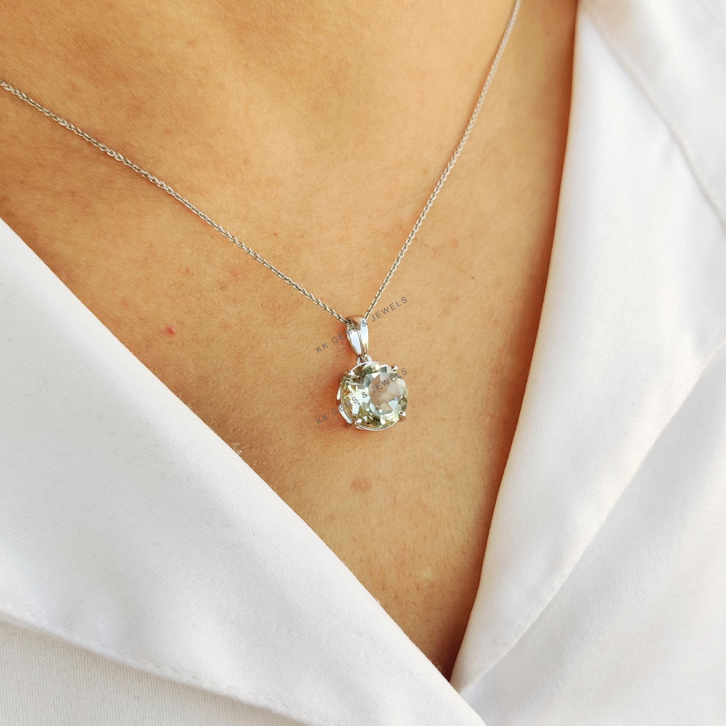 This stunning pendant is set in 14k Solid White Gold with Natural Green Amethyst with utmost precision. It is an unique gemstone pendant for nearly every occasion and is completely hassle-free jewelry.