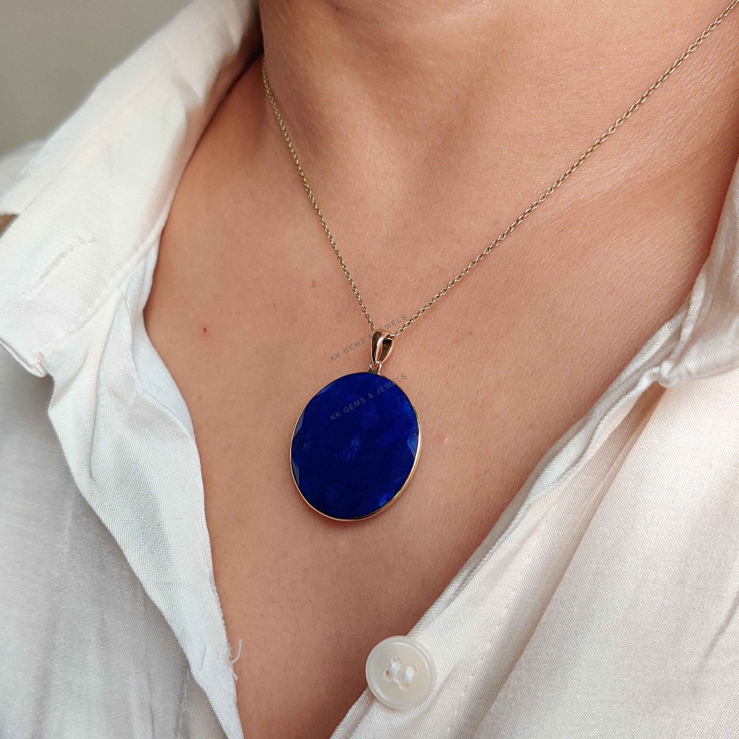 This stunning pendant is set in 14K Solid Yellow Gold with Natural Lapis Lazuli with utmost precision. It is an unique gemstone pendant for nearly every occasion and is completely hassle-free jewelry.