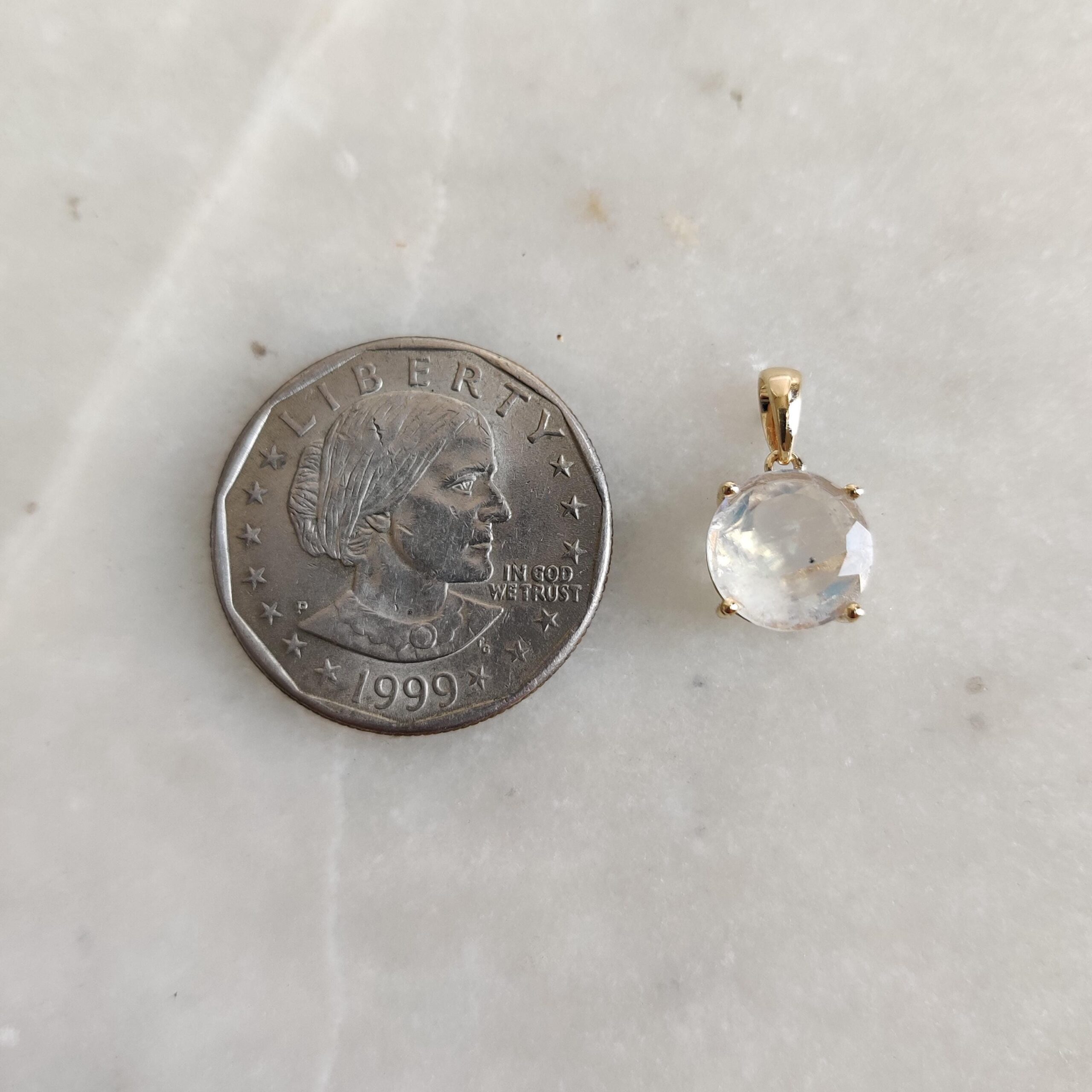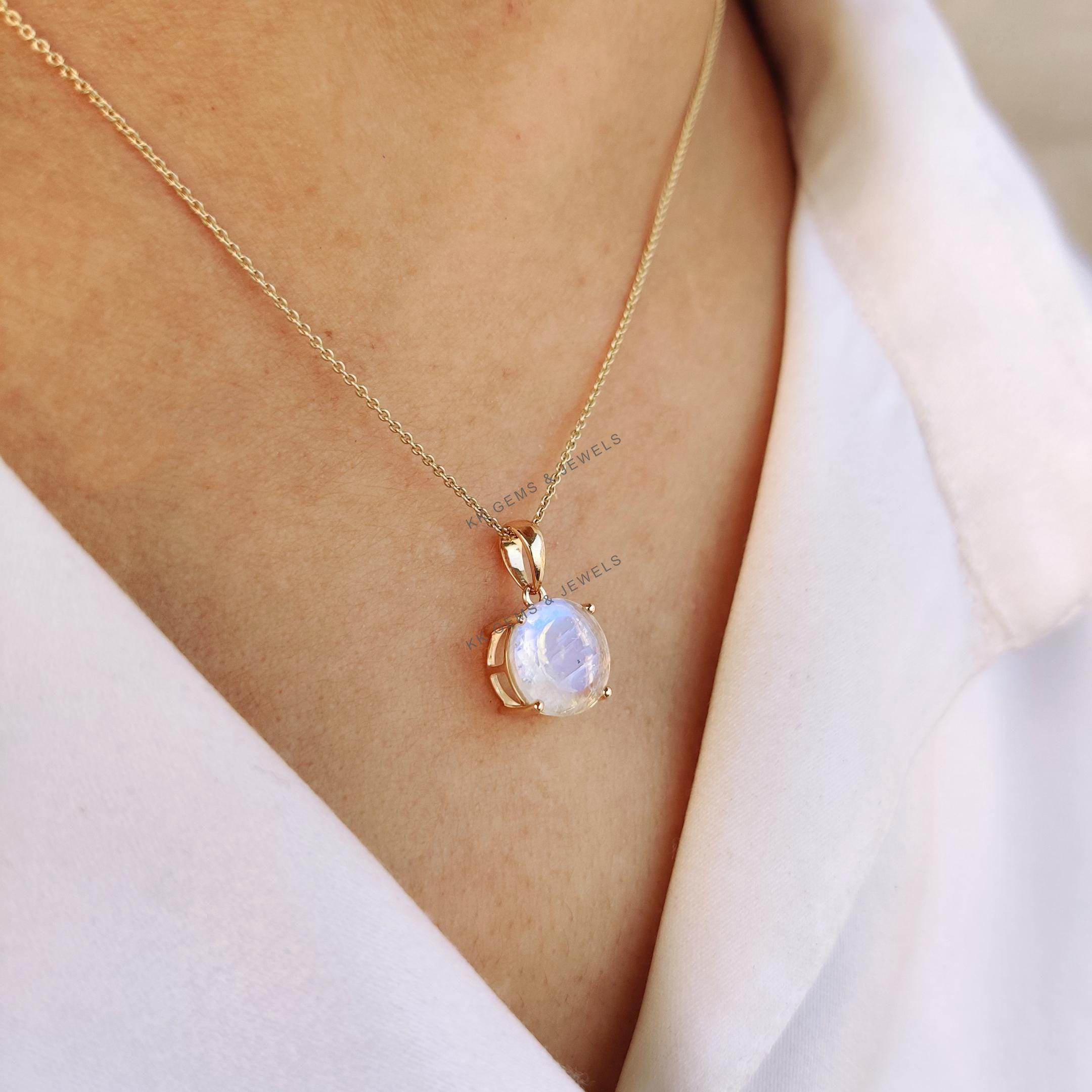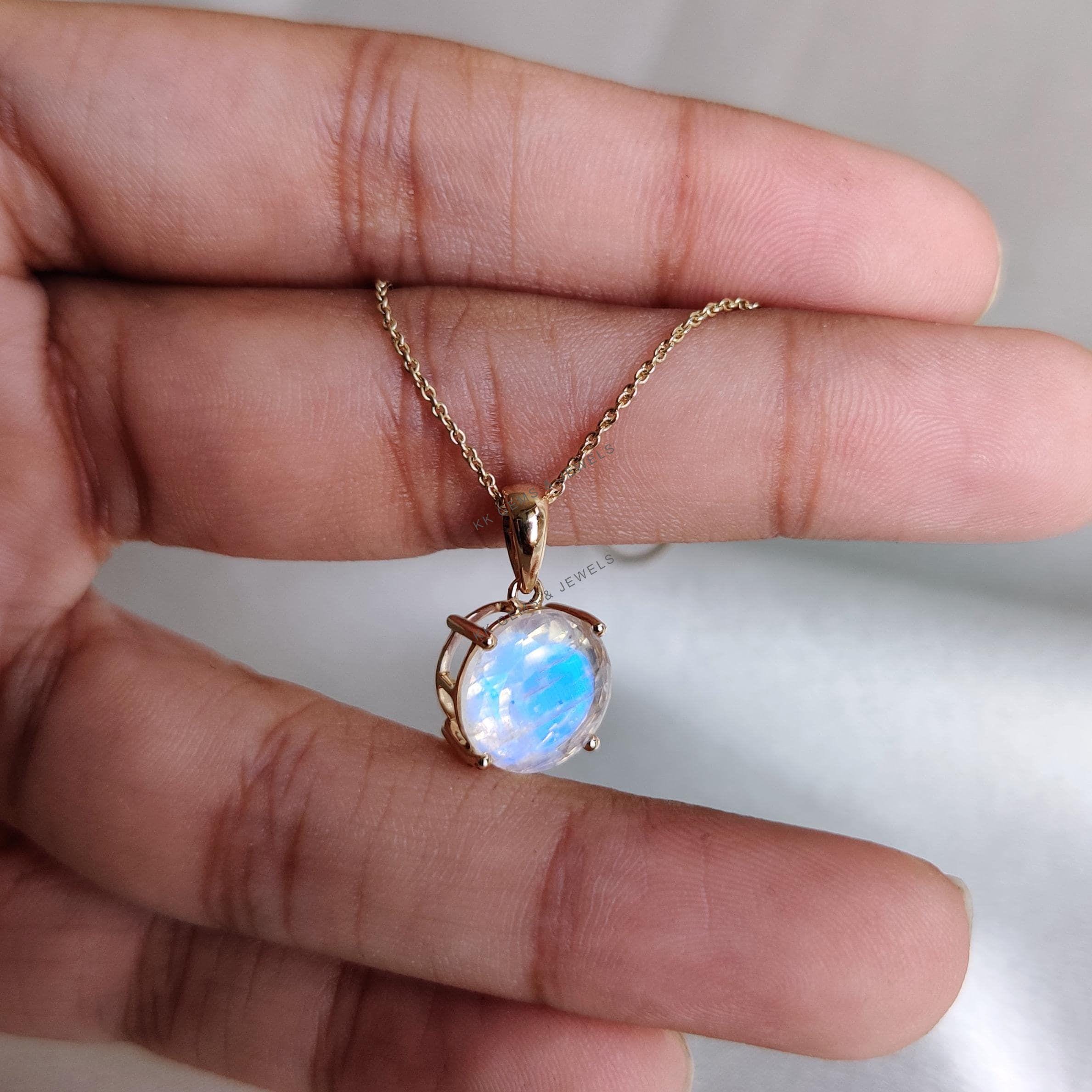 Round Cut Natural Rainbow Moonstone Pendant Set in 14K Solid Gold, June Birthstone