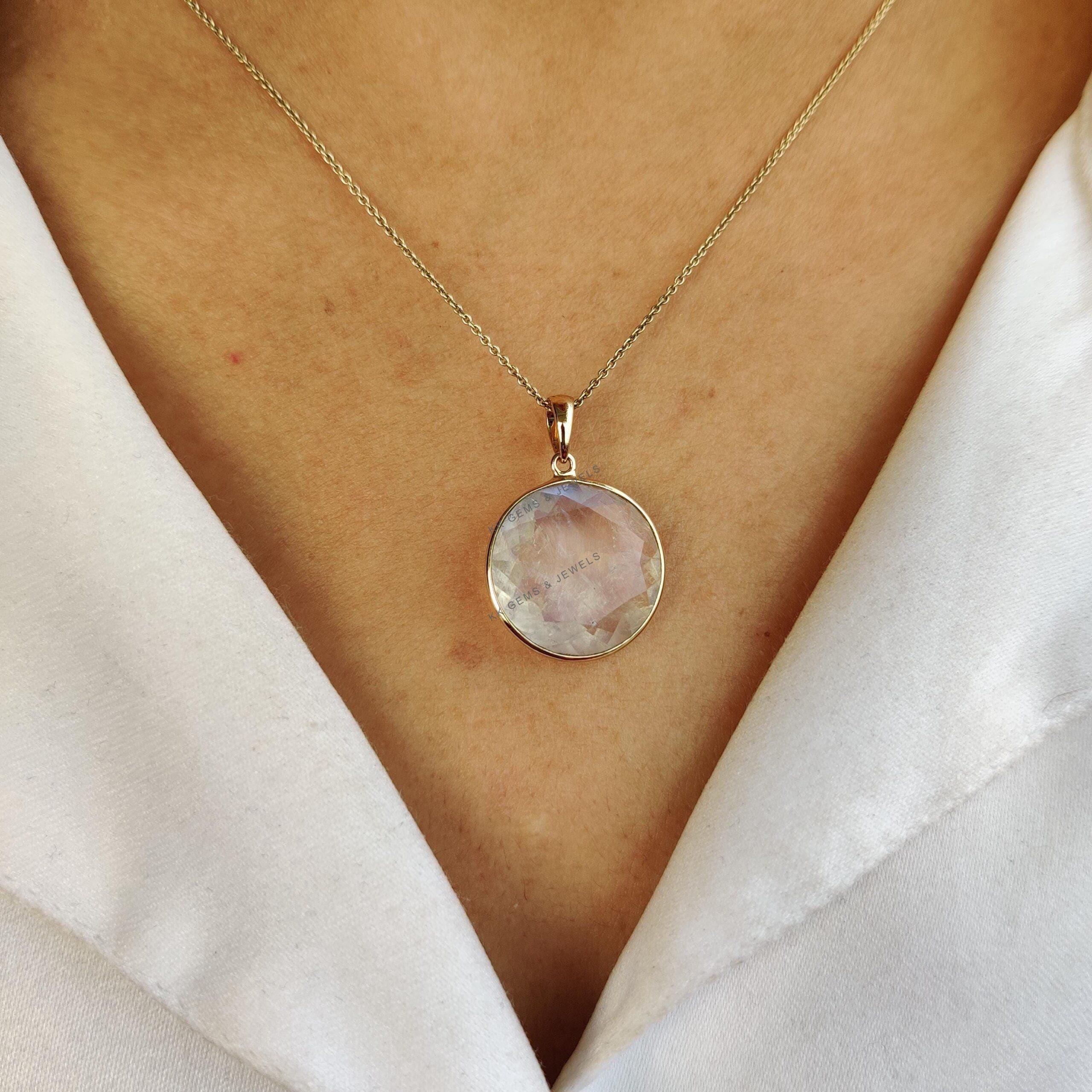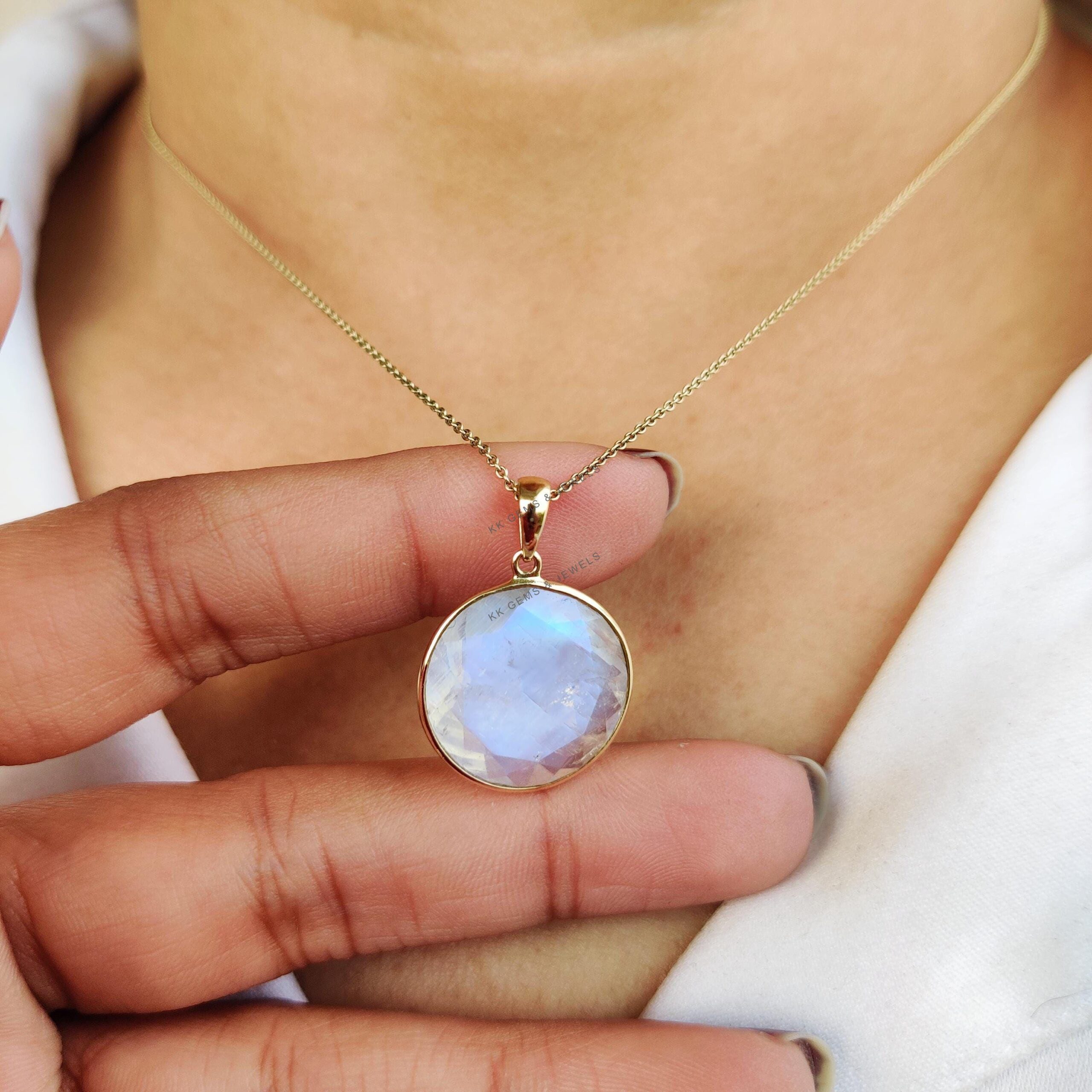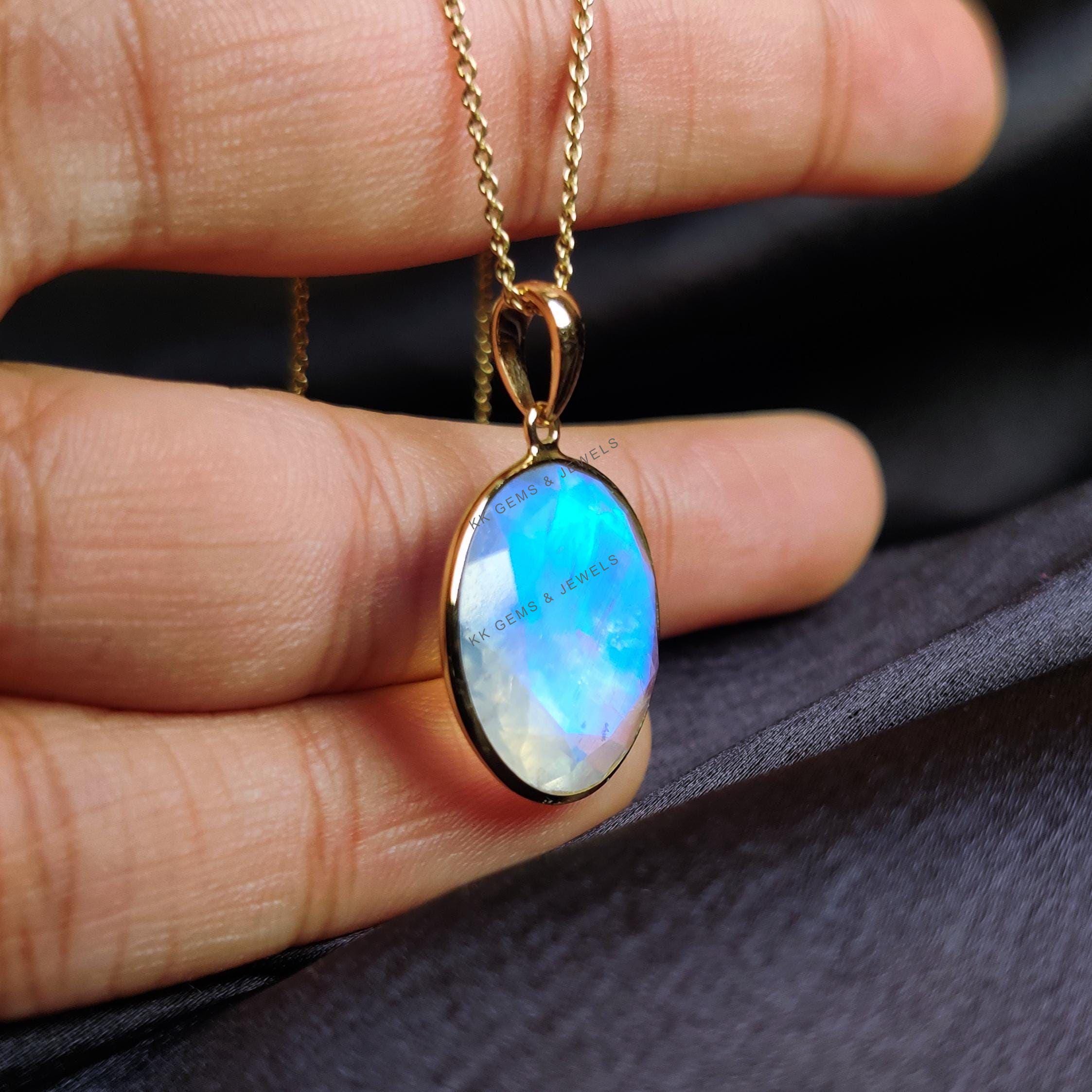 This stunning pendant is set in 14k Solid Yellow Gold Rainbow Moonstone with utmost precision. It is an unique gemstone Pendant for nearly every occasion and is completely hassle-free jewelry. ✓ ABOUT GEMSTONE Rainbow Moonstone is believed to help balance…
