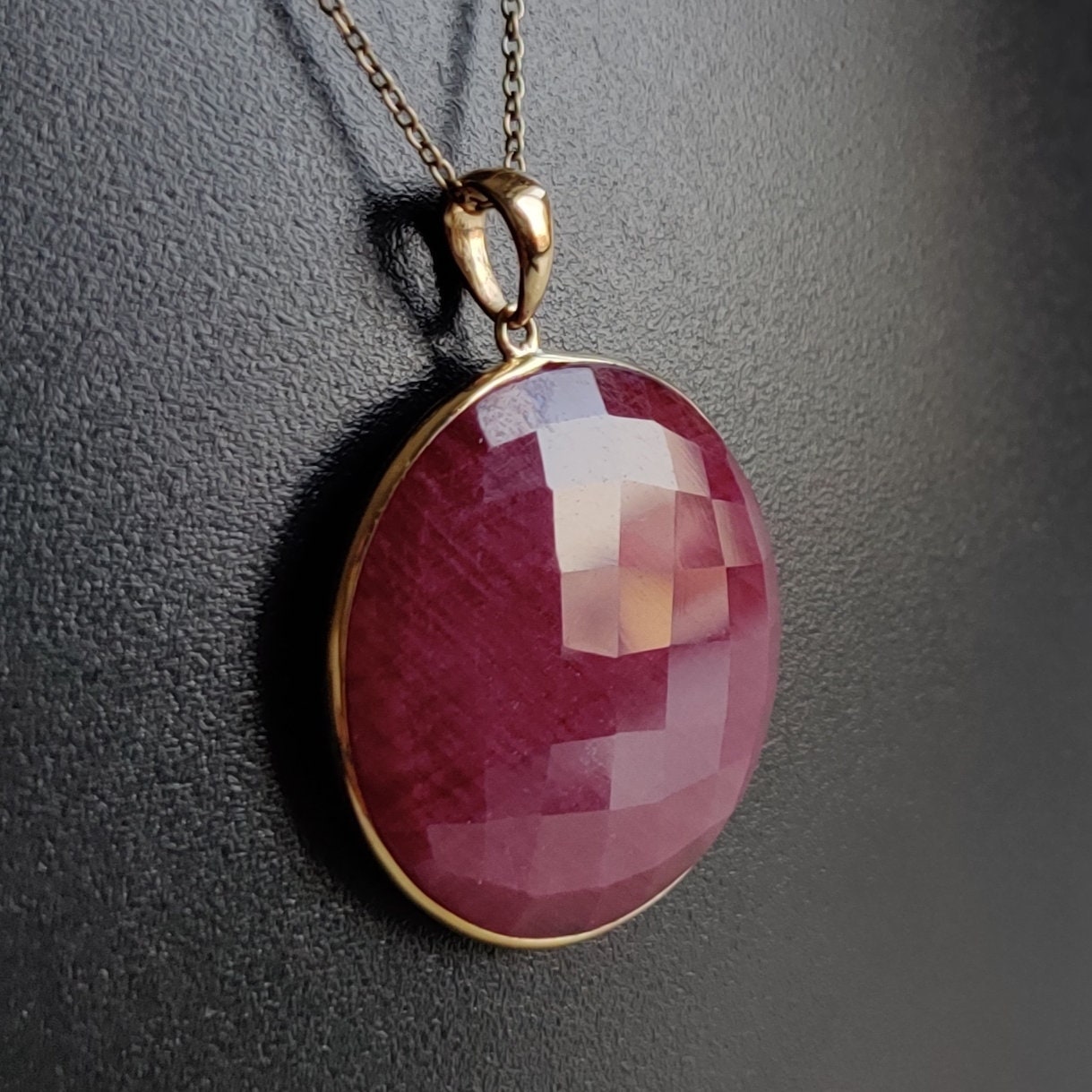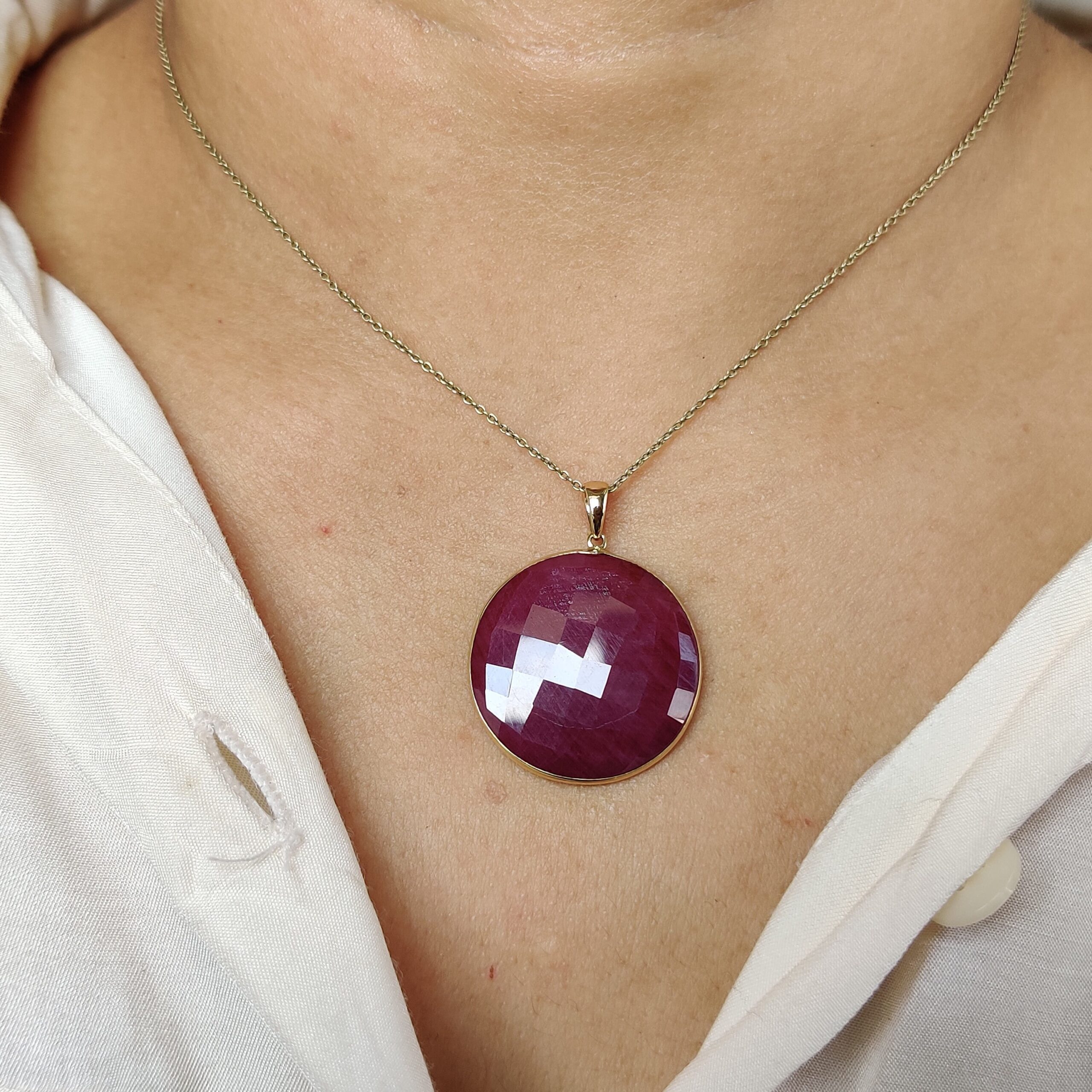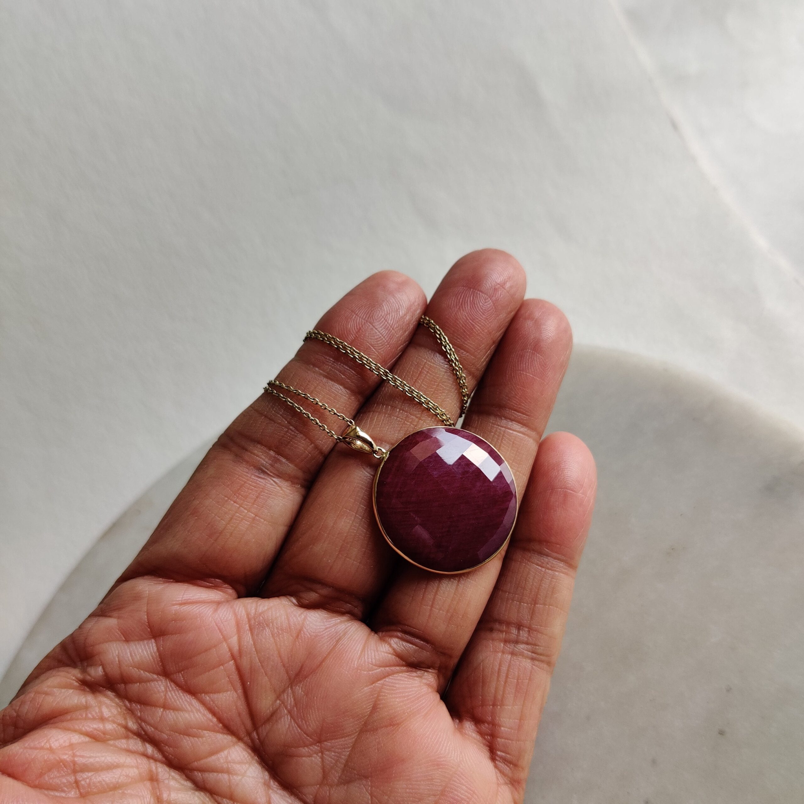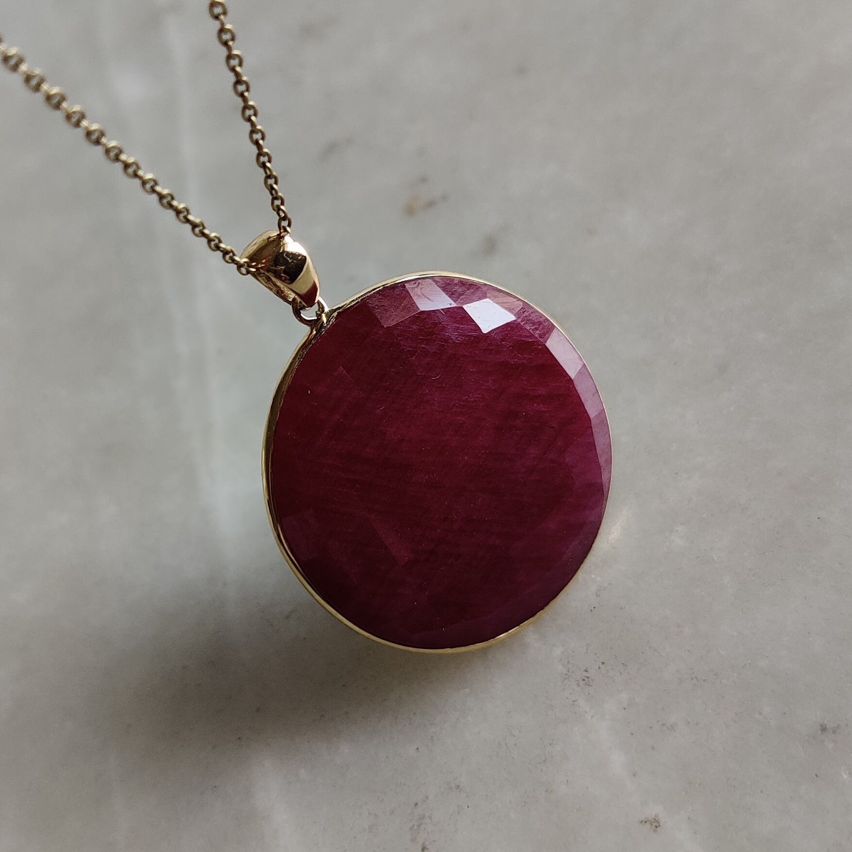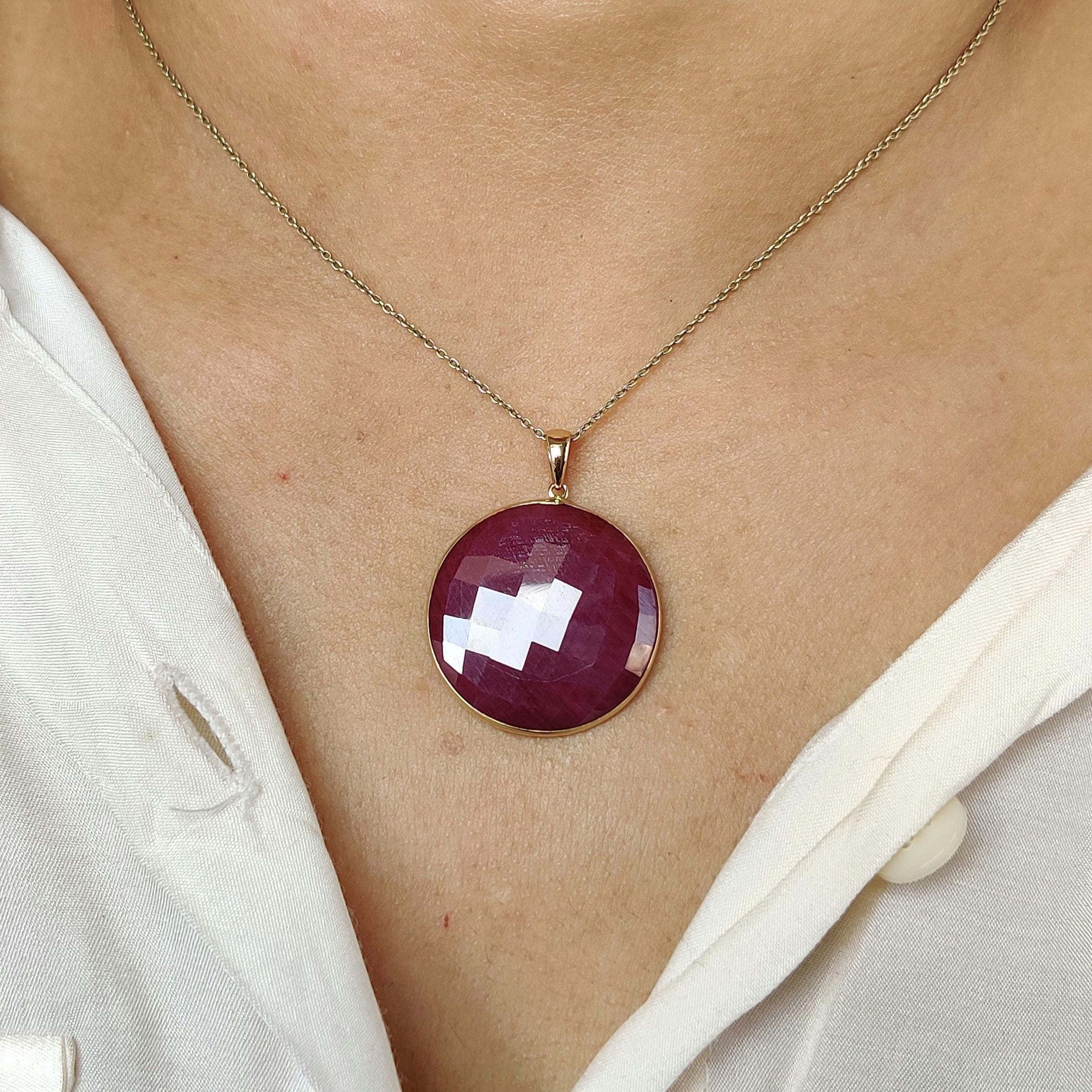 2 reviews for Round Cut Natural Ruby Birthstone Pendant, Set in 14K Solid Gold Bezel Setting