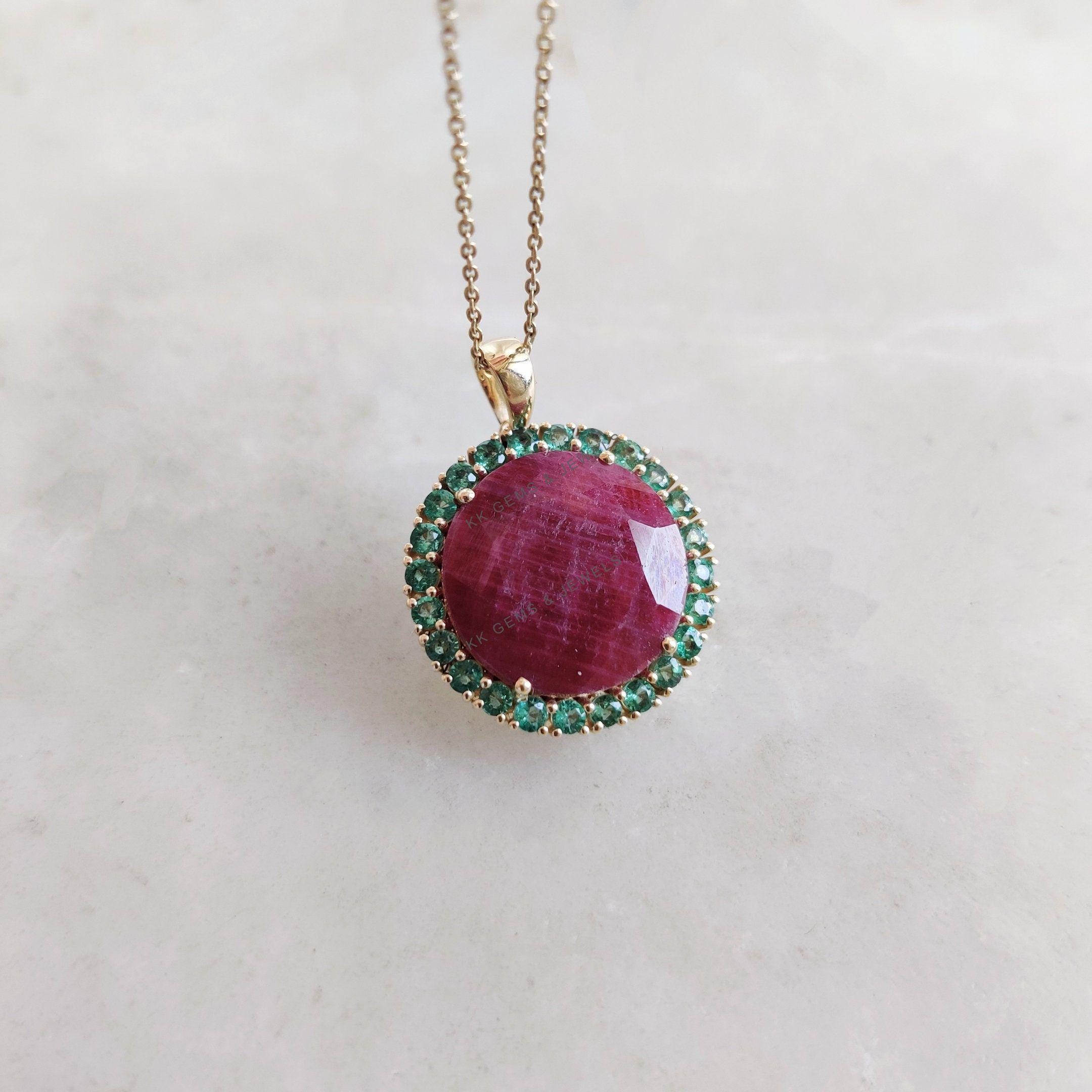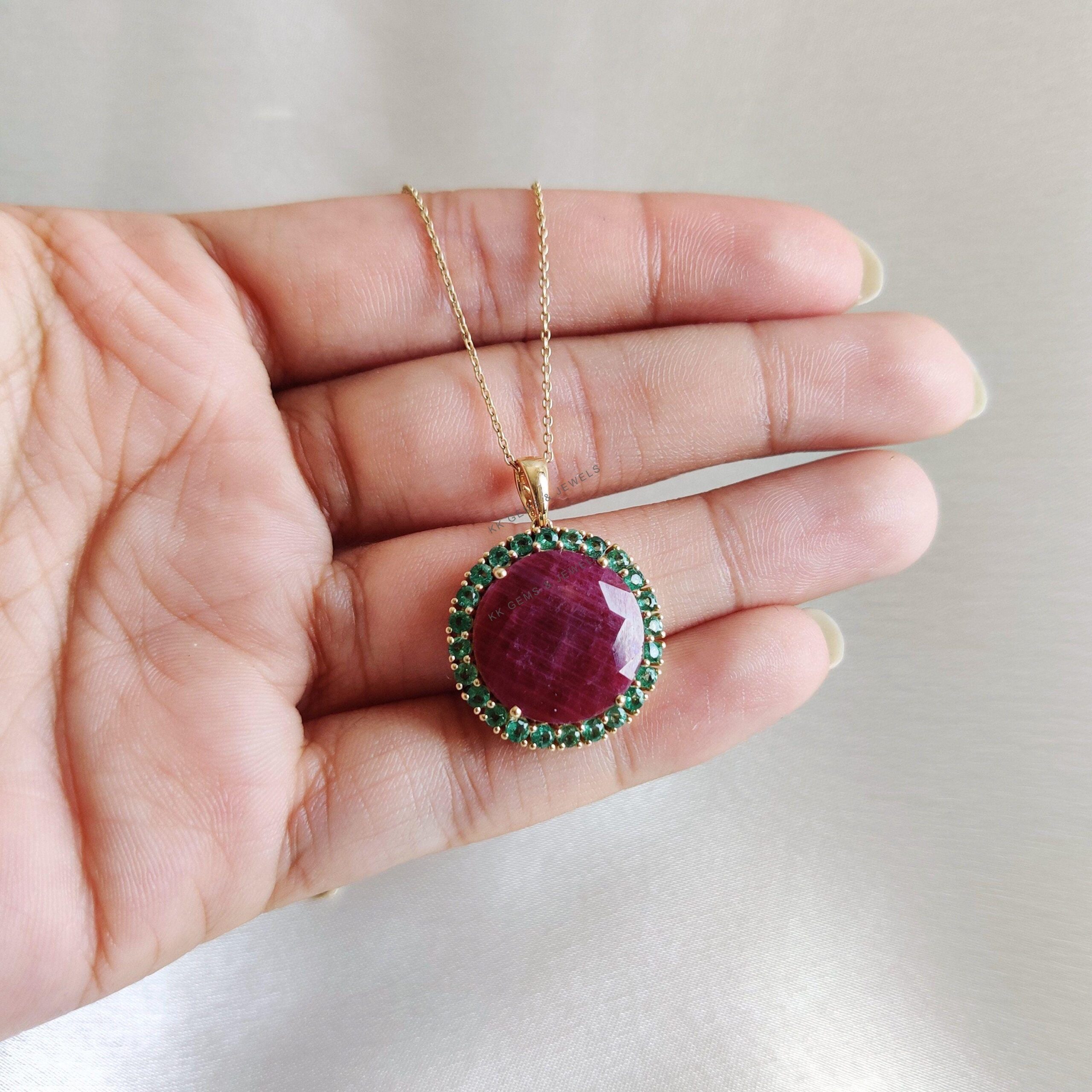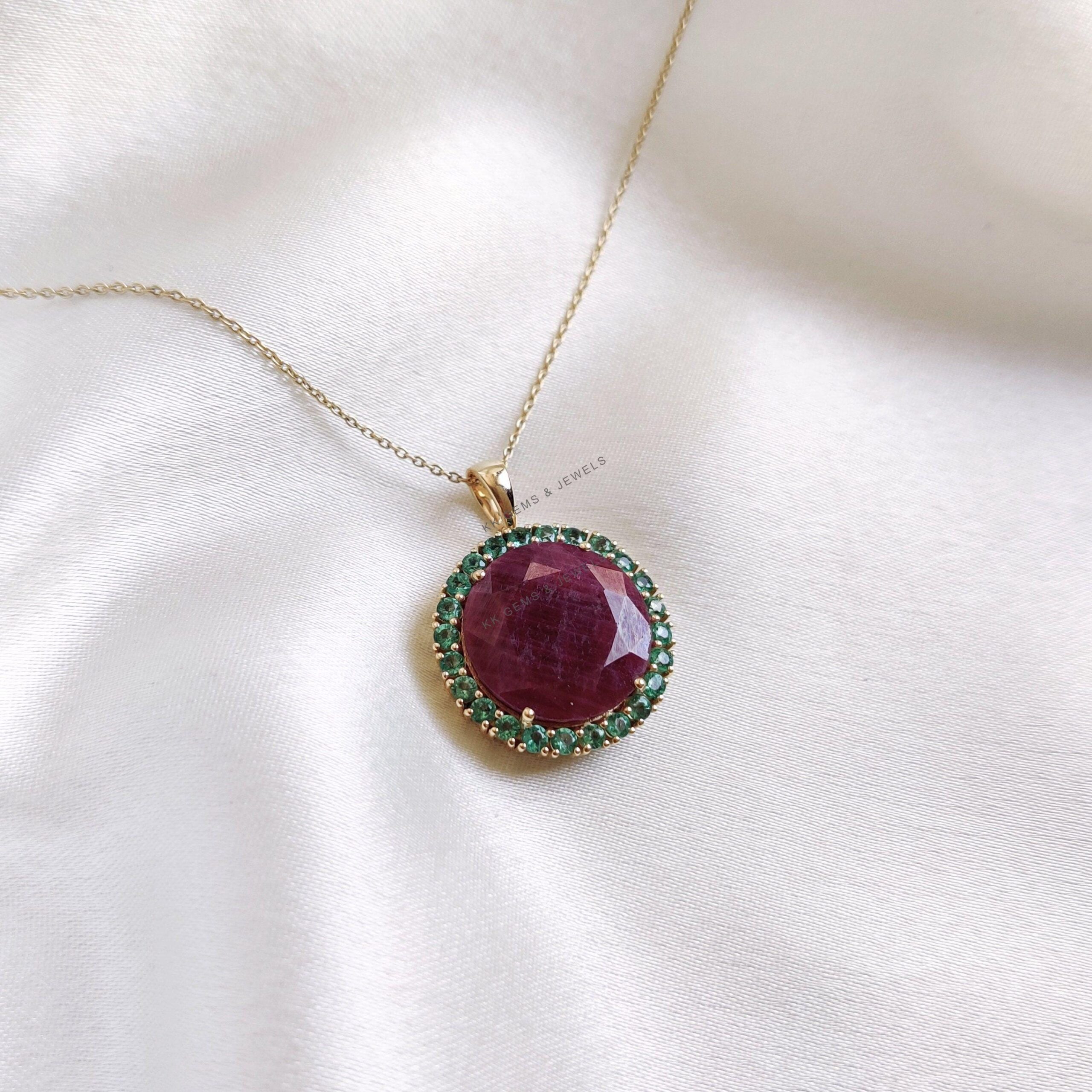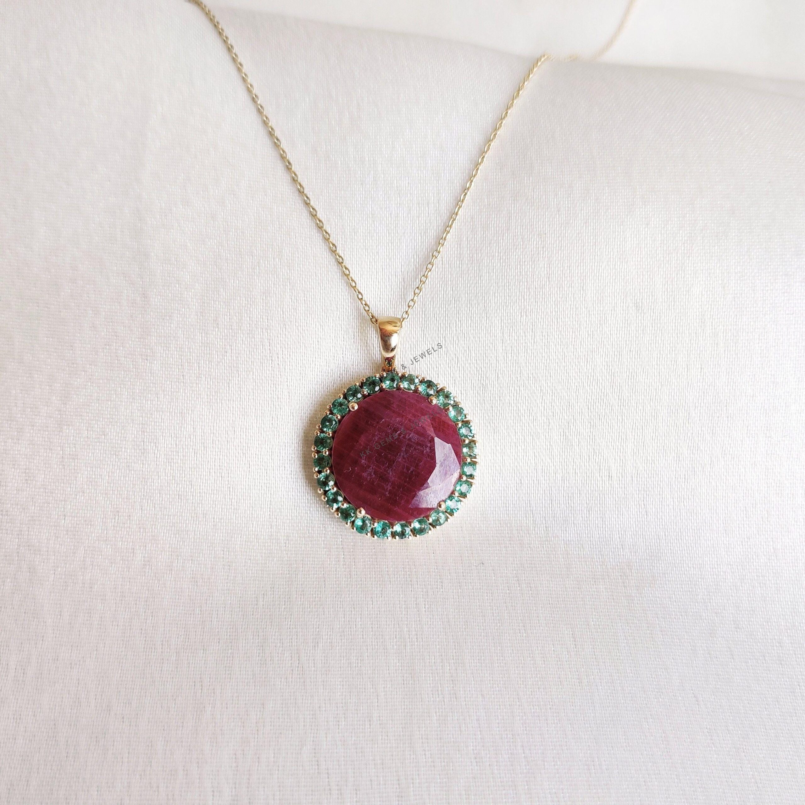 This stunning pendant is set in 14K Solid Yellow Gold with Natural Ruby and Emerald with utmost precision. It is an unique gemstone pendant for nearly every occasion and is completely hassle-free jewelry. ✓ ABOUT GEMSTONE: Ruby is a striking…