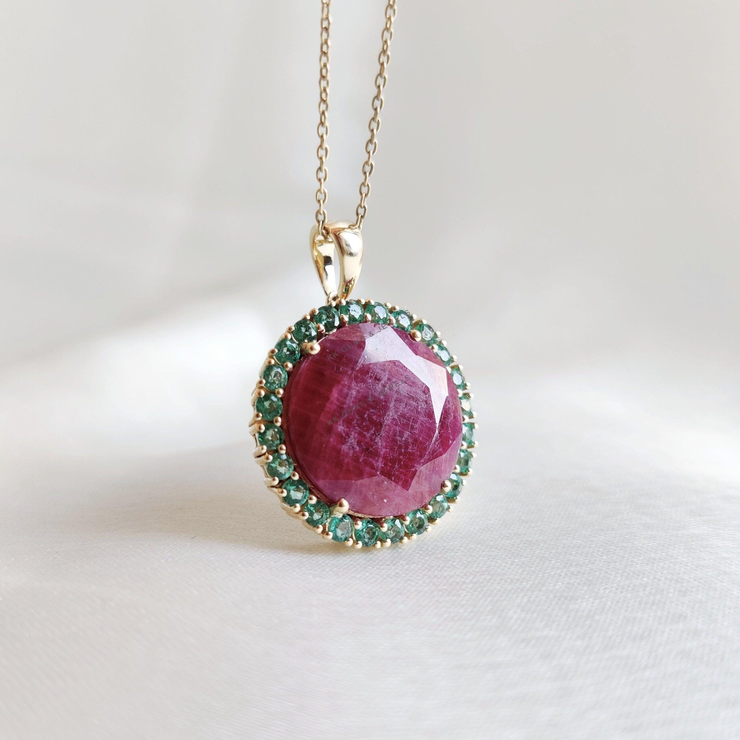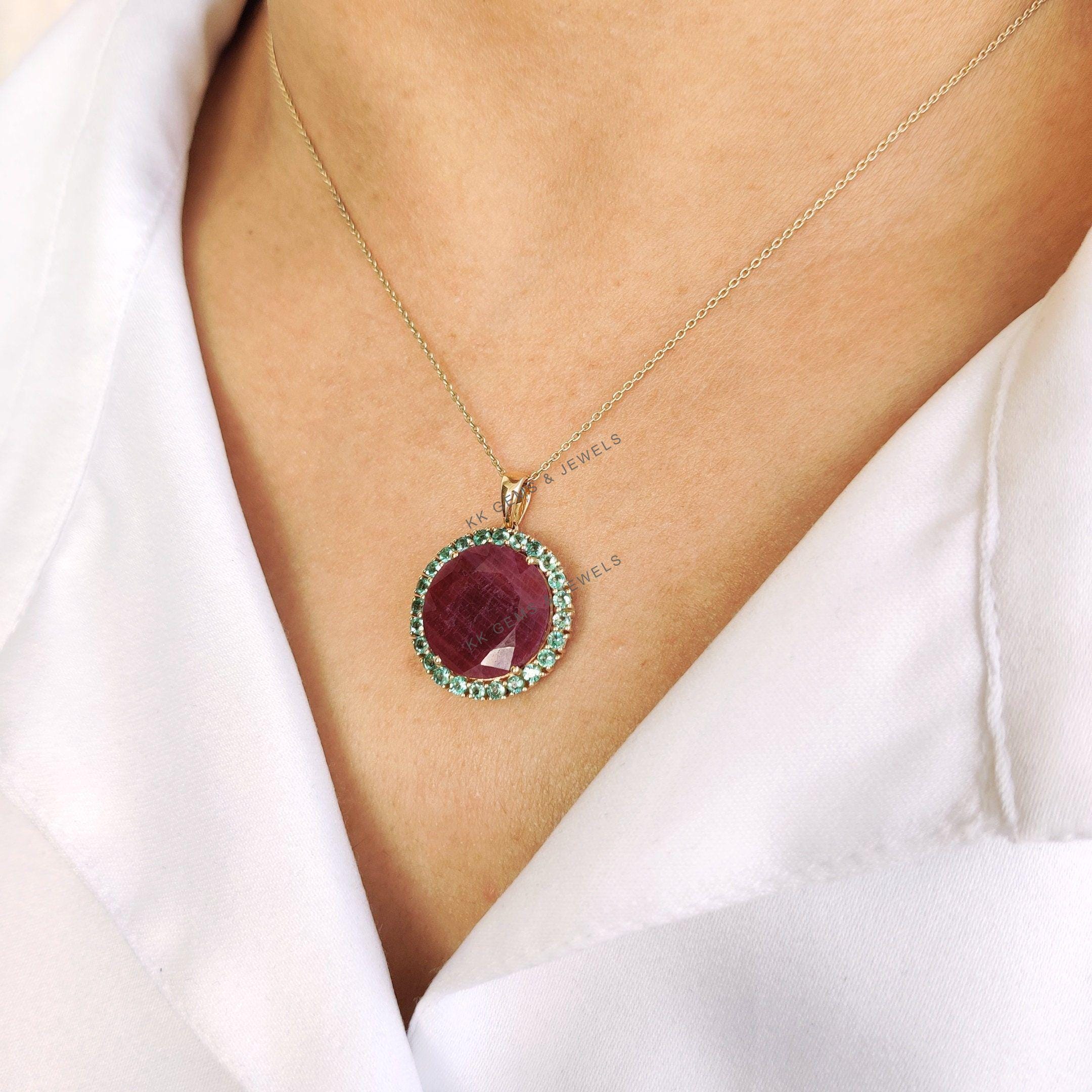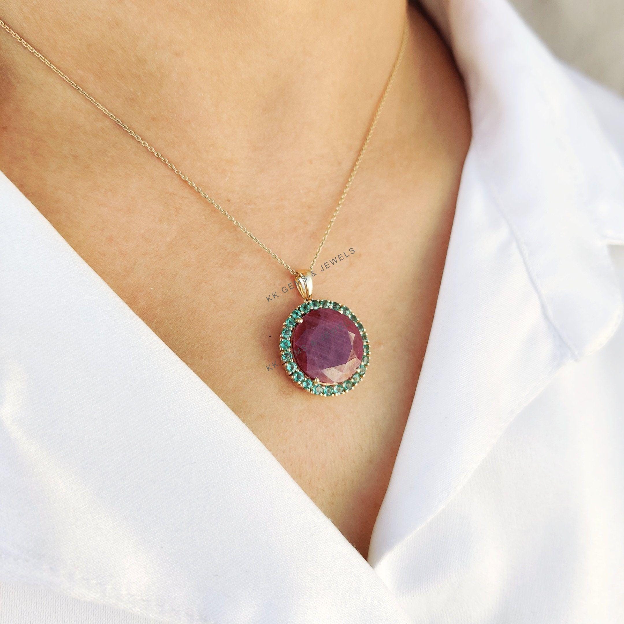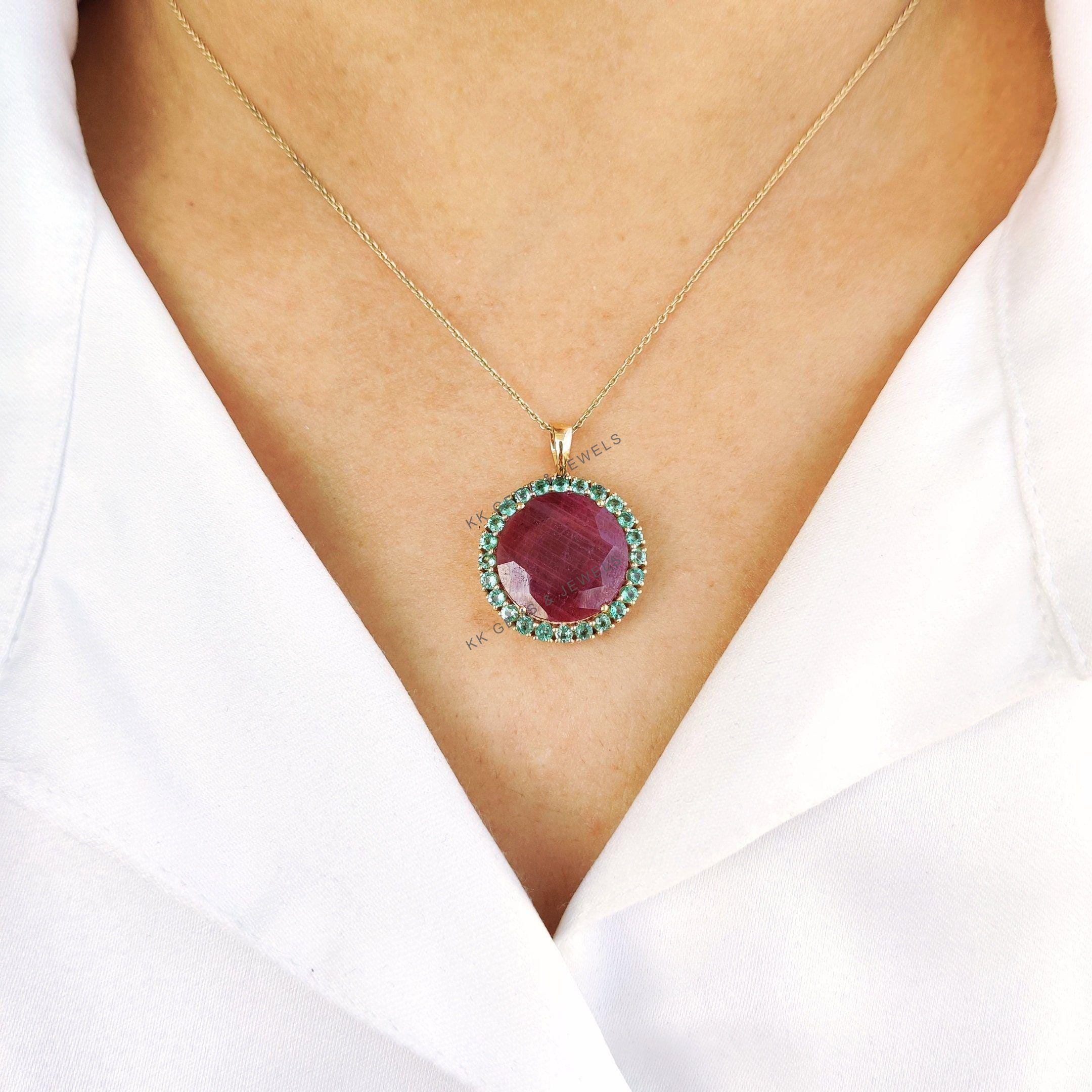 This stunning pendant is set in 14K Solid Yellow Gold with Natural Ruby and Emerald with utmost precision. It is an unique gemstone pendant for nearly every occasion and is completely hassle-free jewelry. ✓ ABOUT GEMSTONE: Ruby is a striking…