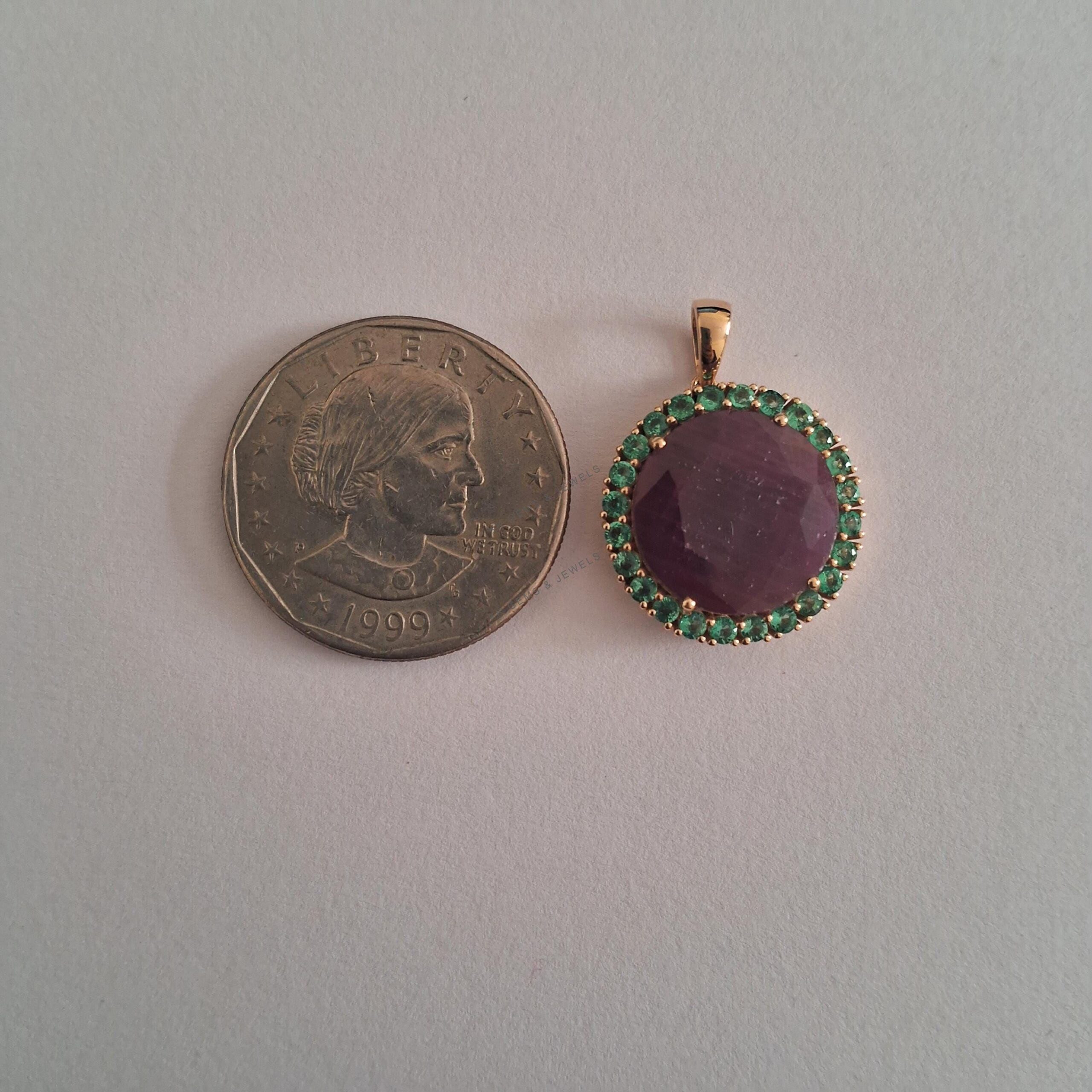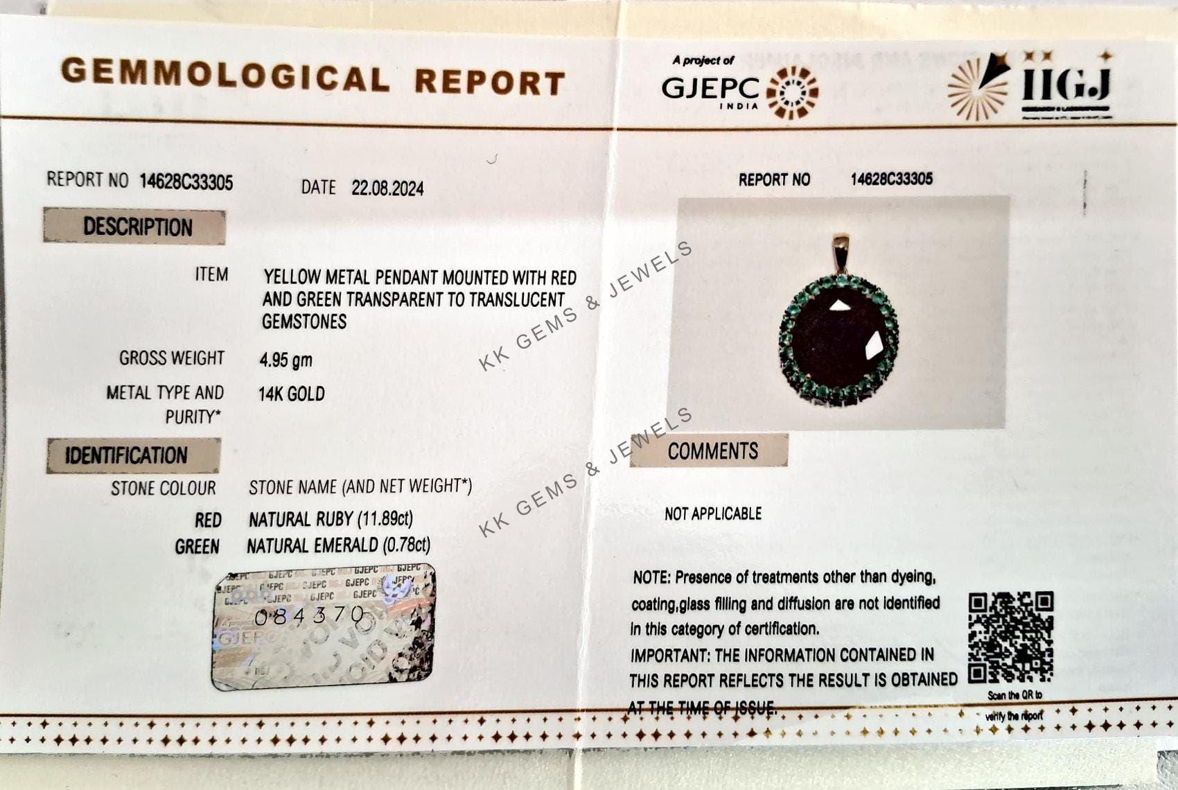 This stunning pendant is set in 14K Solid Yellow Gold with Natural Ruby and Emerald with utmost precision. It is an unique gemstone pendant for nearly every occasion and is completely hassle-free jewelry.