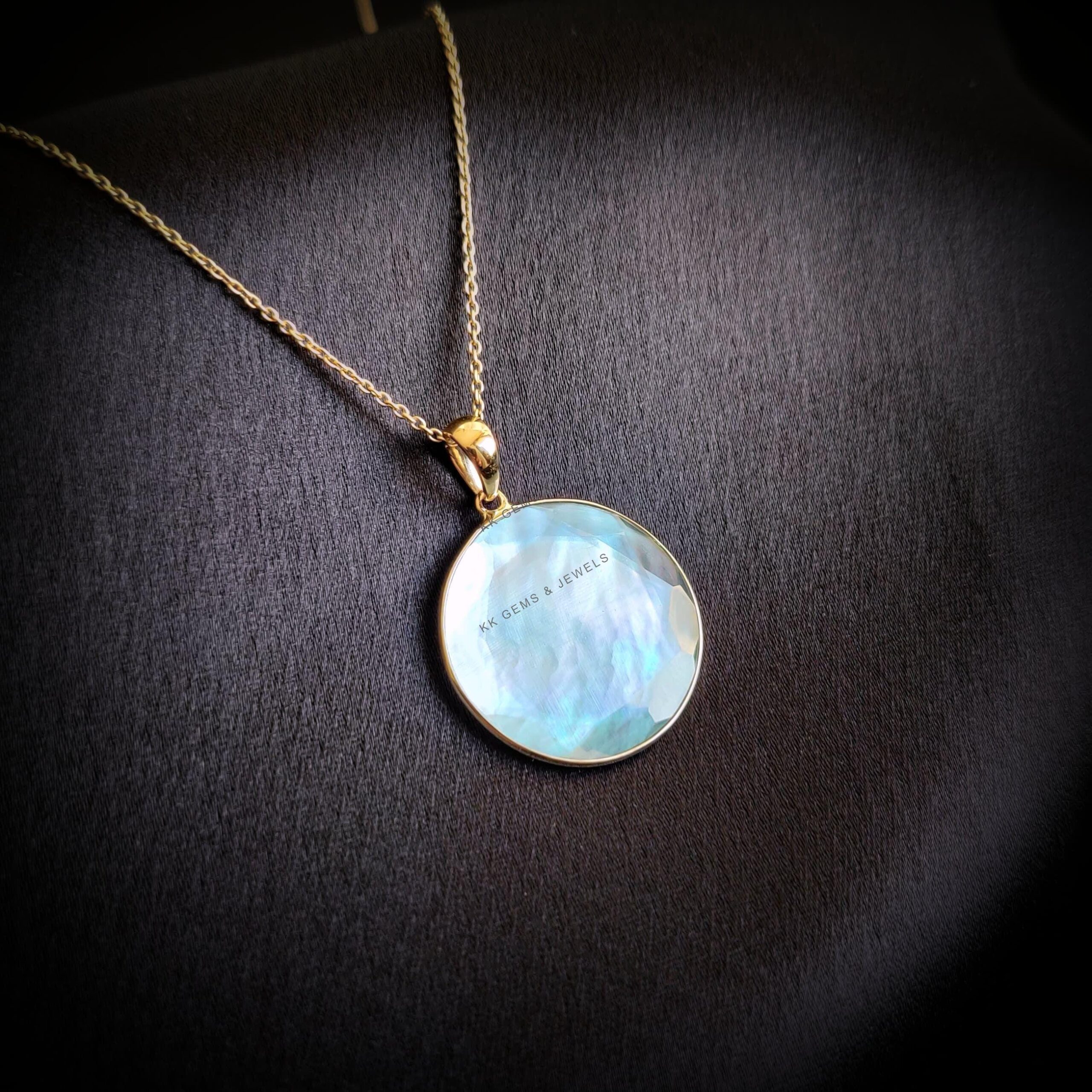 This stunning pendant is set in 14k Solid Yellow Gold with Natural Mop with utmost precision. It is an unique gemstone pendant for nearly every occasion and is completely hassle-free jewelry.