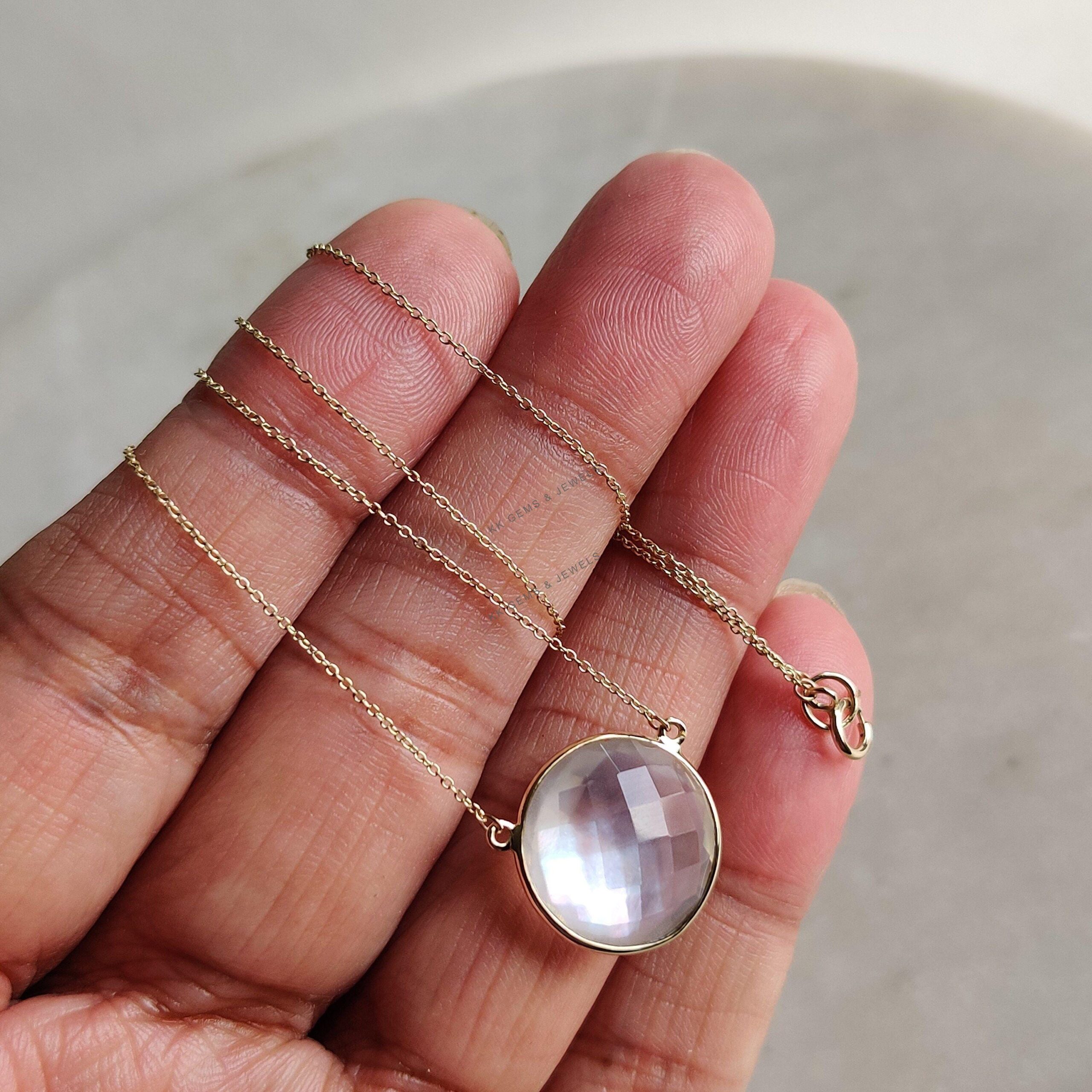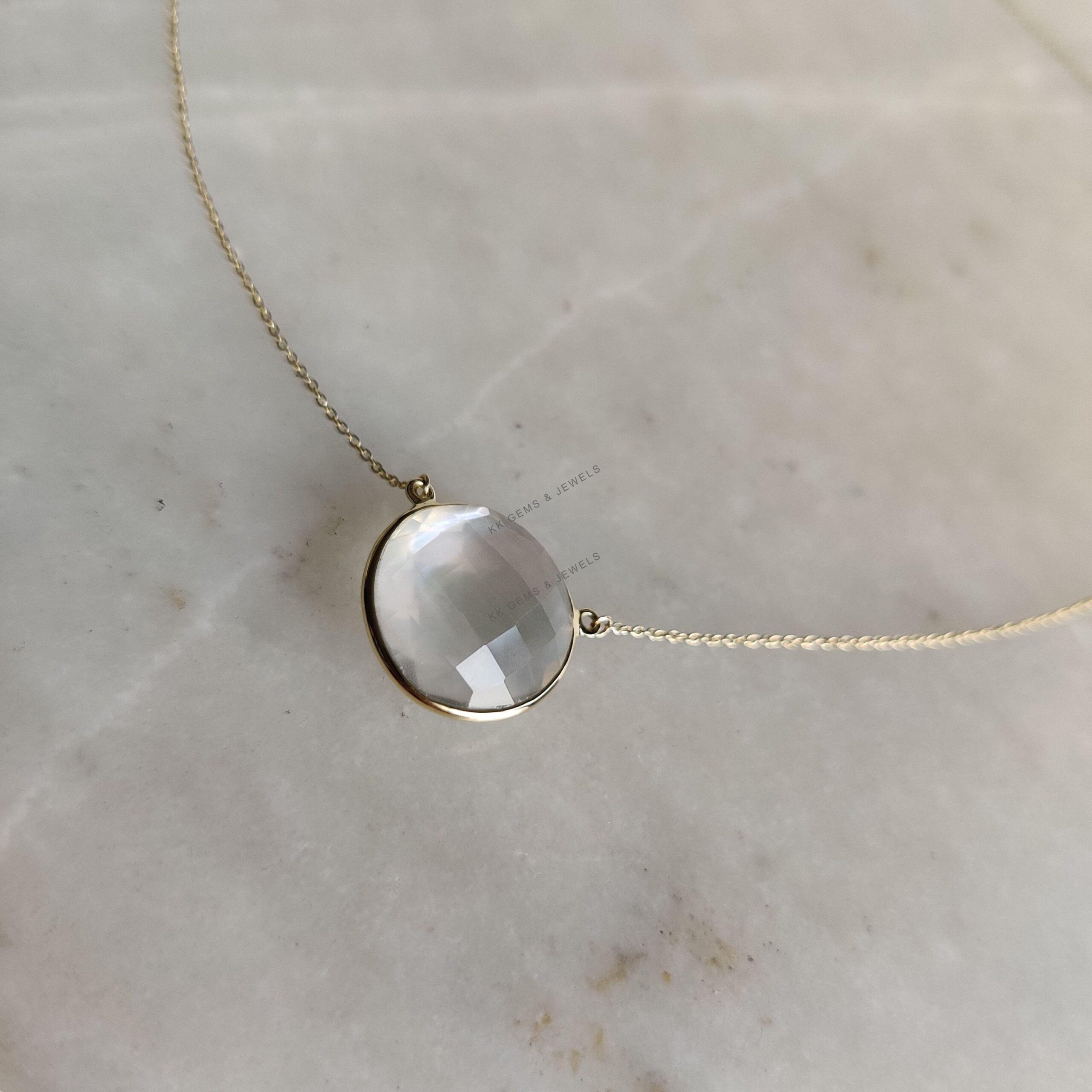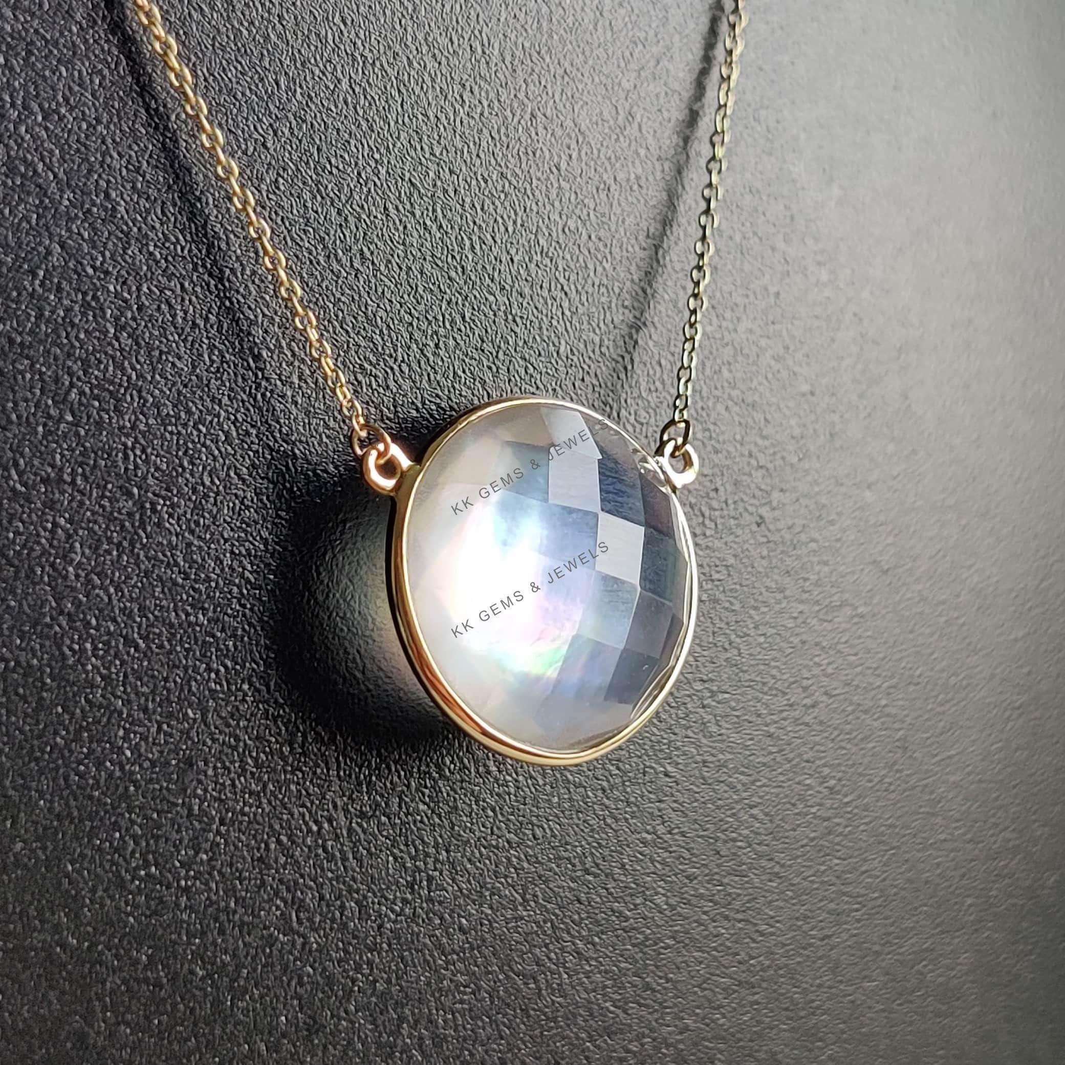 This stunning pendant is set in 14k Solid Yellow Gold with Natural Mop Doublet with utmost precision. It is an unique gemstone pendant for nearly every occasion and is completely hassle-free jewelry. ITEM DETAILS: • Gem Mop + Clear Quartz…