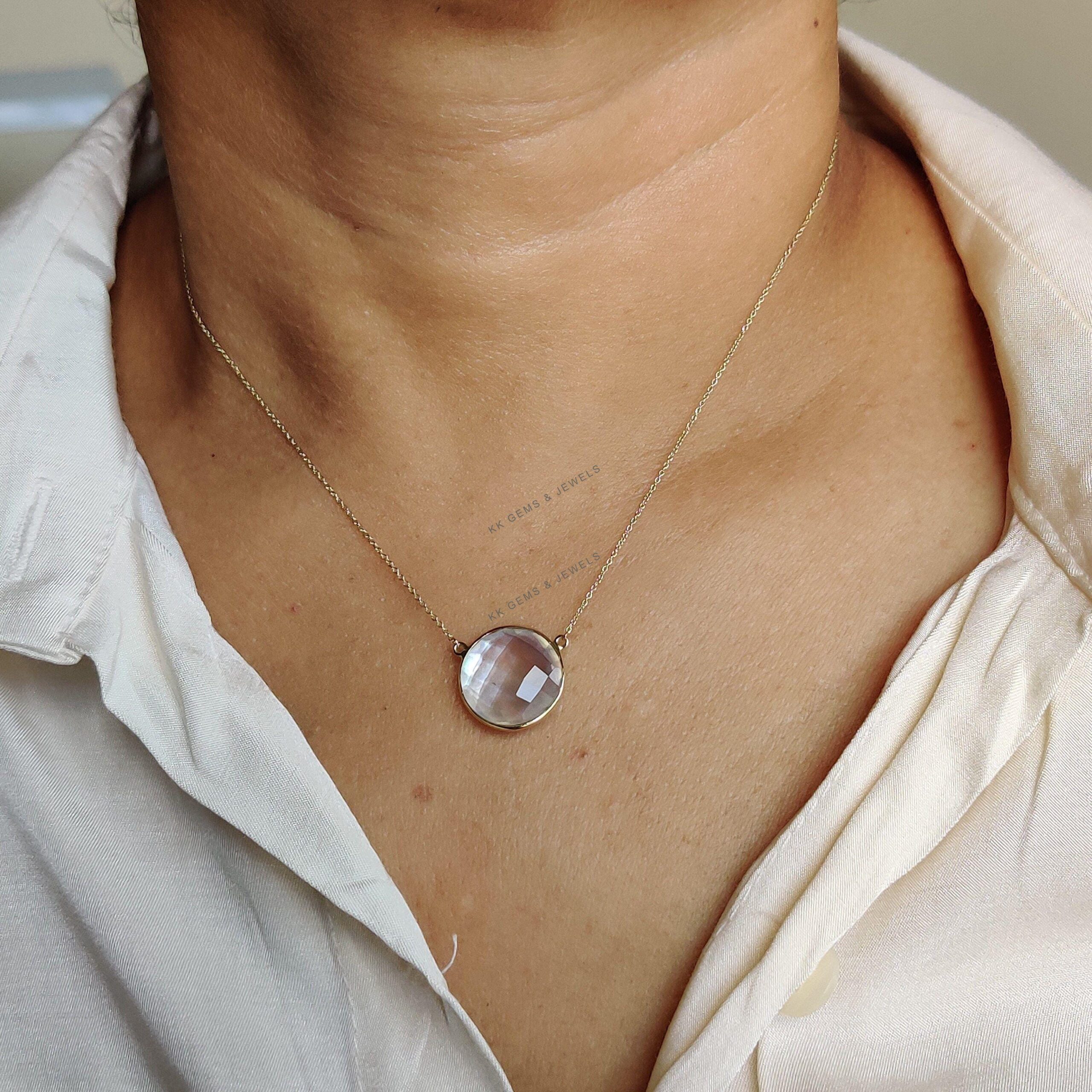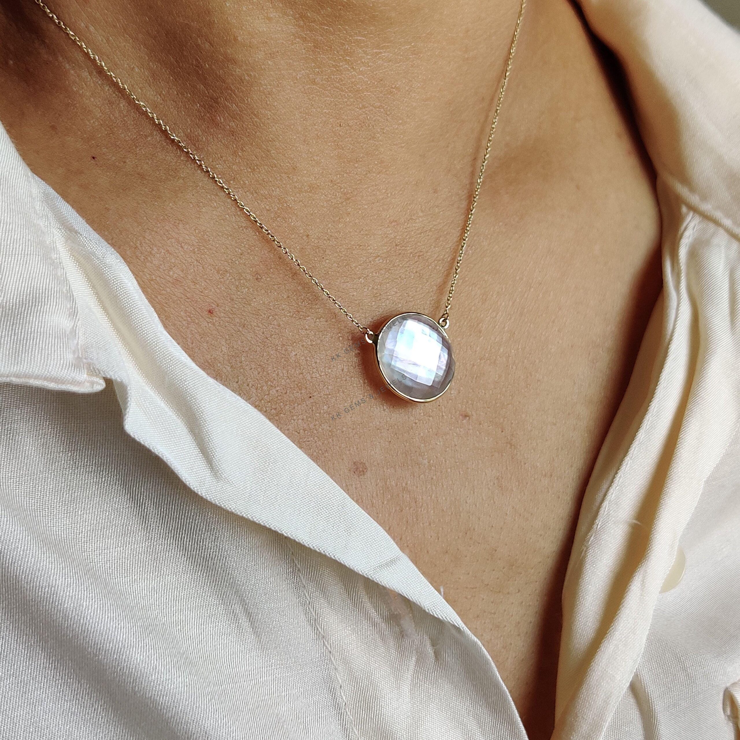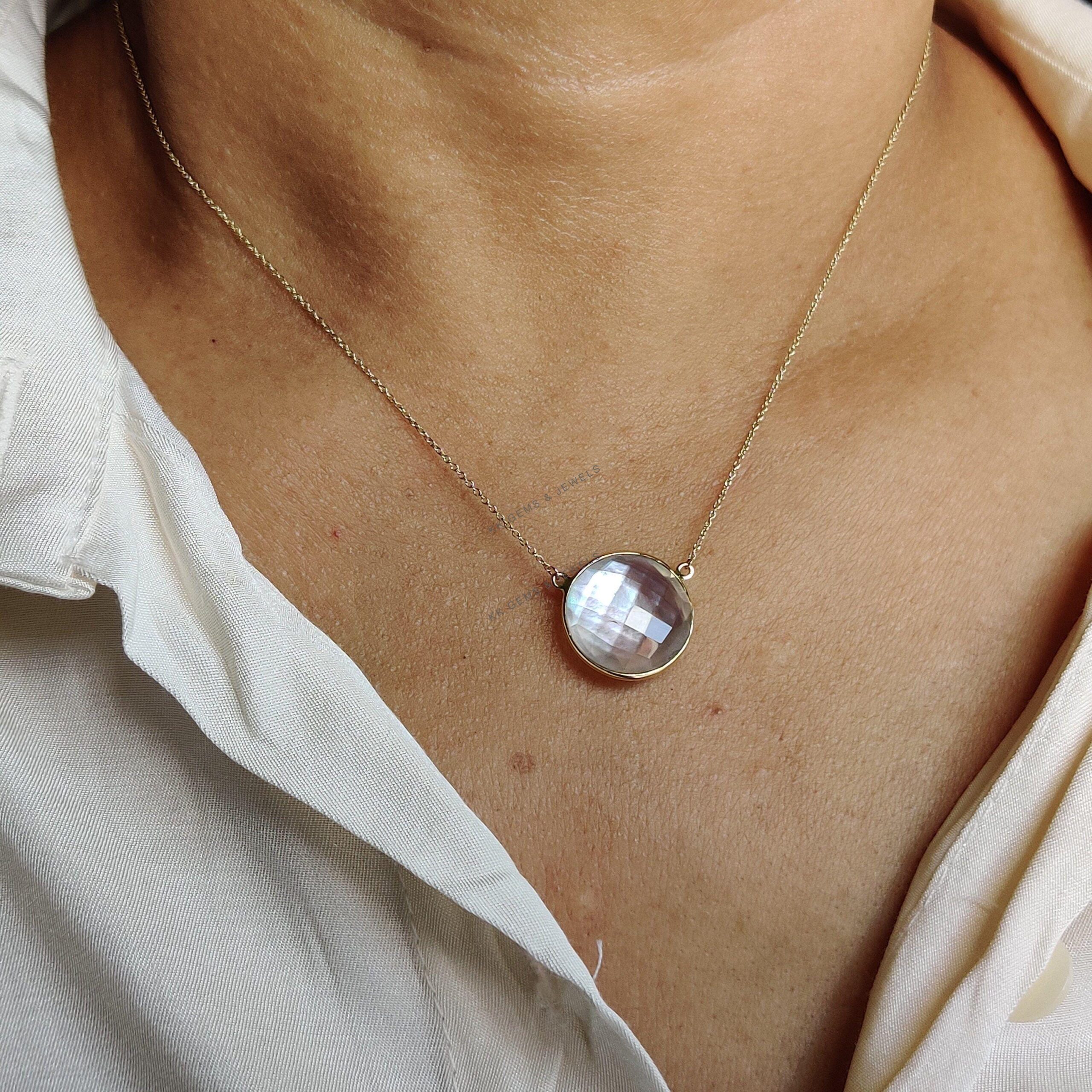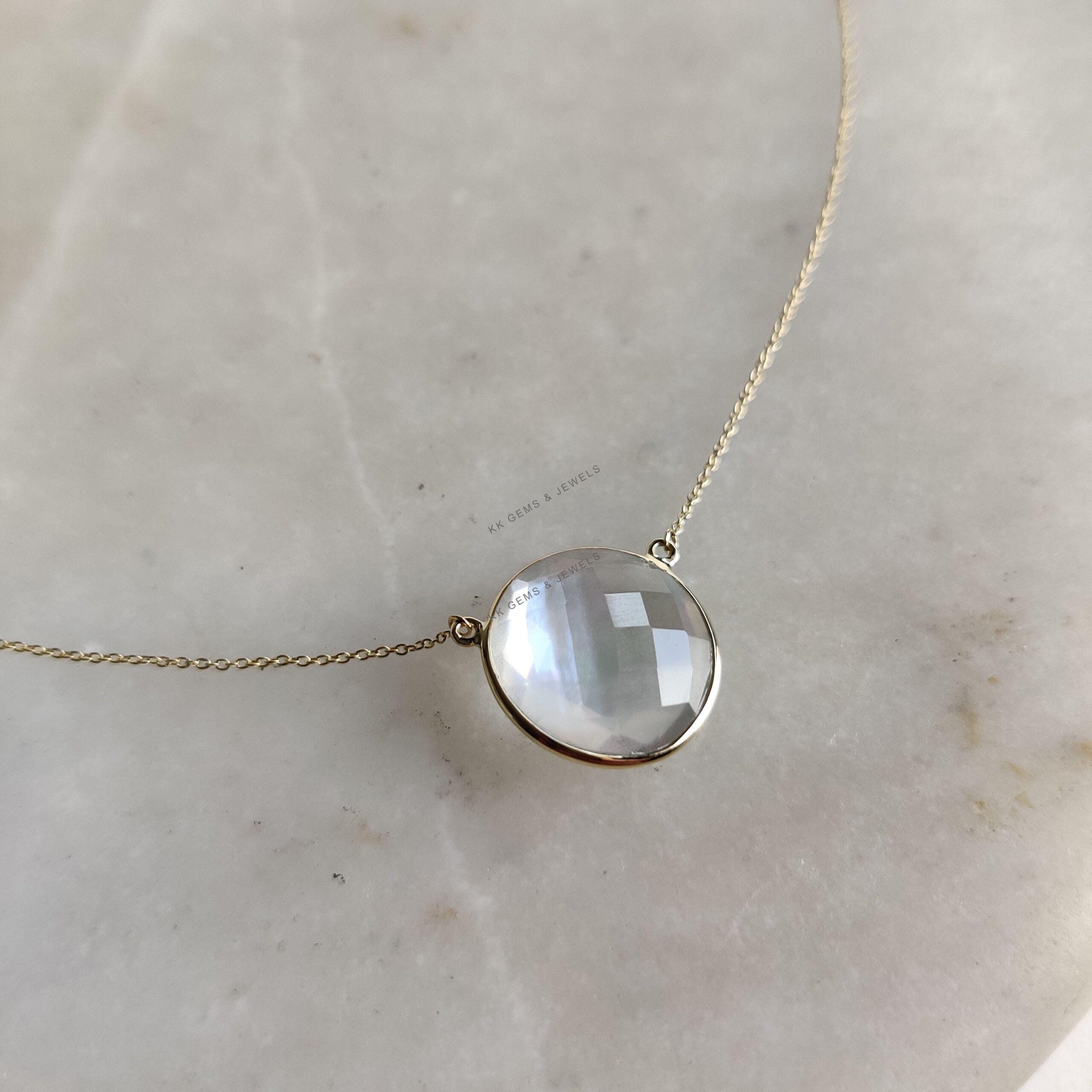 This stunning pendant is set in 14k Solid Yellow Gold with Natural Mop Doublet with utmost precision. It is an unique gemstone pendant for nearly every occasion and is completely hassle-free jewelry. ITEM DETAILS: • Gem Mop + Clear Quartz…