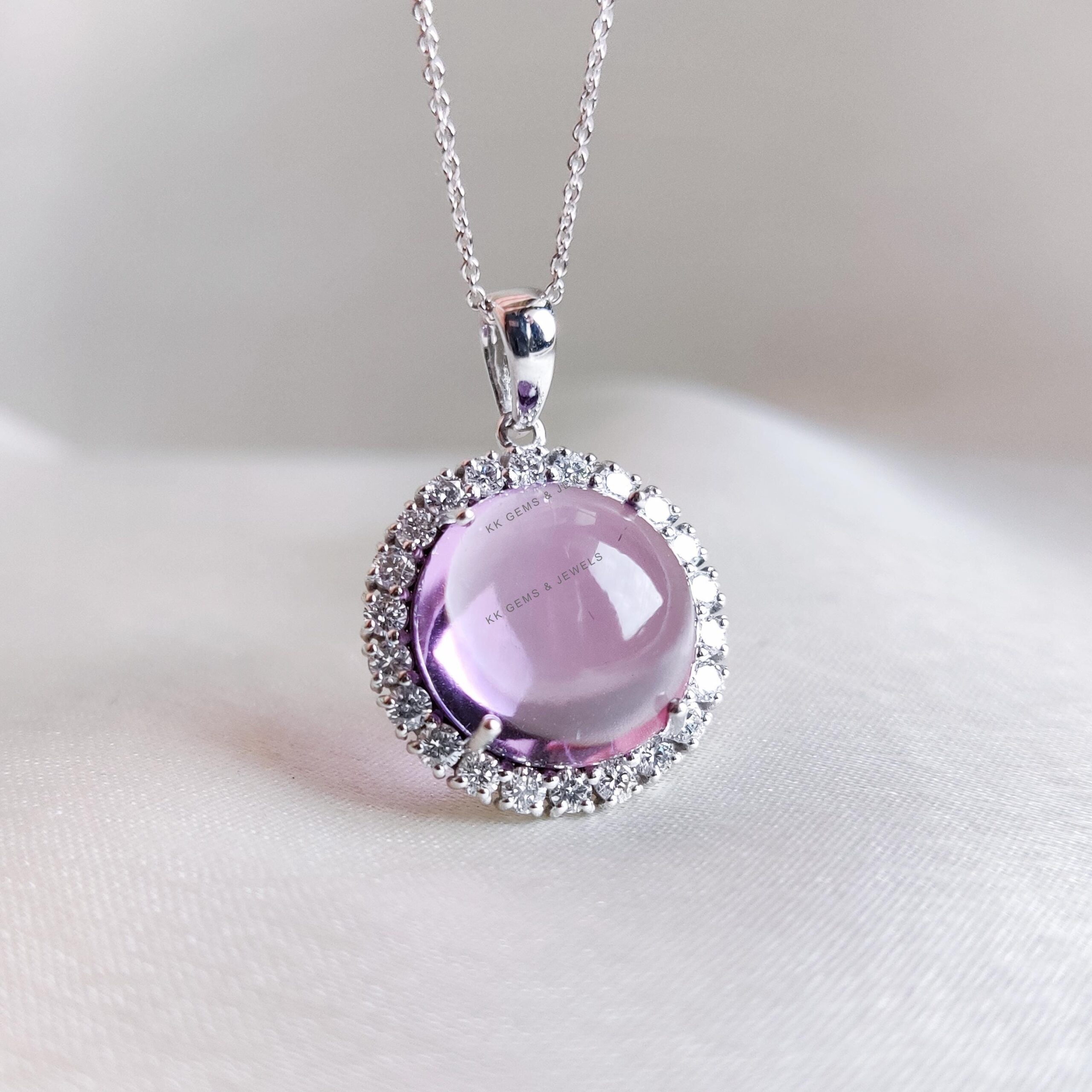Be the first to review “Round Shape Natural Purple Amethyst Diamond Birthstone Pendant Set in 14K Solid White Gold”