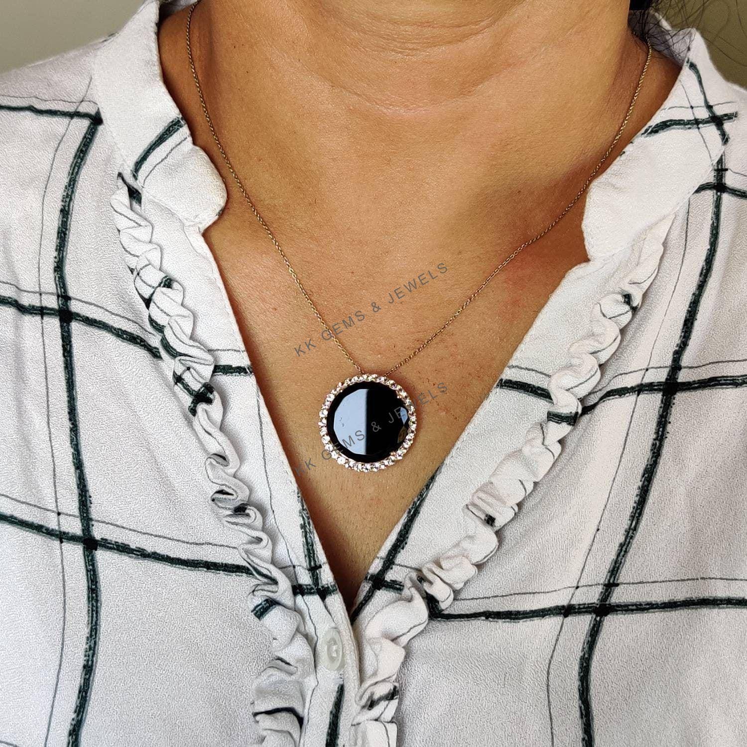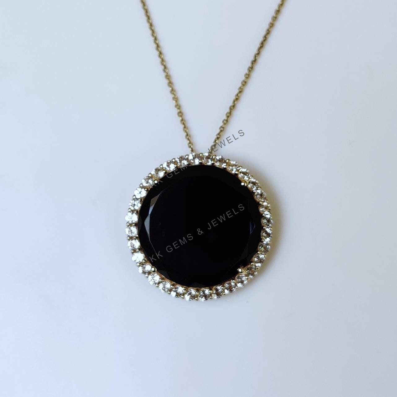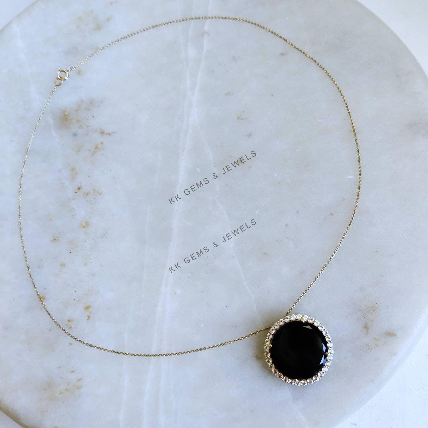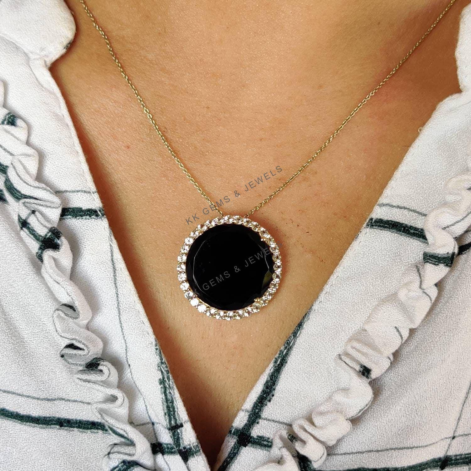 This stunning pendant is set in 14K Solid Yellow Gold with Natural Black Onyx and White Topaz with utmost precision. It is an unique gemstone pendant for nearly every occasion and is completely hassle-free jewelry. ✓ ABOUT GEMSTONE: Black onyx…
