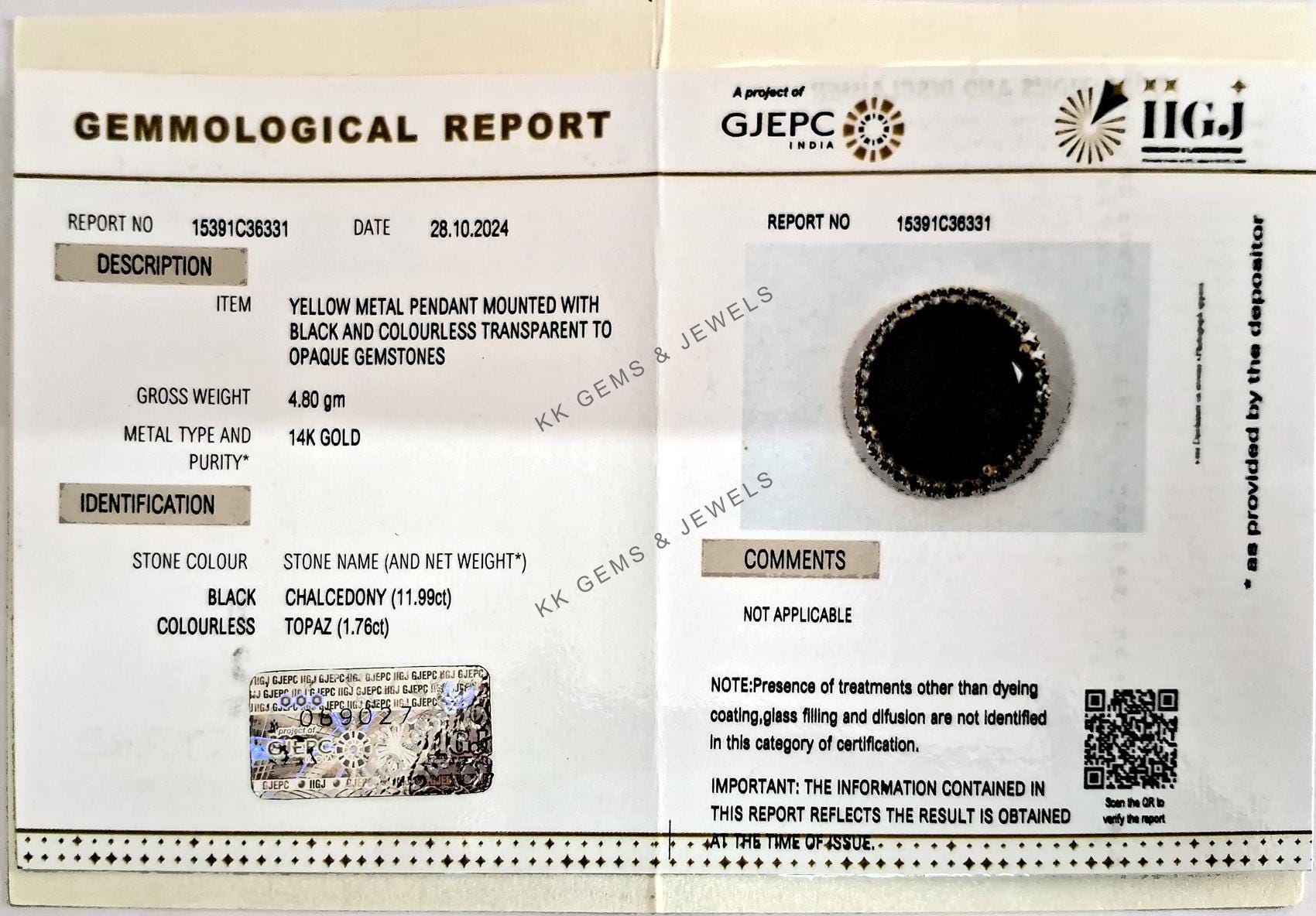 This stunning pendant is set in 14K Solid Yellow Gold with Natural Black Onyx and White Topaz with utmost precision. It is an unique gemstone pendant for nearly every occasion and is completely hassle-free jewelry.