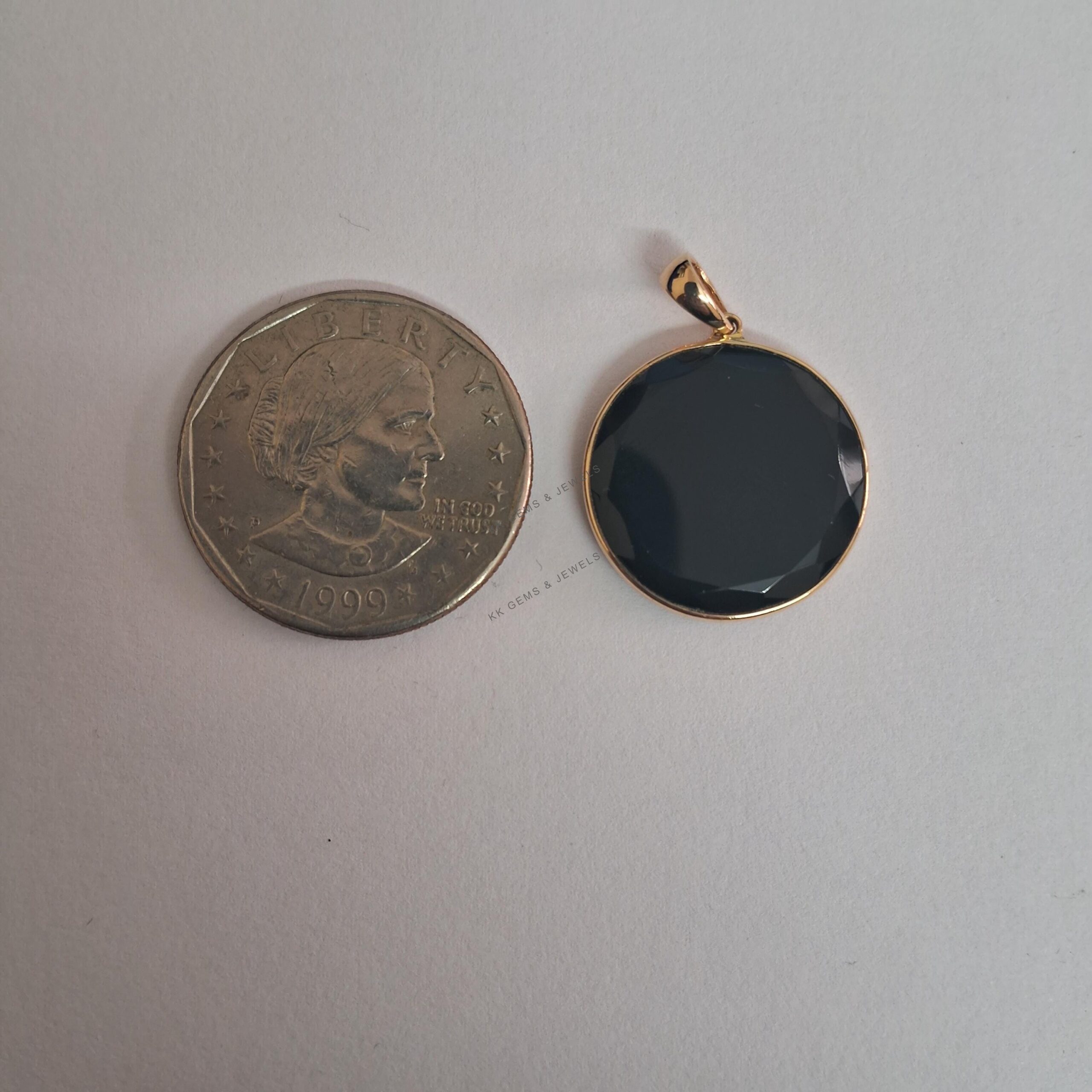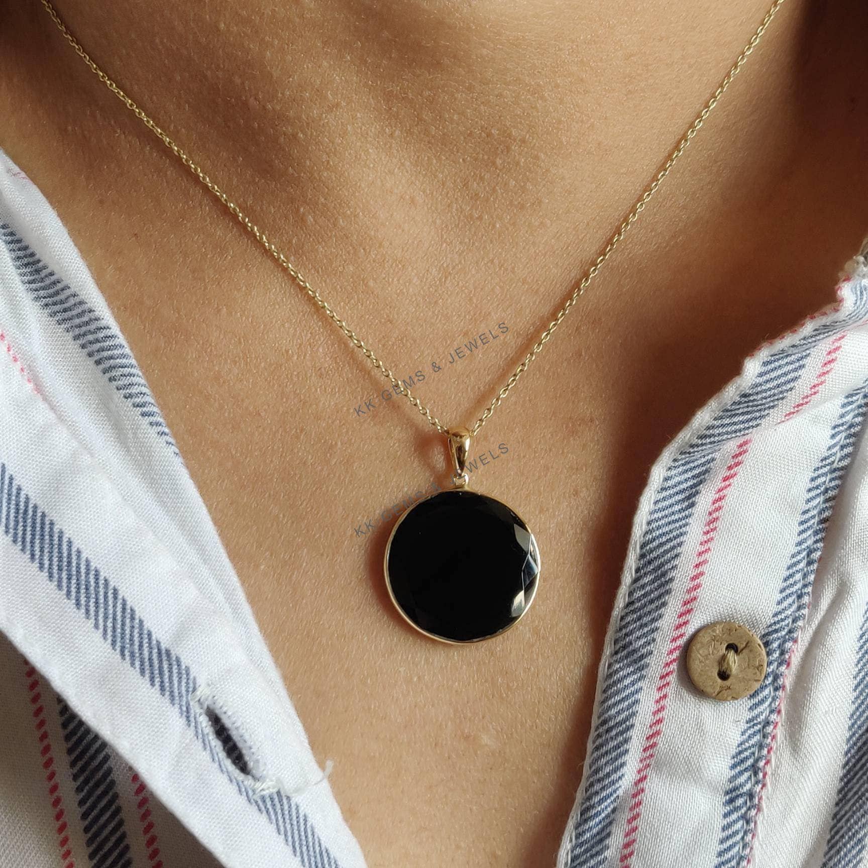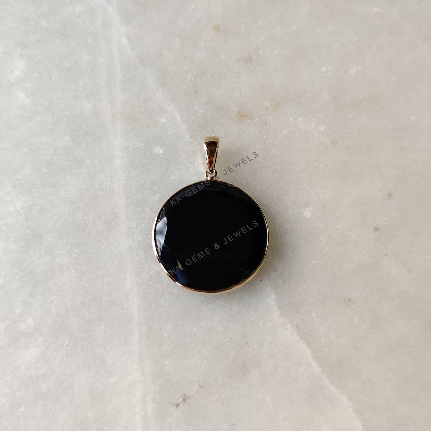 2 reviews for Round Flat Cut, Natural Black Onyx Bezel Pendant, Set in 14K Solid Gold