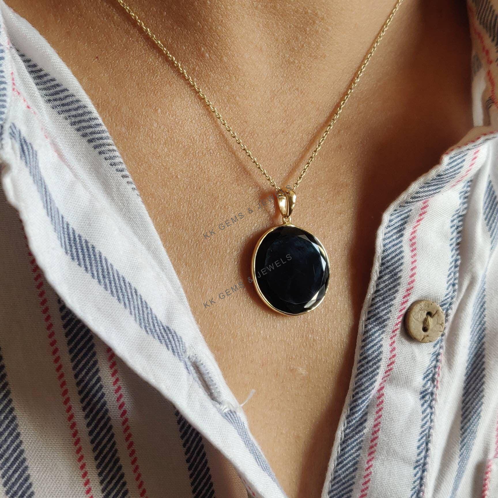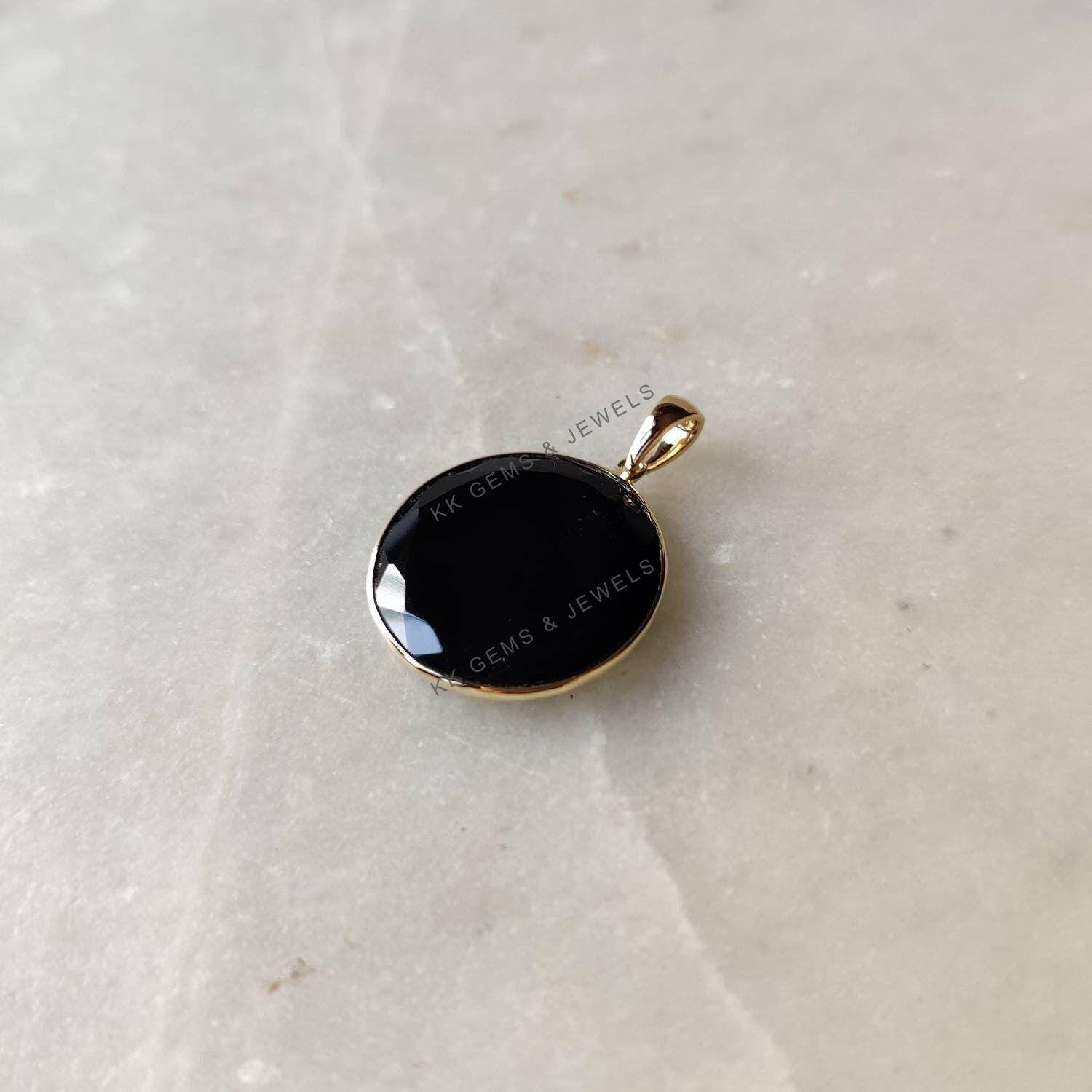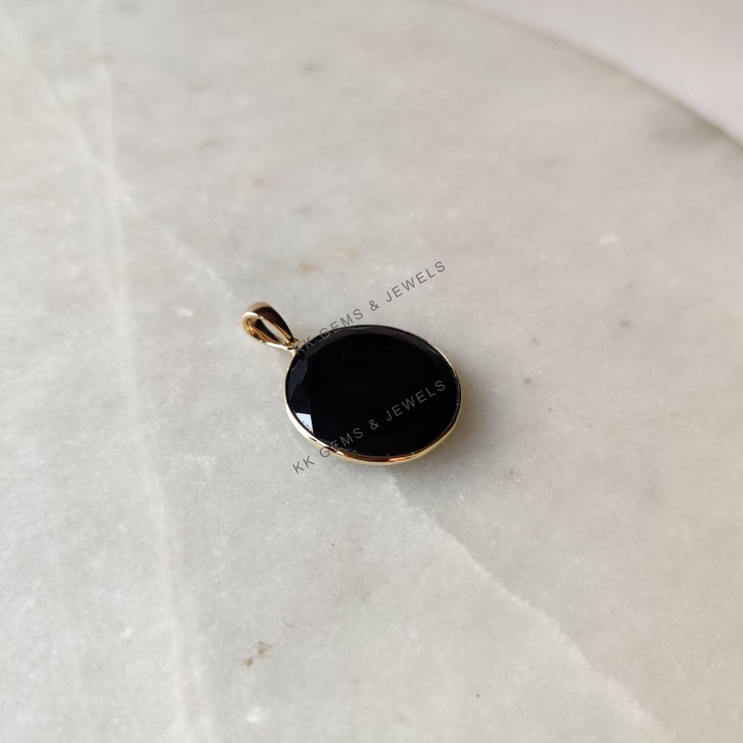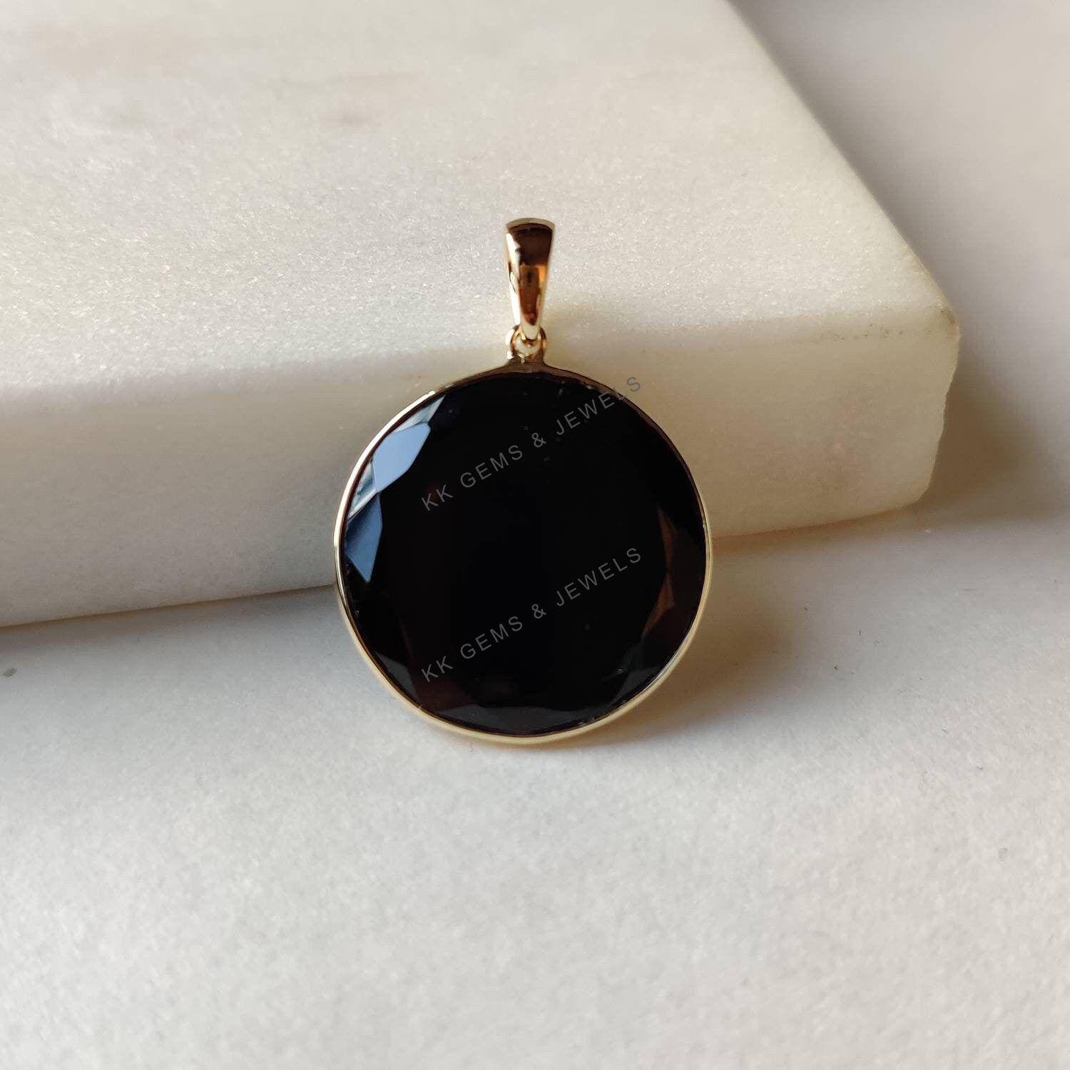 2 reviews for Round Flat Cut, Natural Black Onyx Bezel Pendant, Set in 14K Solid Gold