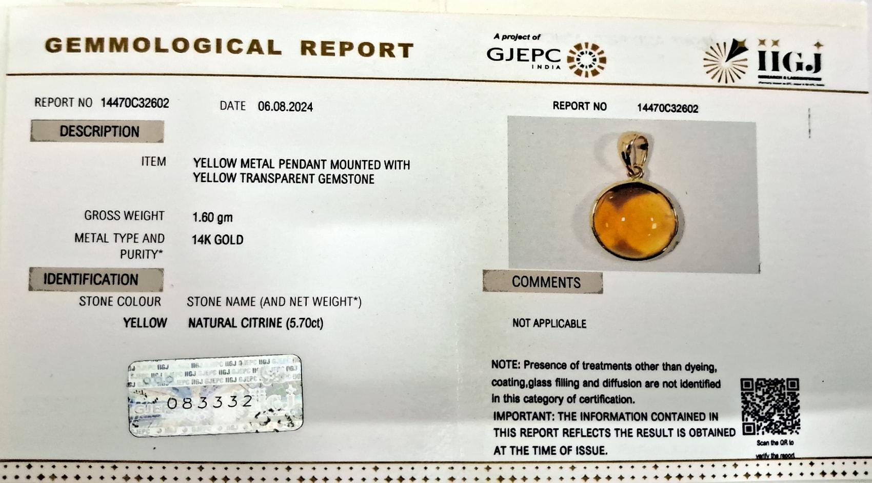 This stunning pendant is set in 14K Solid Yellow Gold with Natural Citrine with utmost precision. It is an unique gemstone pendant for nearly every occasion and is completely hassle-free jewelry.