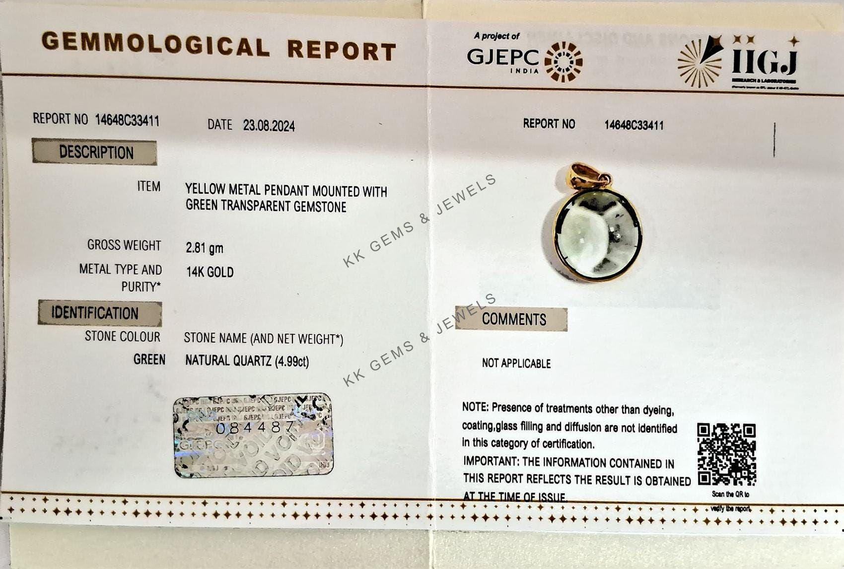 This stunning pendant is set in 14K Solid Yellow Gold with Natural Green Amethyst with utmost precision. It is an unique gemstone pendant for nearly every occasion and is completely hassle-free jewelry.