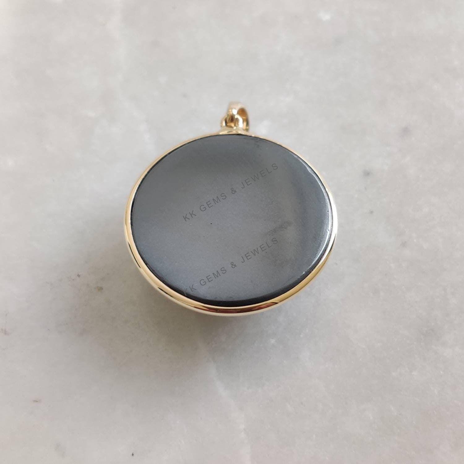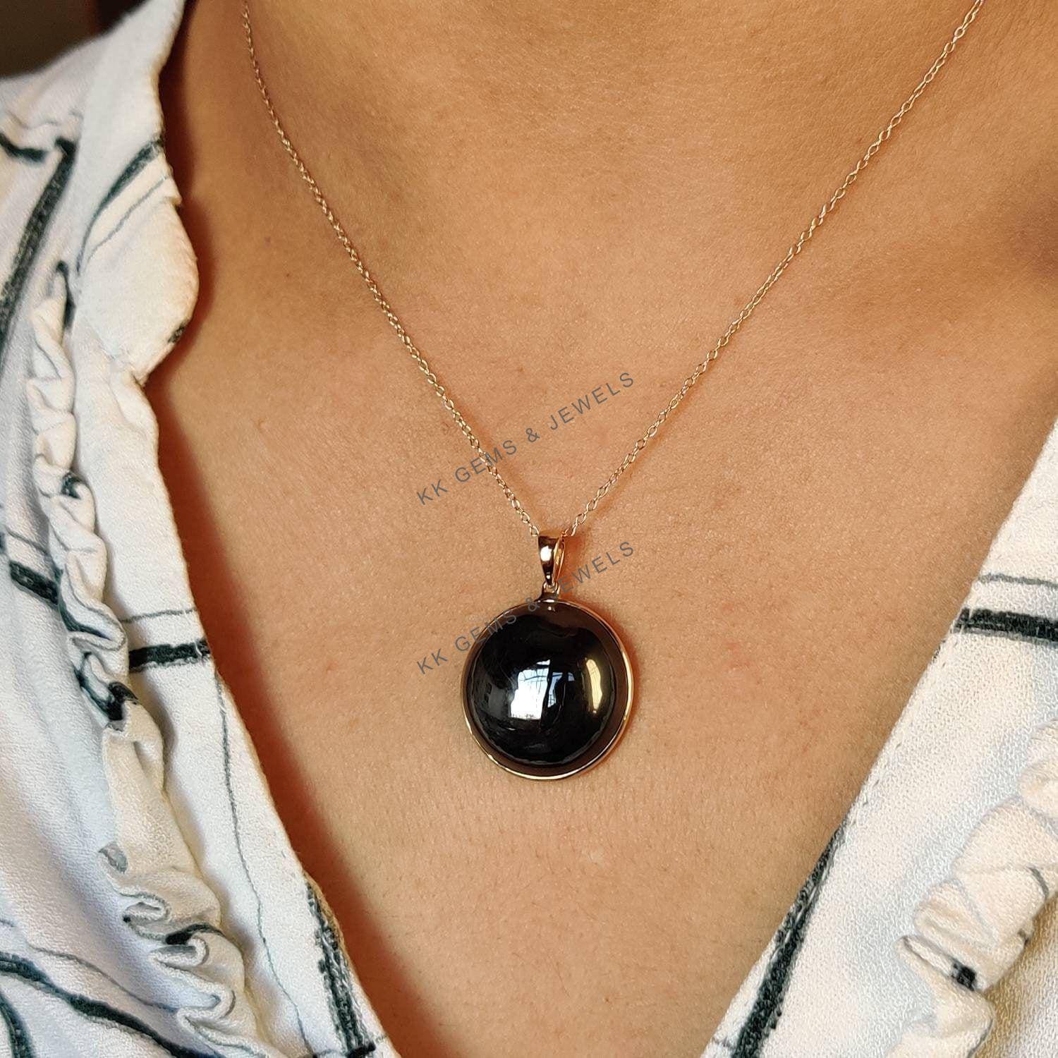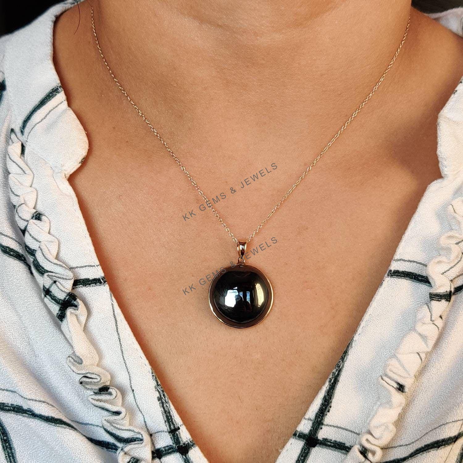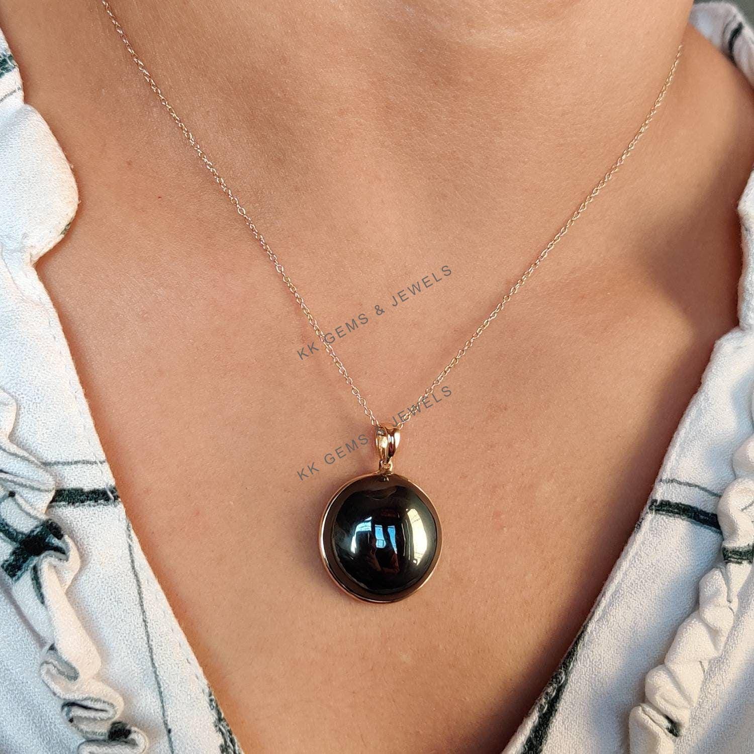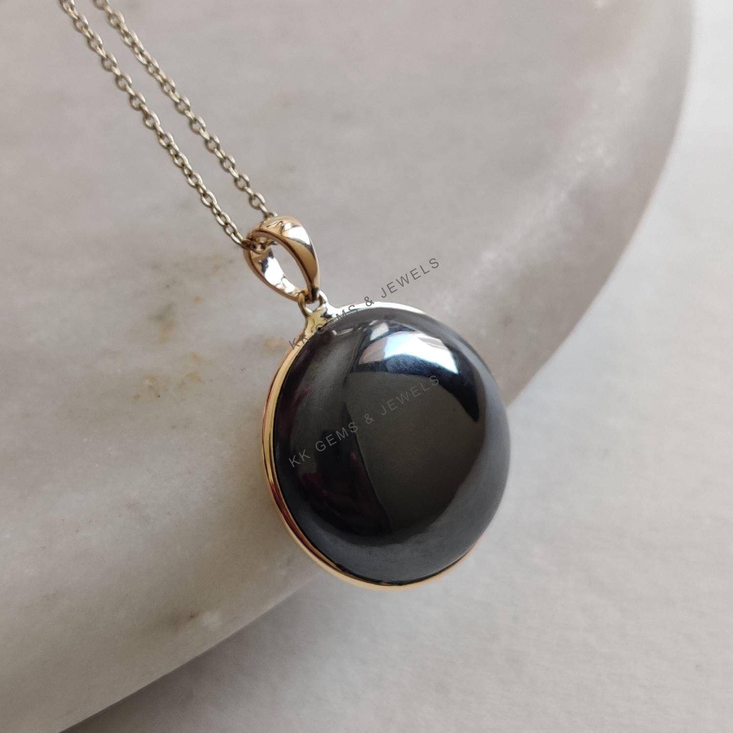 1 review for Round Shape Natural Hematite Birthstone Pendant Set in 14K Solid Yellow Gold