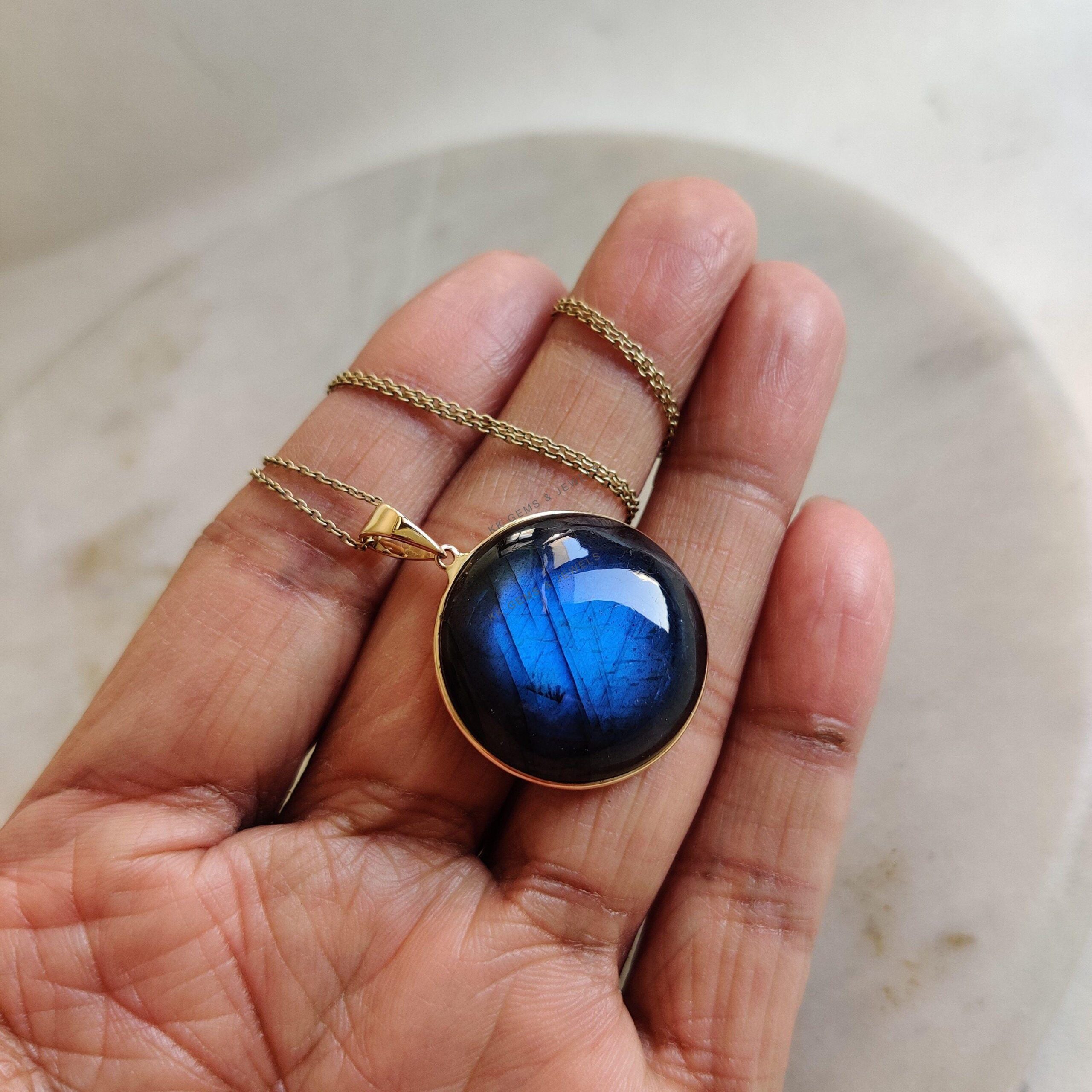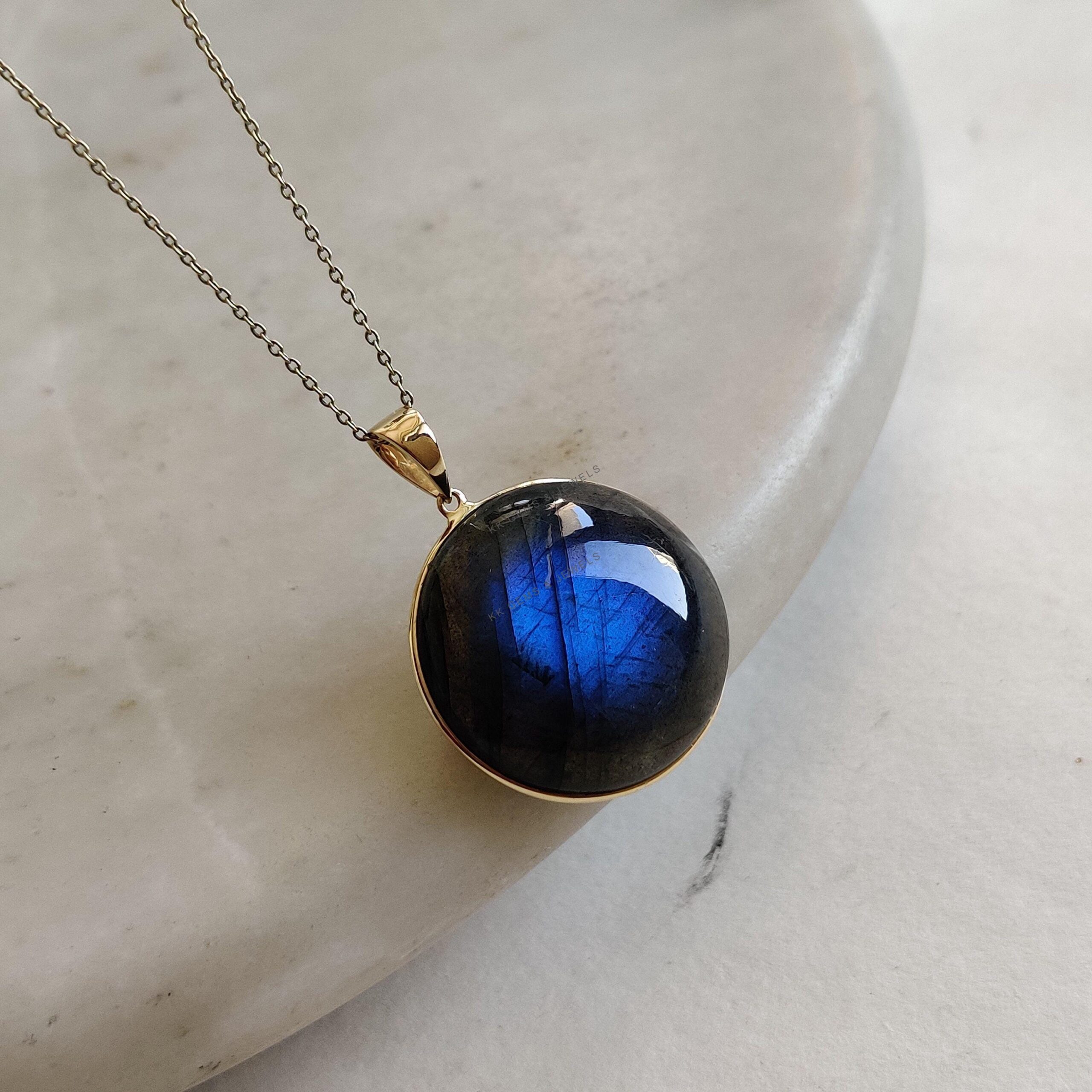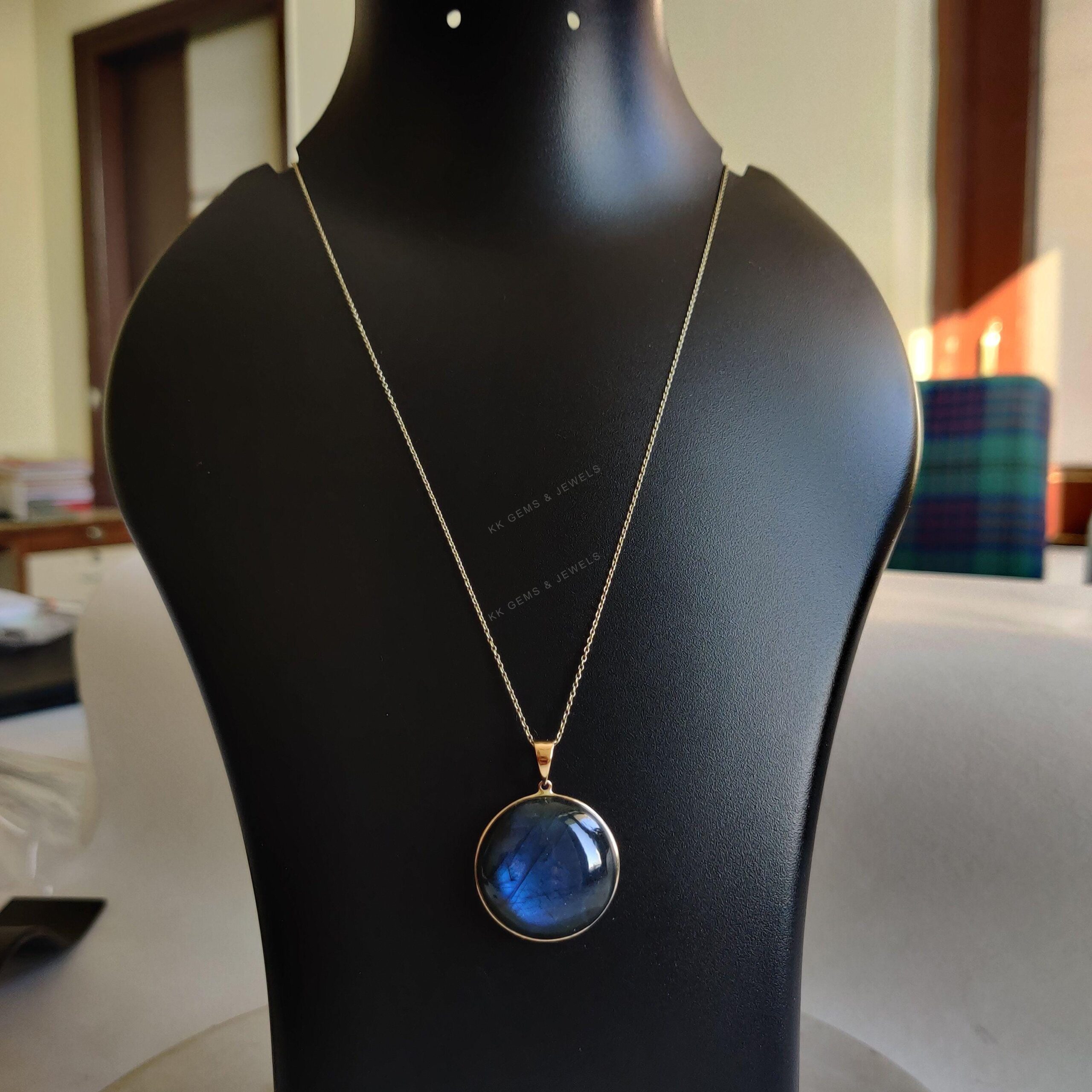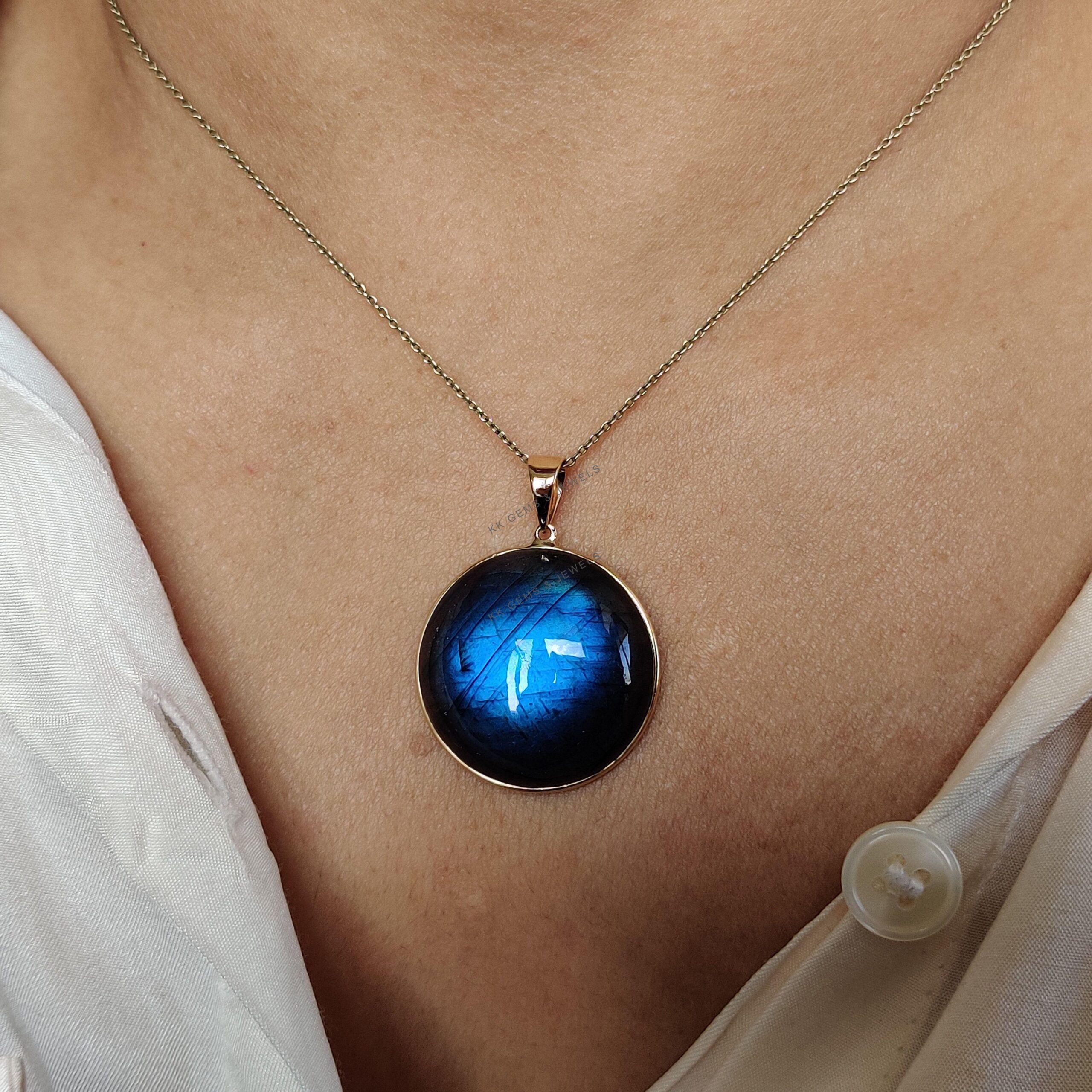 This stunning pendant is set in 14k Solid Yellow Gold with Natural Labradorite having a beautiful blue sheen. It is an unique gemstone pendant for nearly every occasion and is completely hassle-free jewelry. ✓ ABOUT GEMSTONE: Labradorite is a mesmerizing…
