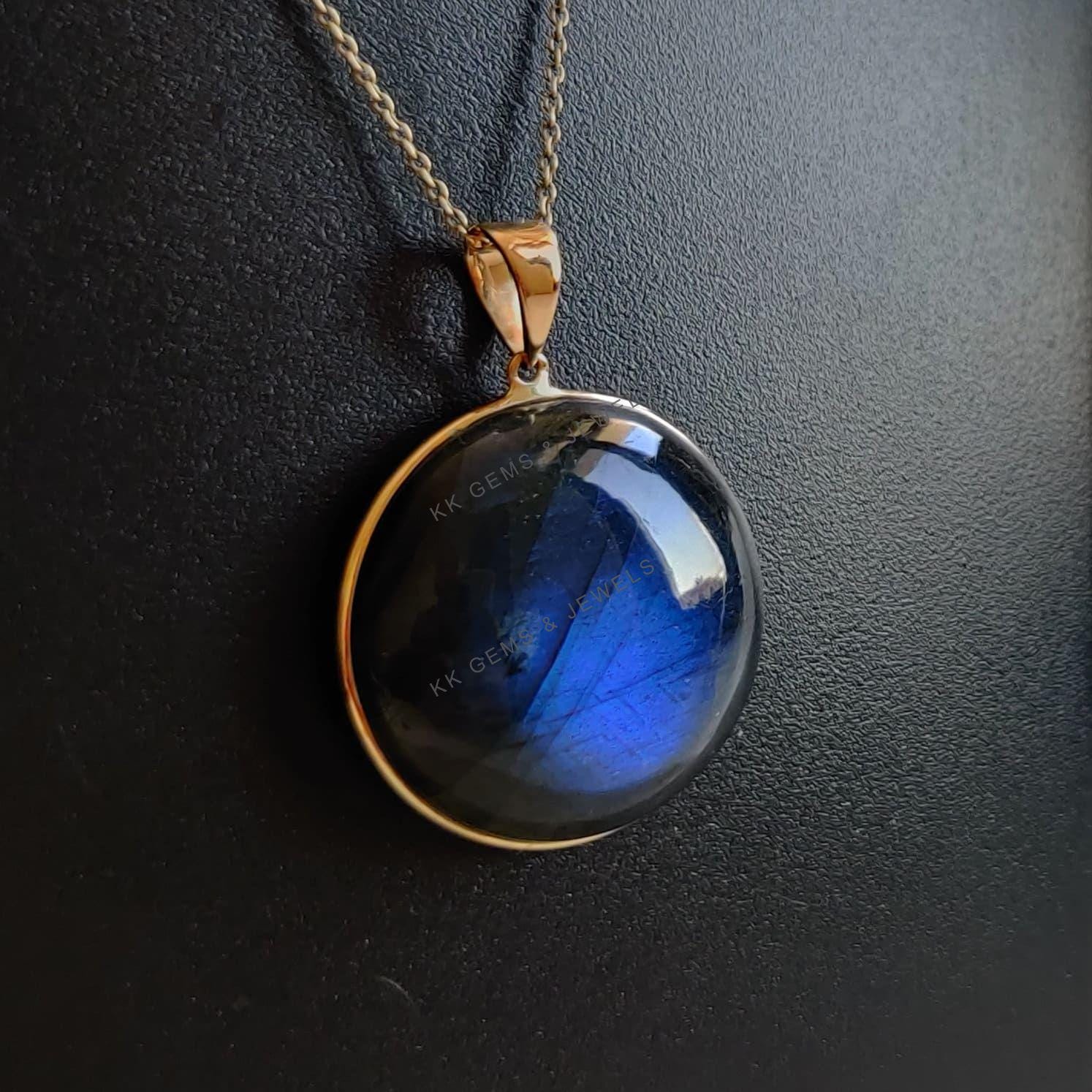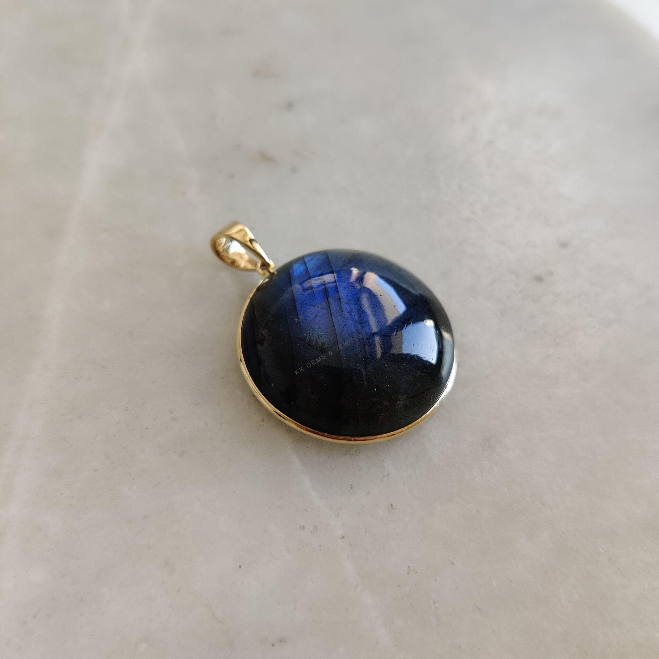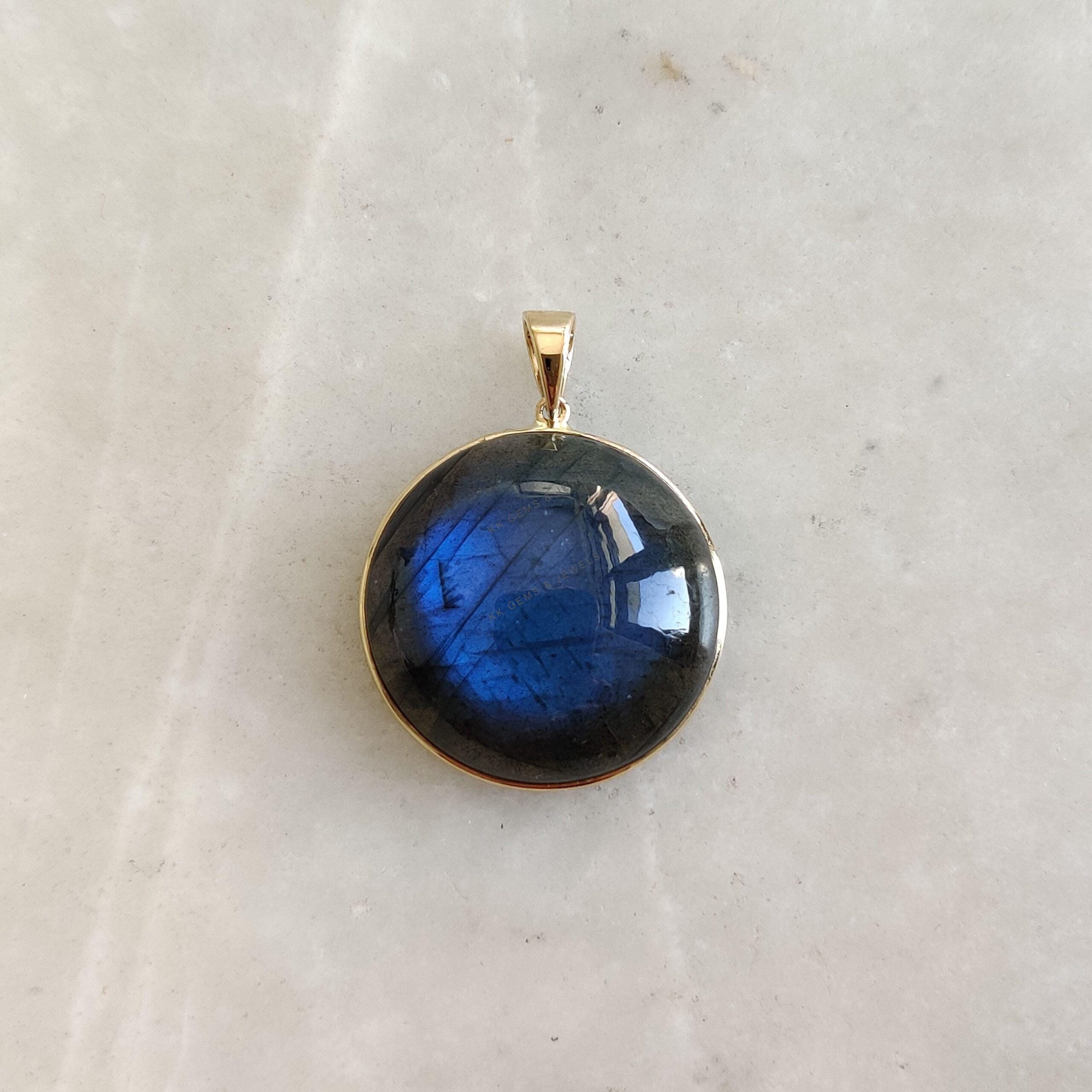 This stunning pendant is set in 14k Solid Yellow Gold with Natural Labradorite having a beautiful blue sheen. It is an unique gemstone pendant for nearly every occasion and is completely hassle-free jewelry.