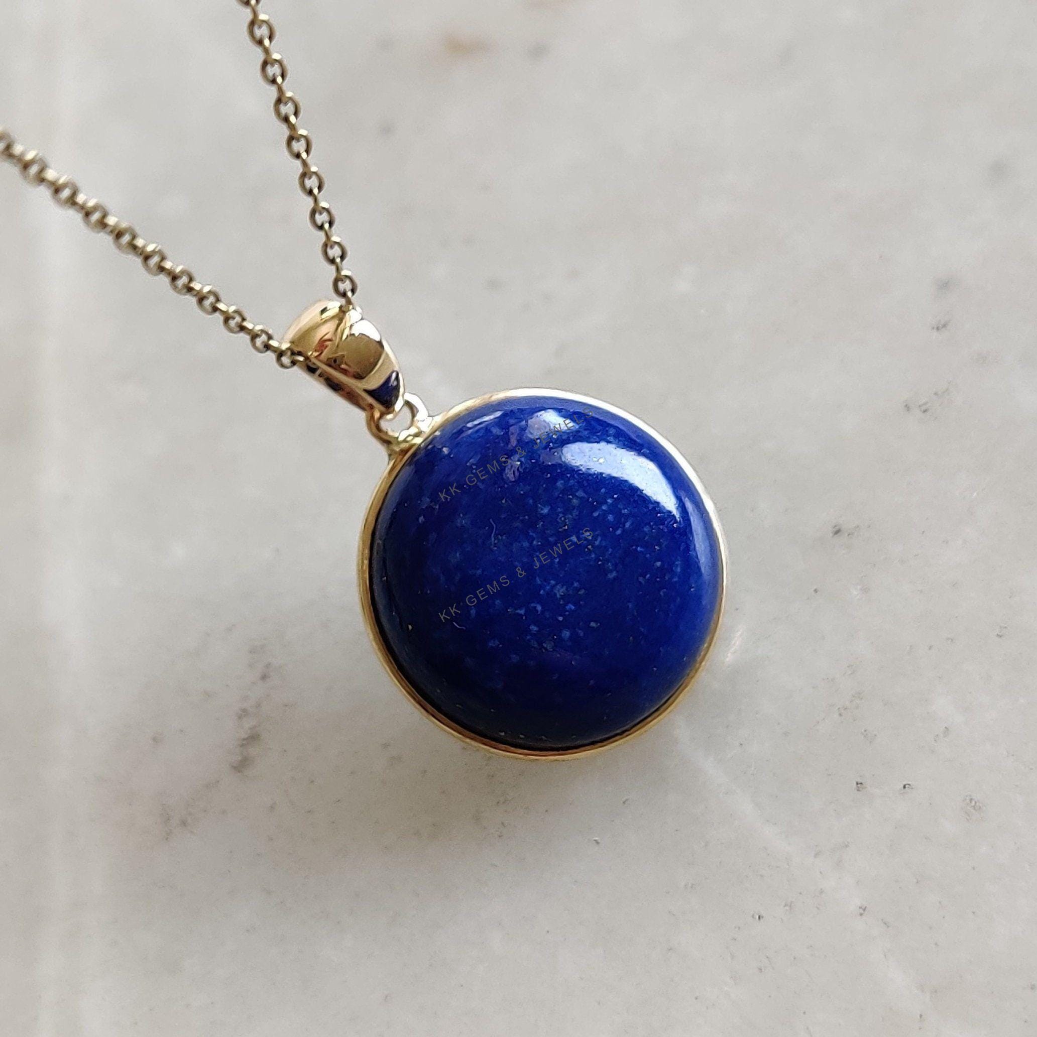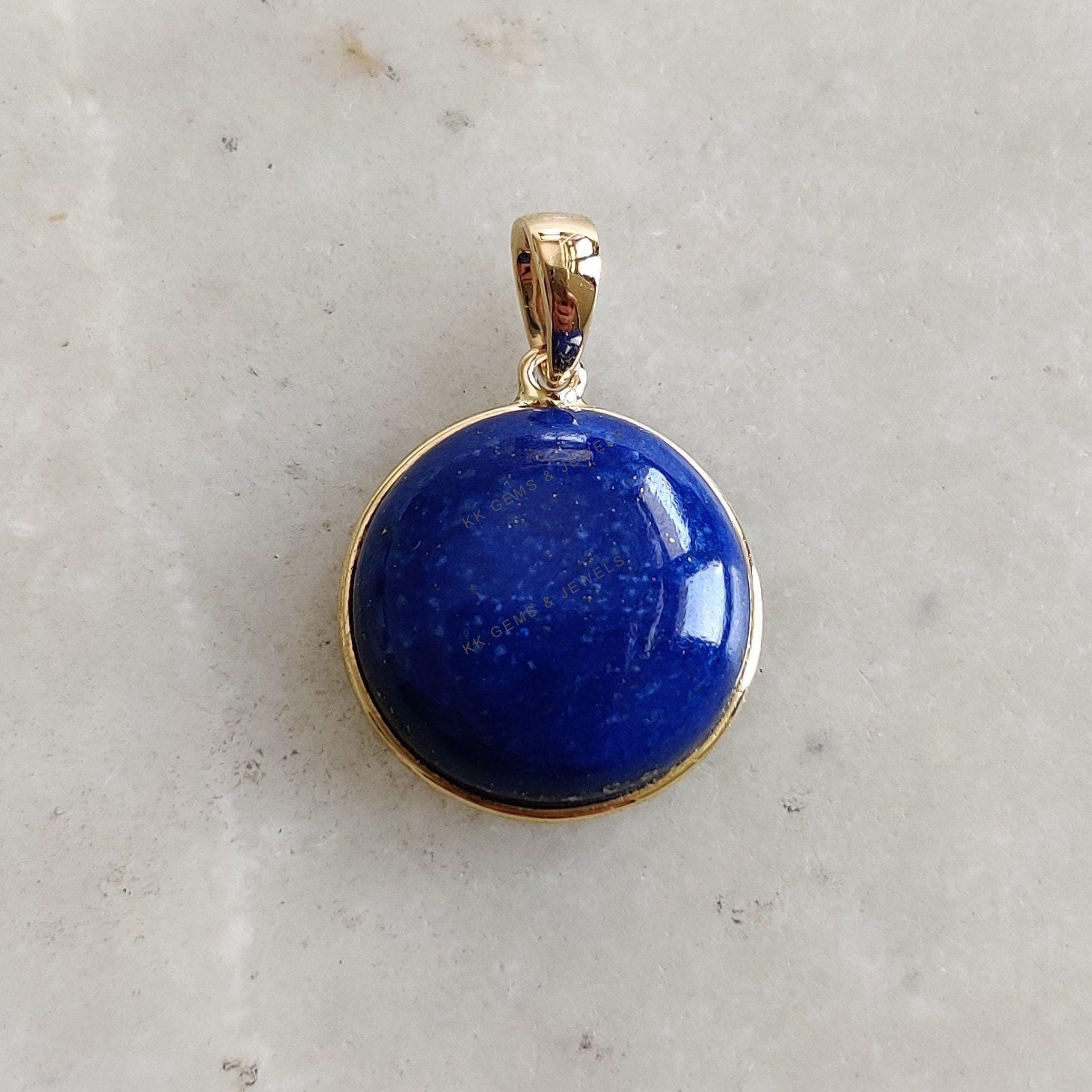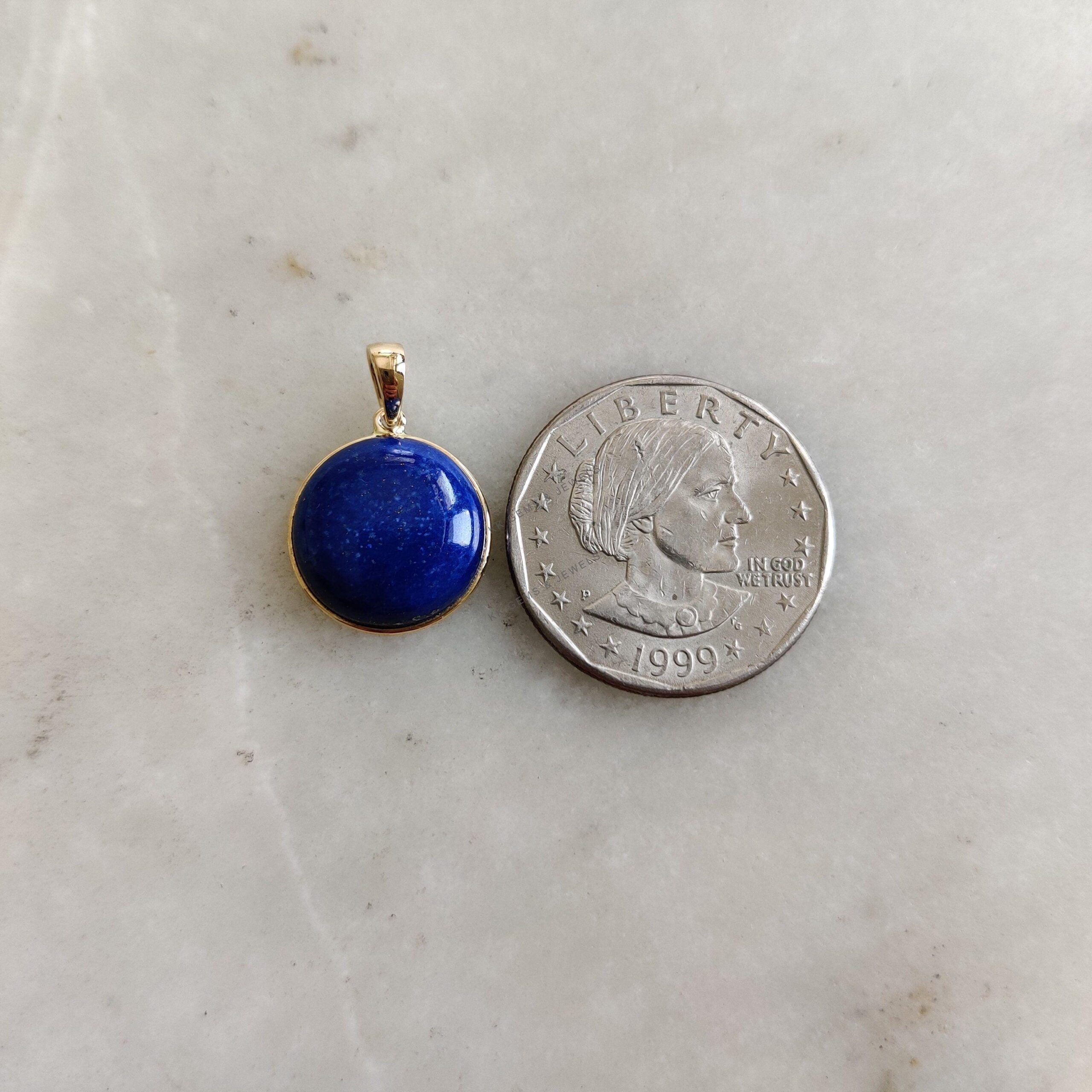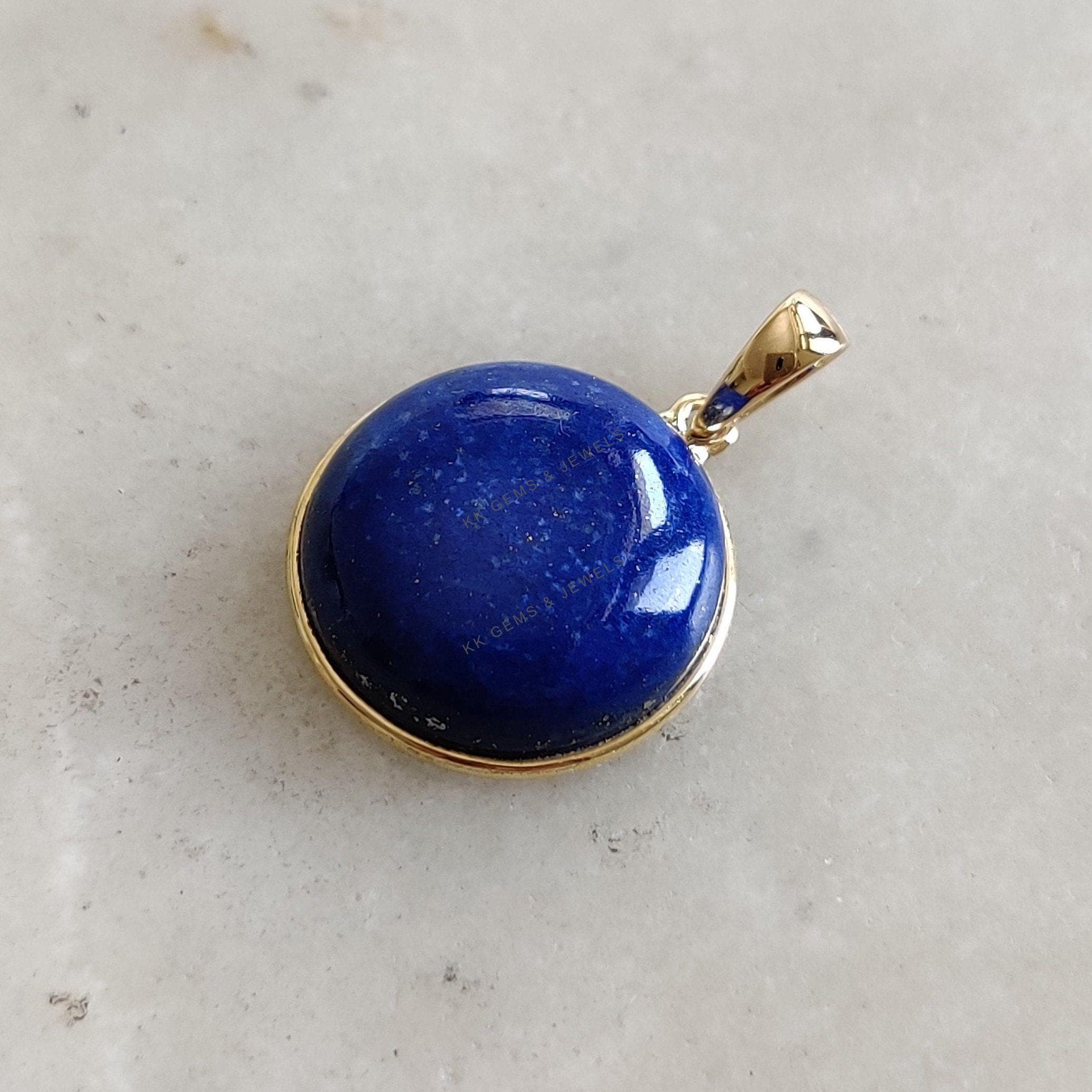 2 reviews for Round Shape Natural Lapis Lazuli Bezel Pendant Set in 14K Solid Gold