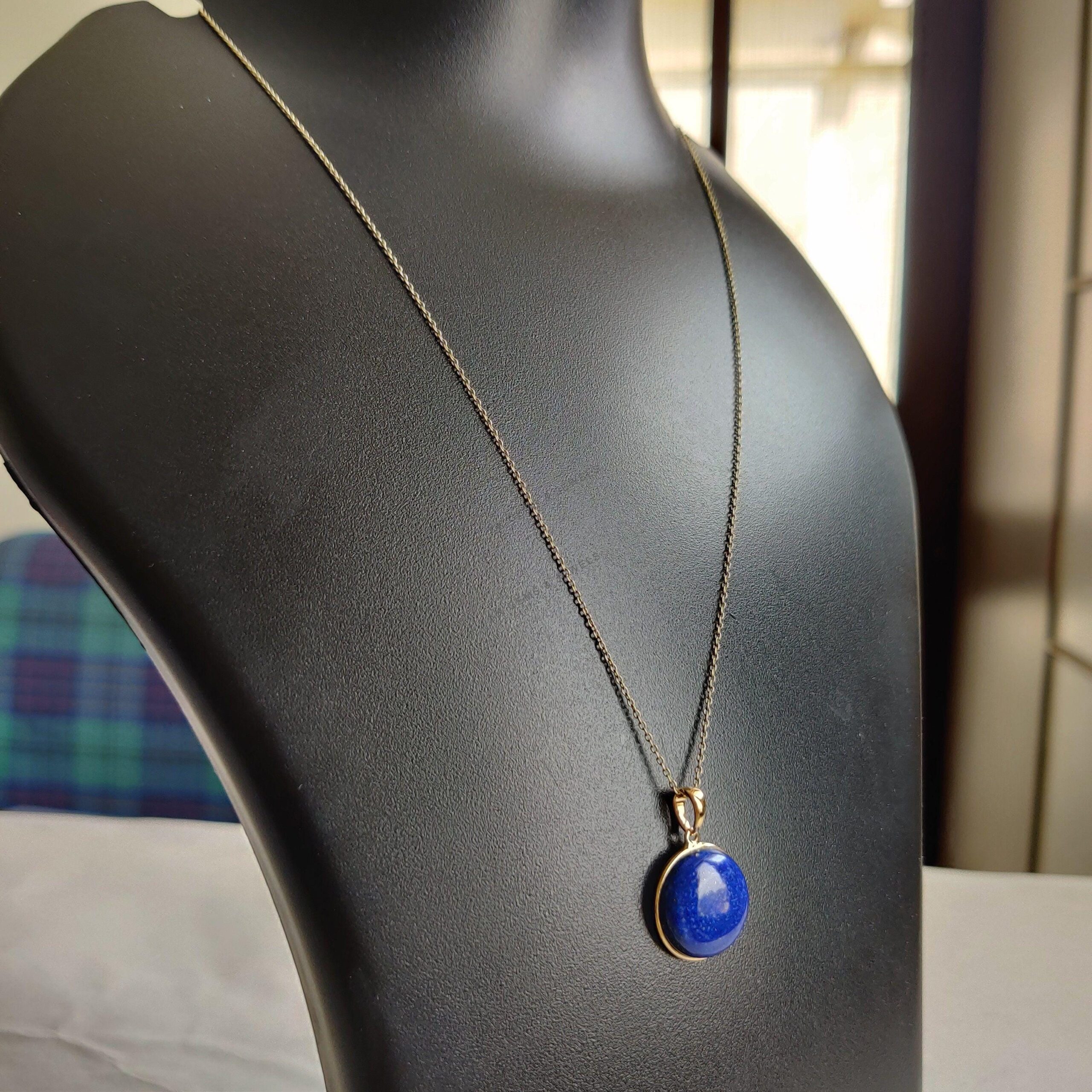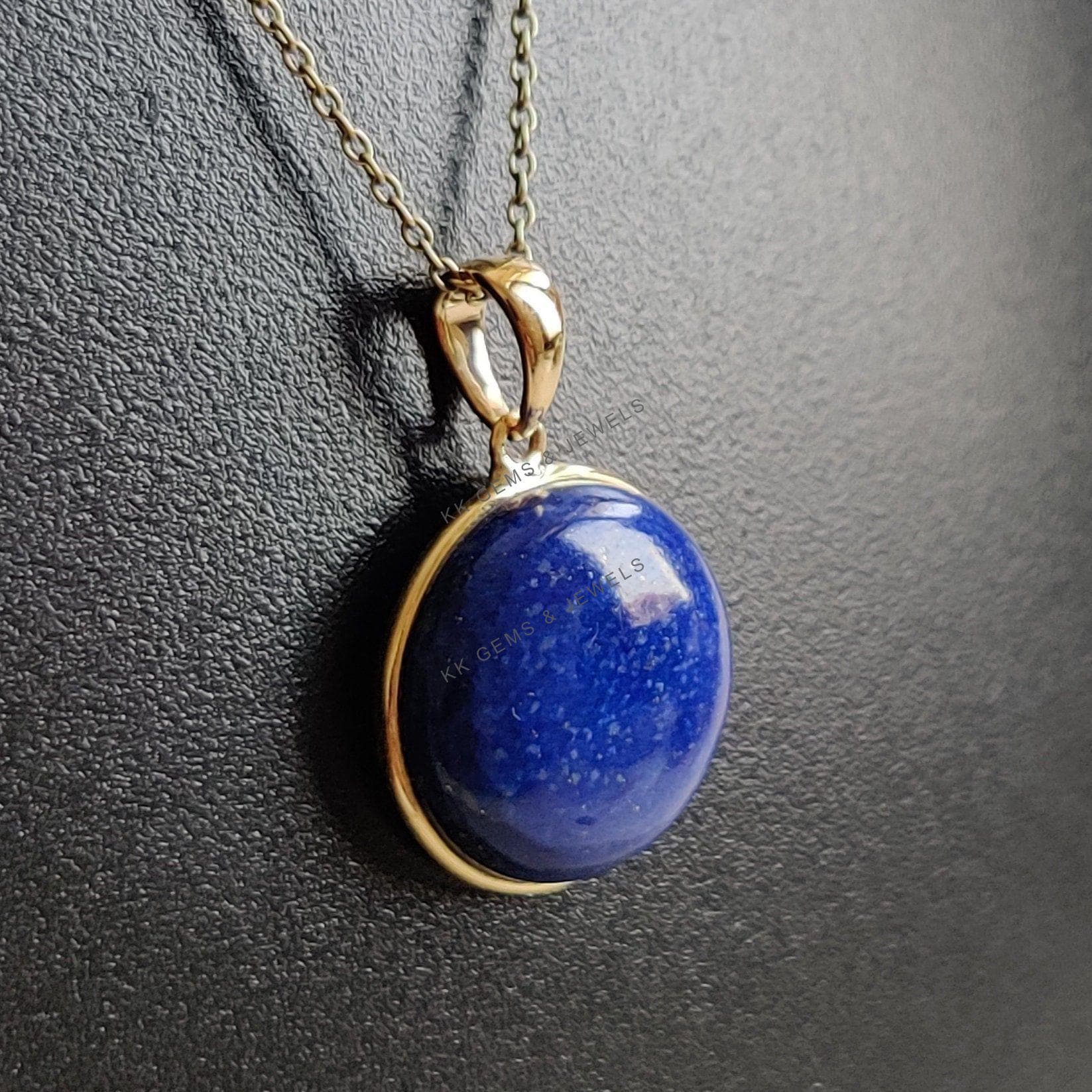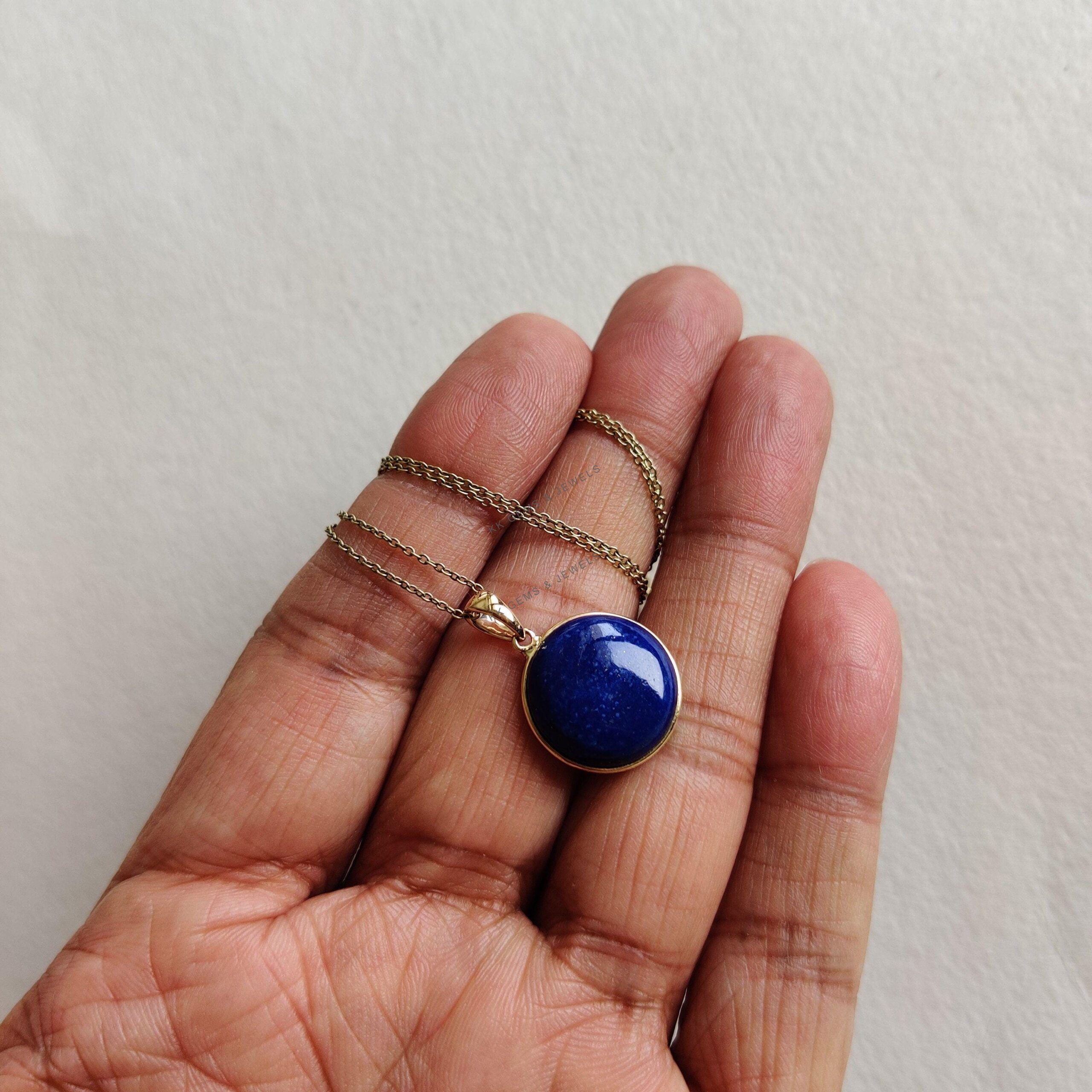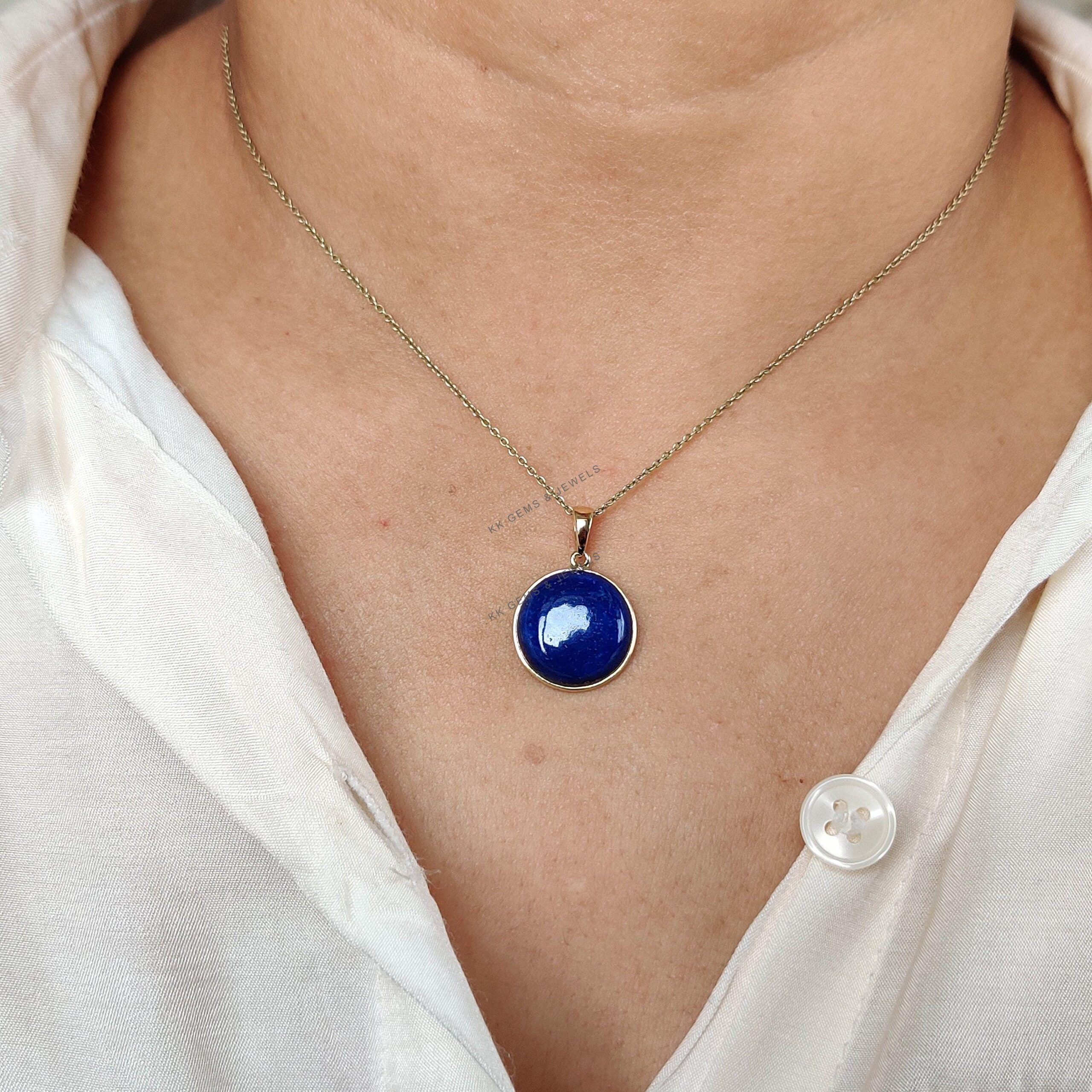 2 reviews for Round Shape Natural Lapis Lazuli Bezel Pendant Set in 14K Solid Gold