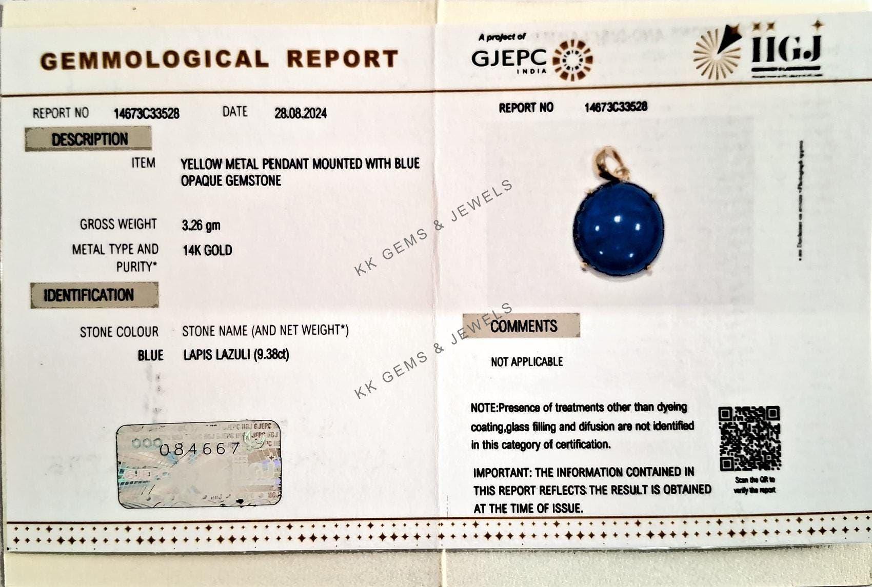 This stunning pendant is set in 14K Solid Yellow Gold with Natural Lapis Lazuli with utmost precision. It is an unique gemstone pendant for nearly every occasion and is completely hassle-free jewelry.