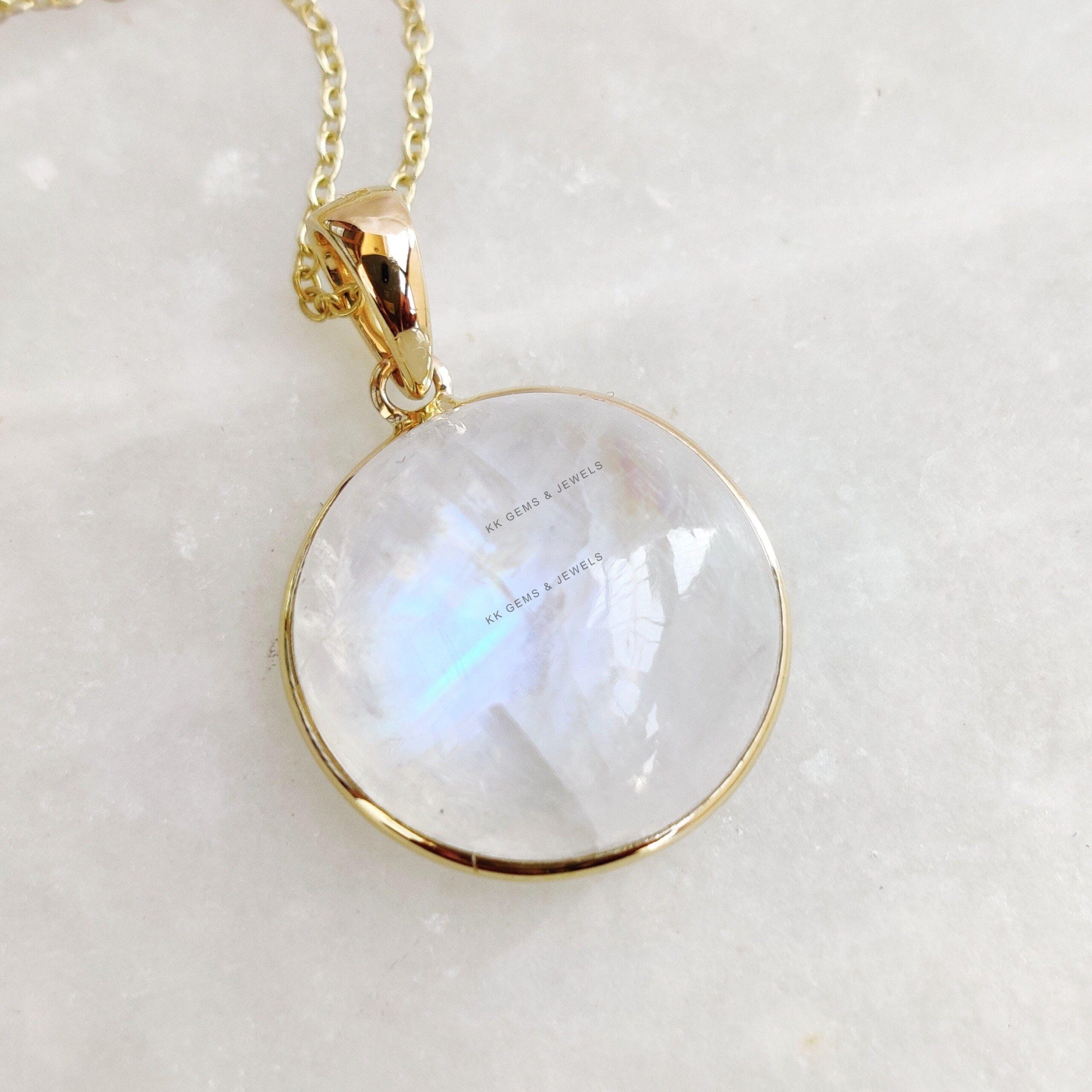 This stunning pendant is set in 14K Solid Yellow Gold with Natural Rainbow Moonstone with utmost precision. It is an unique gemstone pendant for nearly every occasion and is completely hassle-free jewelry. ABOUT GEMSTONE: Rainbow Moonstone is believed to help…