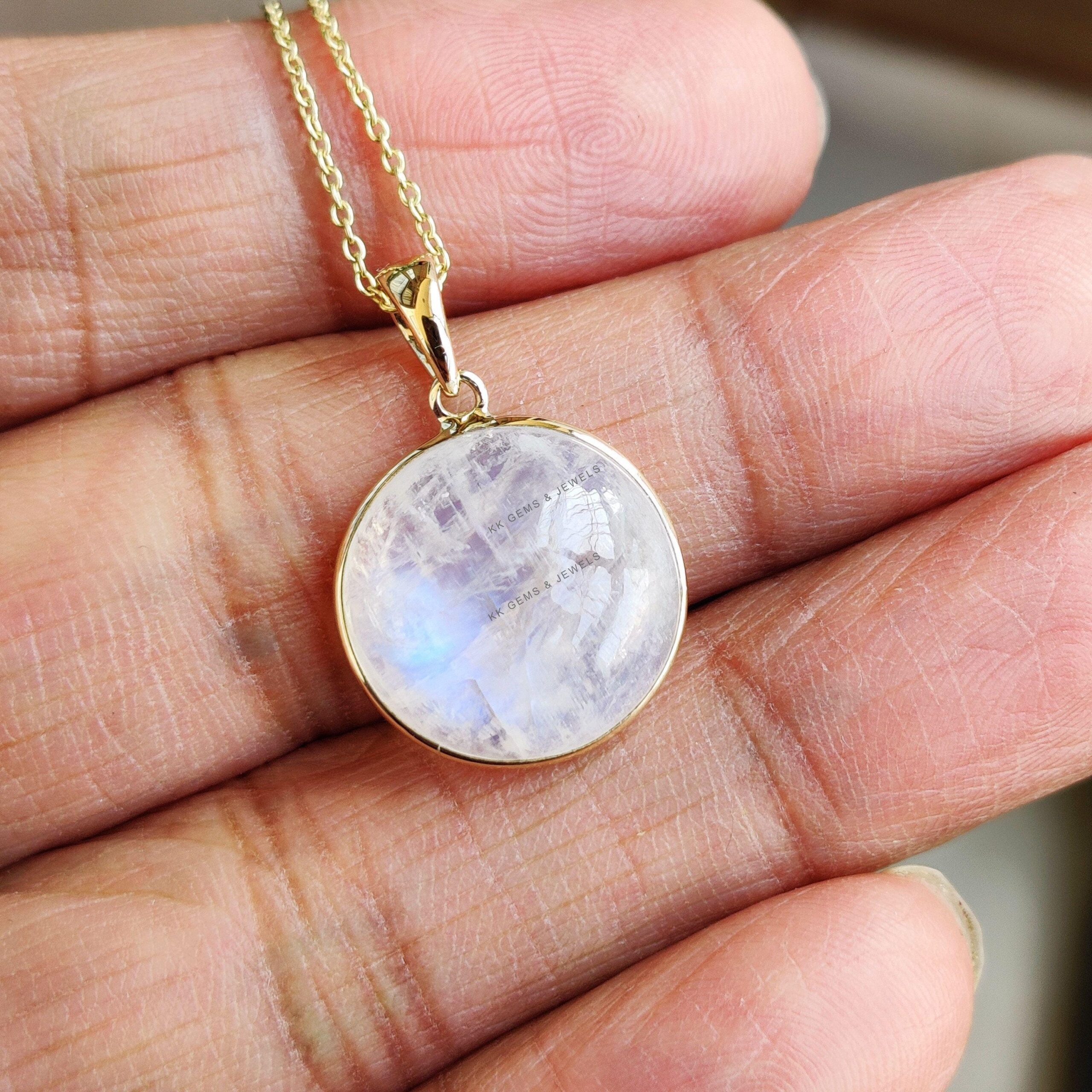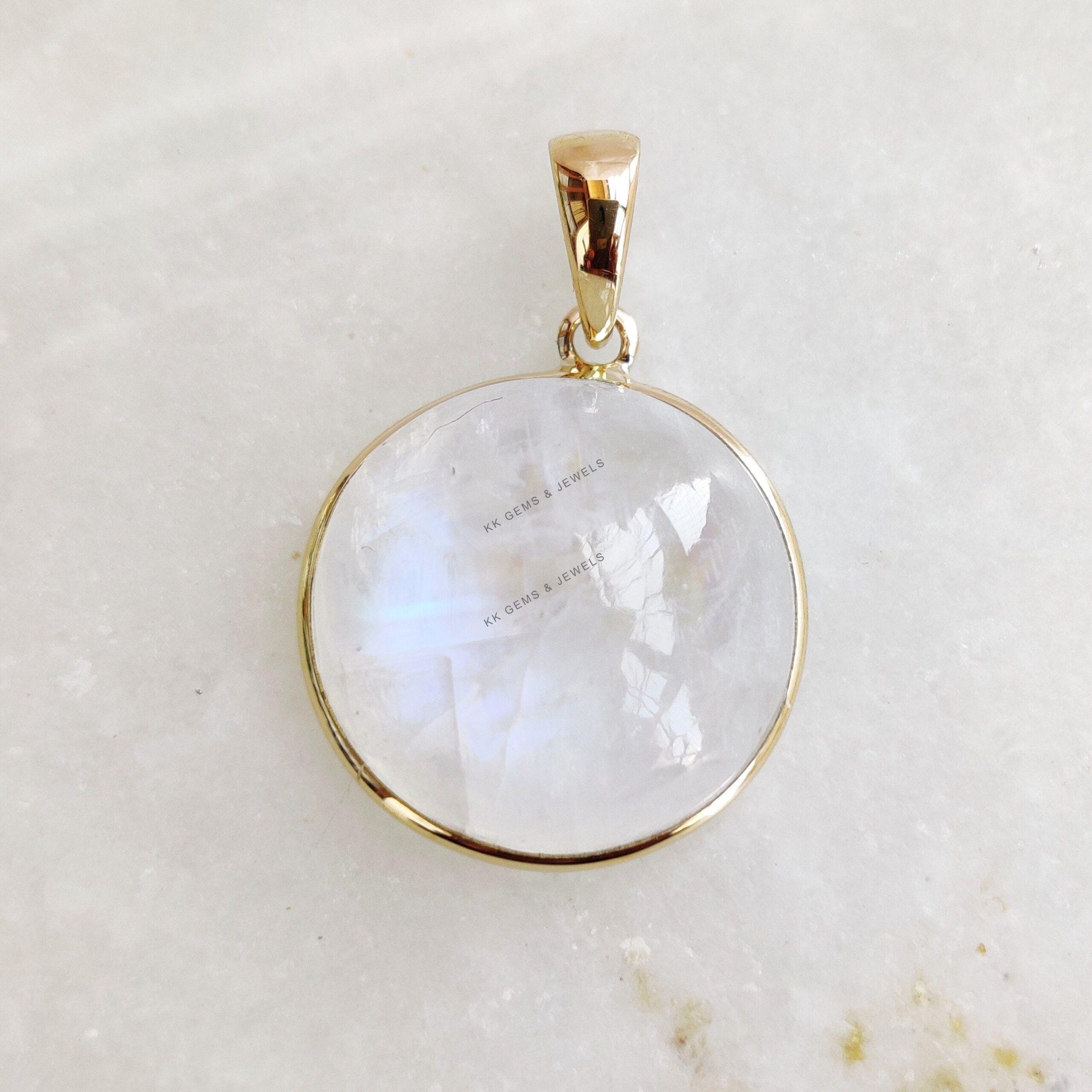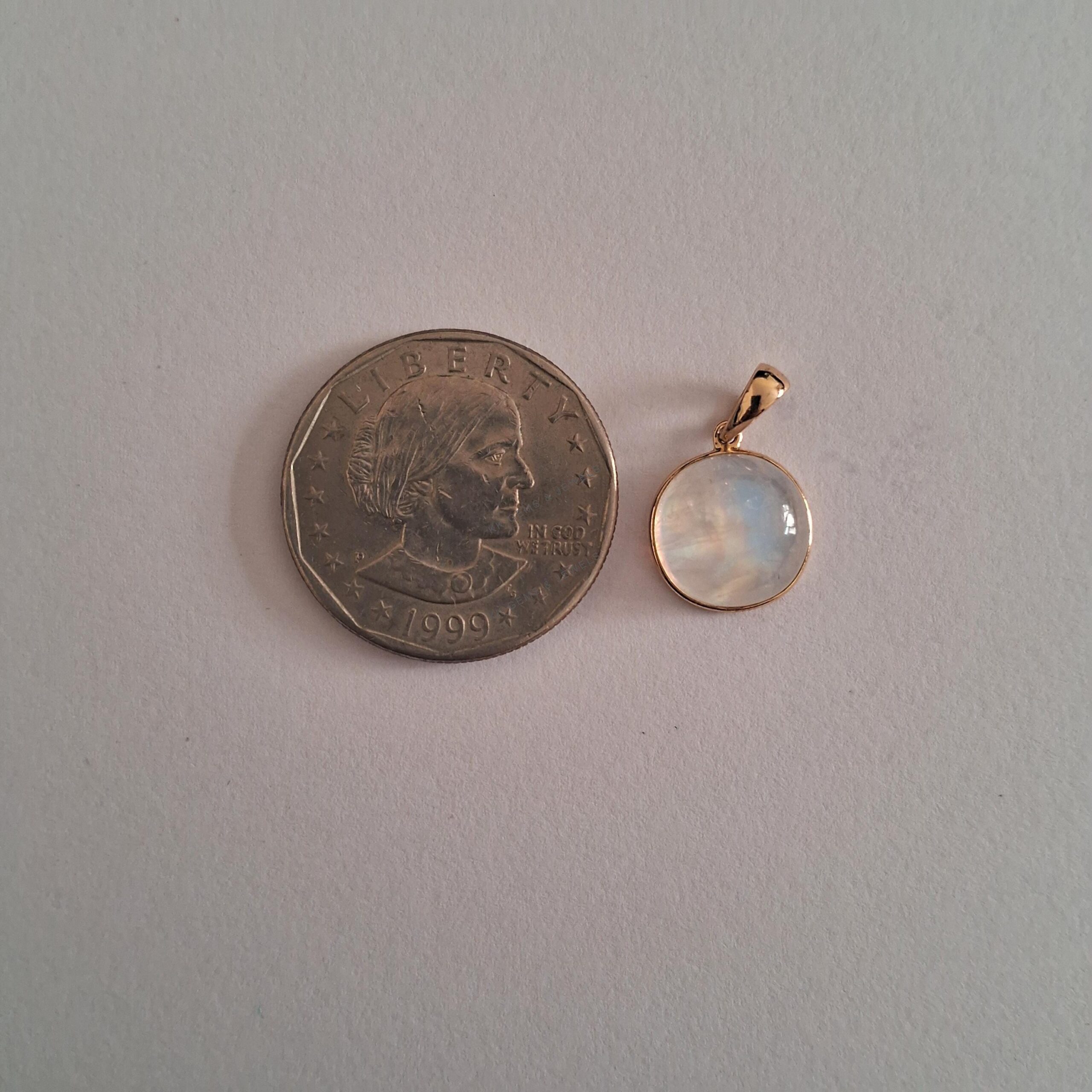 3 reviews for Round Cabochon Natural Rainbow Moonstone Pendant, Set in 14K Yellow Gold Bezel