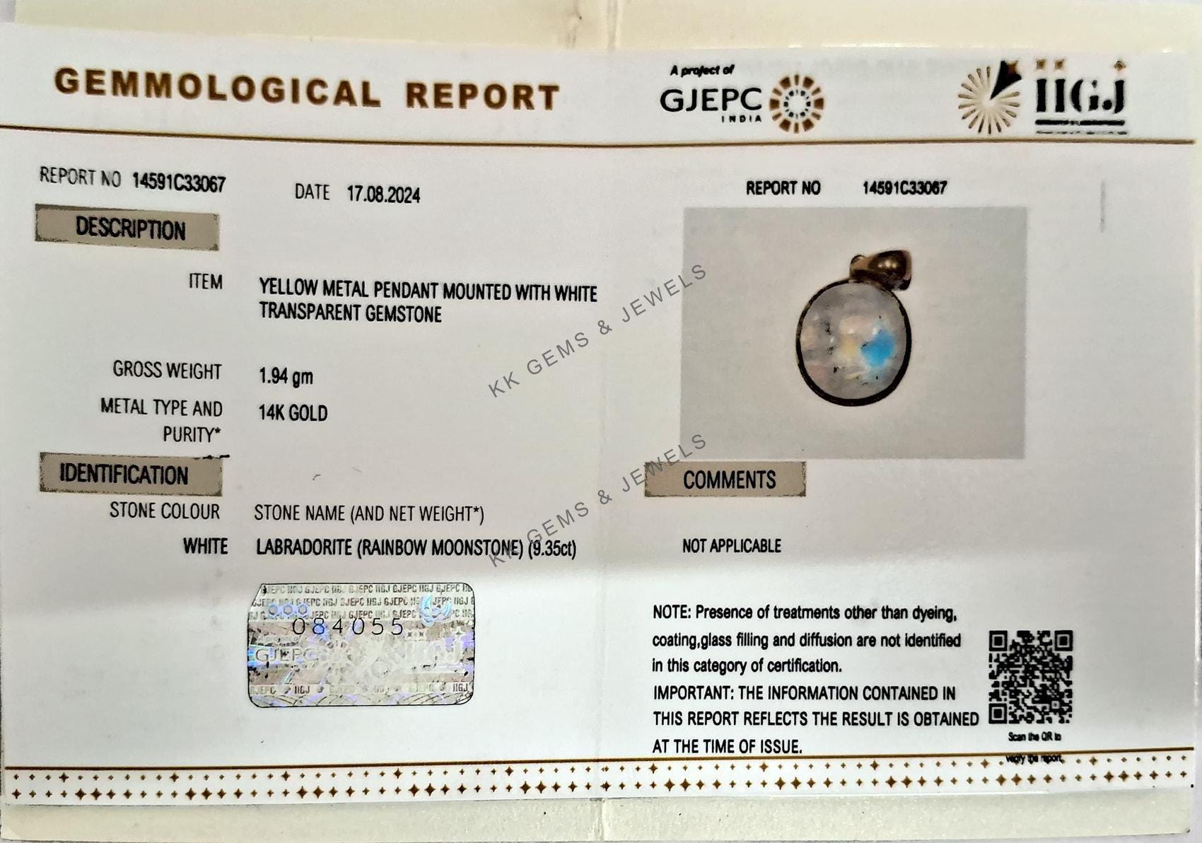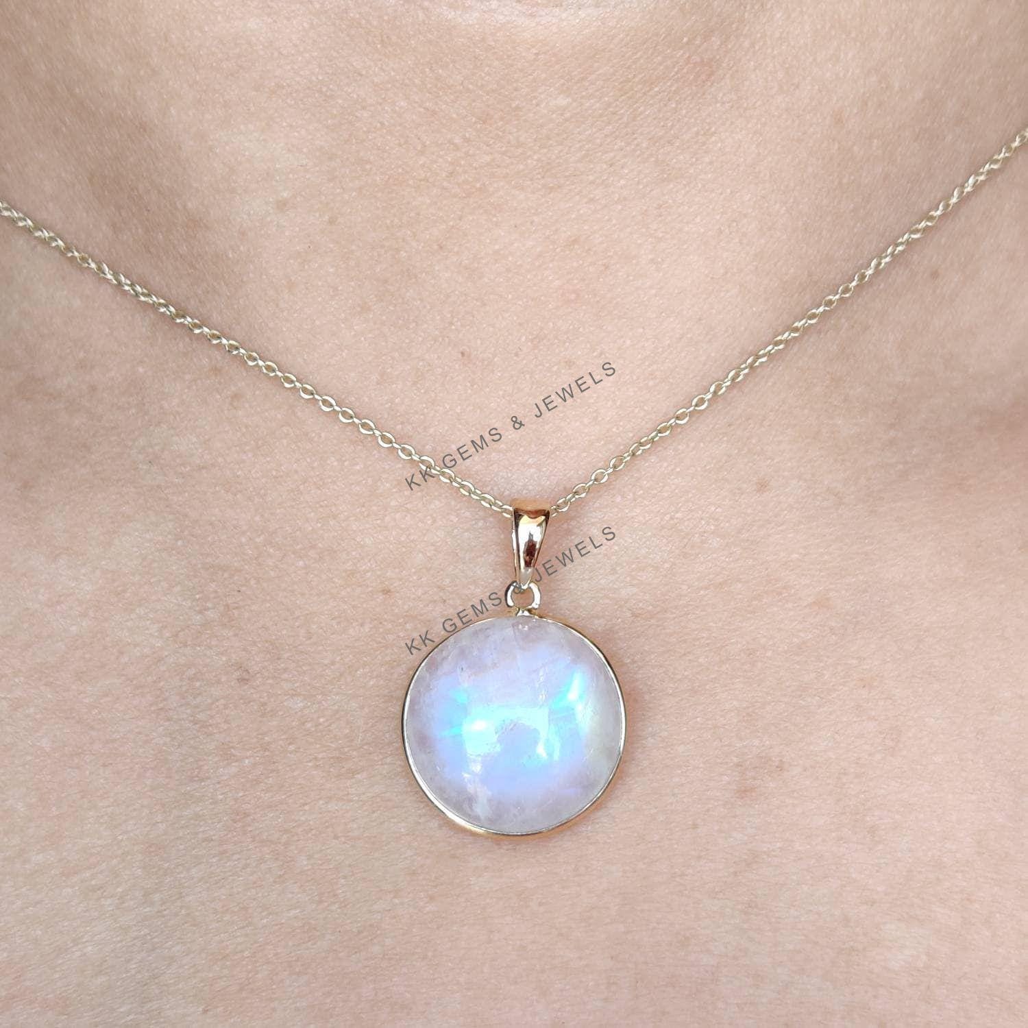 This stunning pendant is set in 14K Solid Yellow Gold with Natural Rainbow Moonstone with utmost precision. It is an unique gemstone pendant for nearly every occasion and is completely hassle-free jewelry.