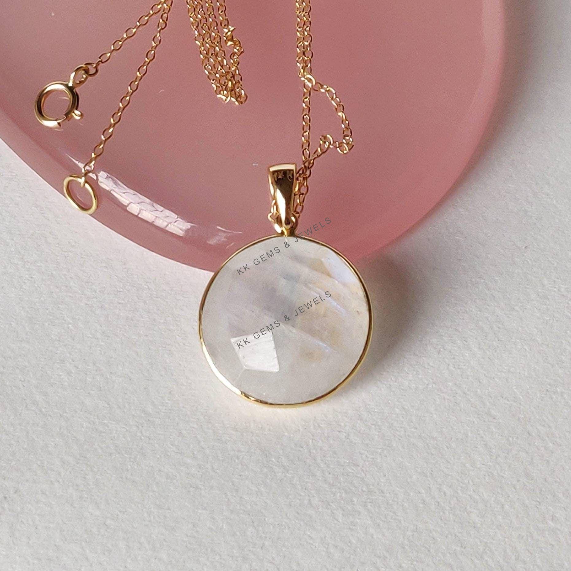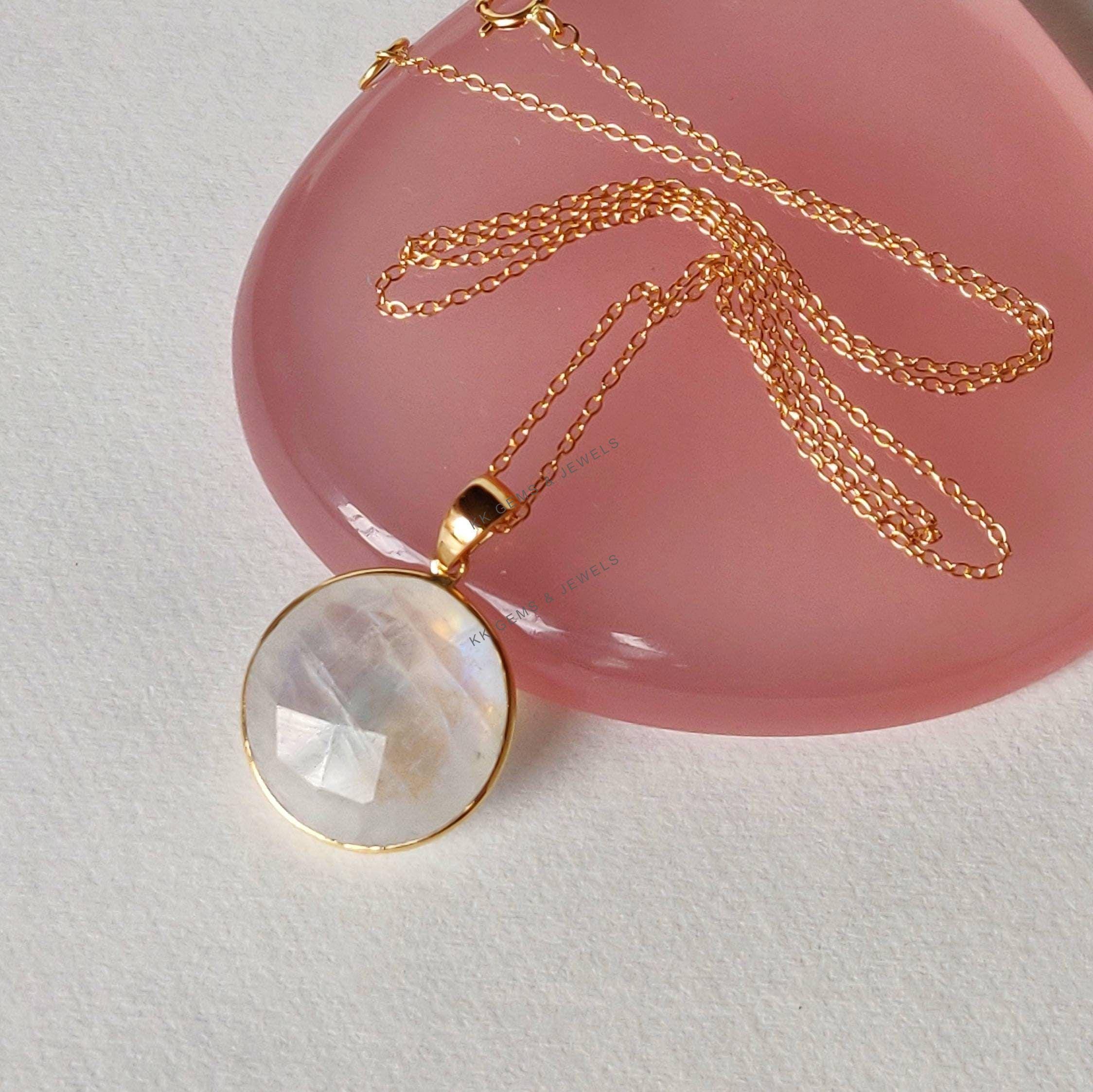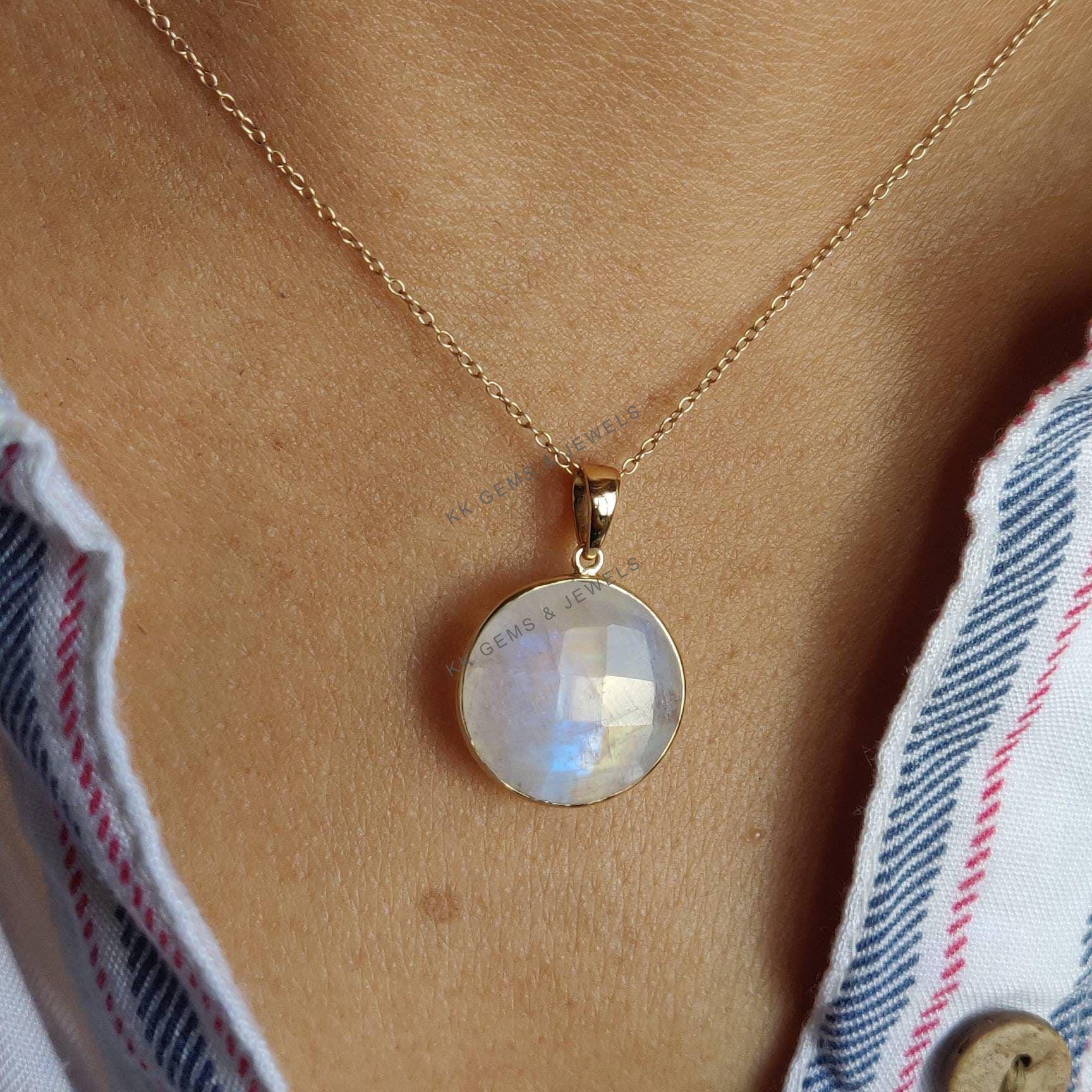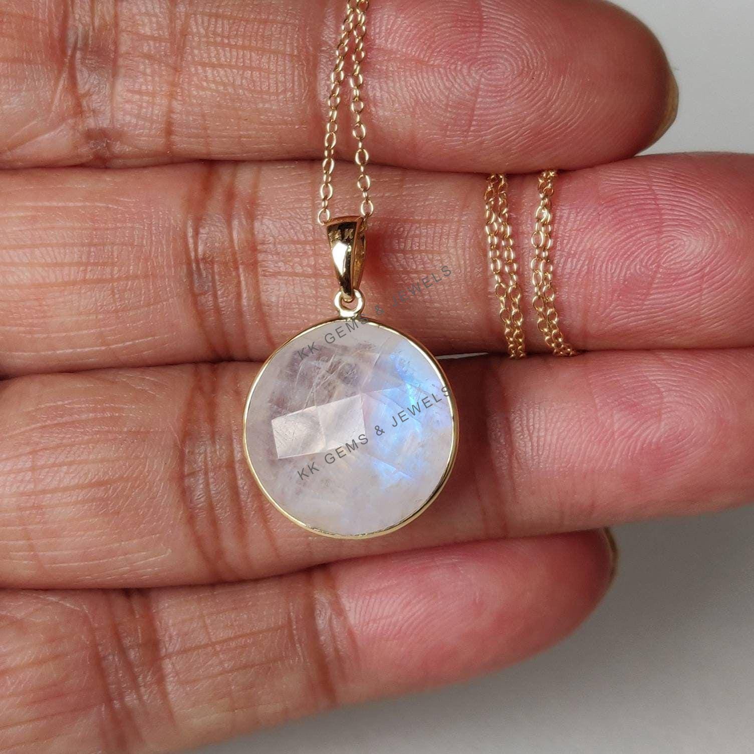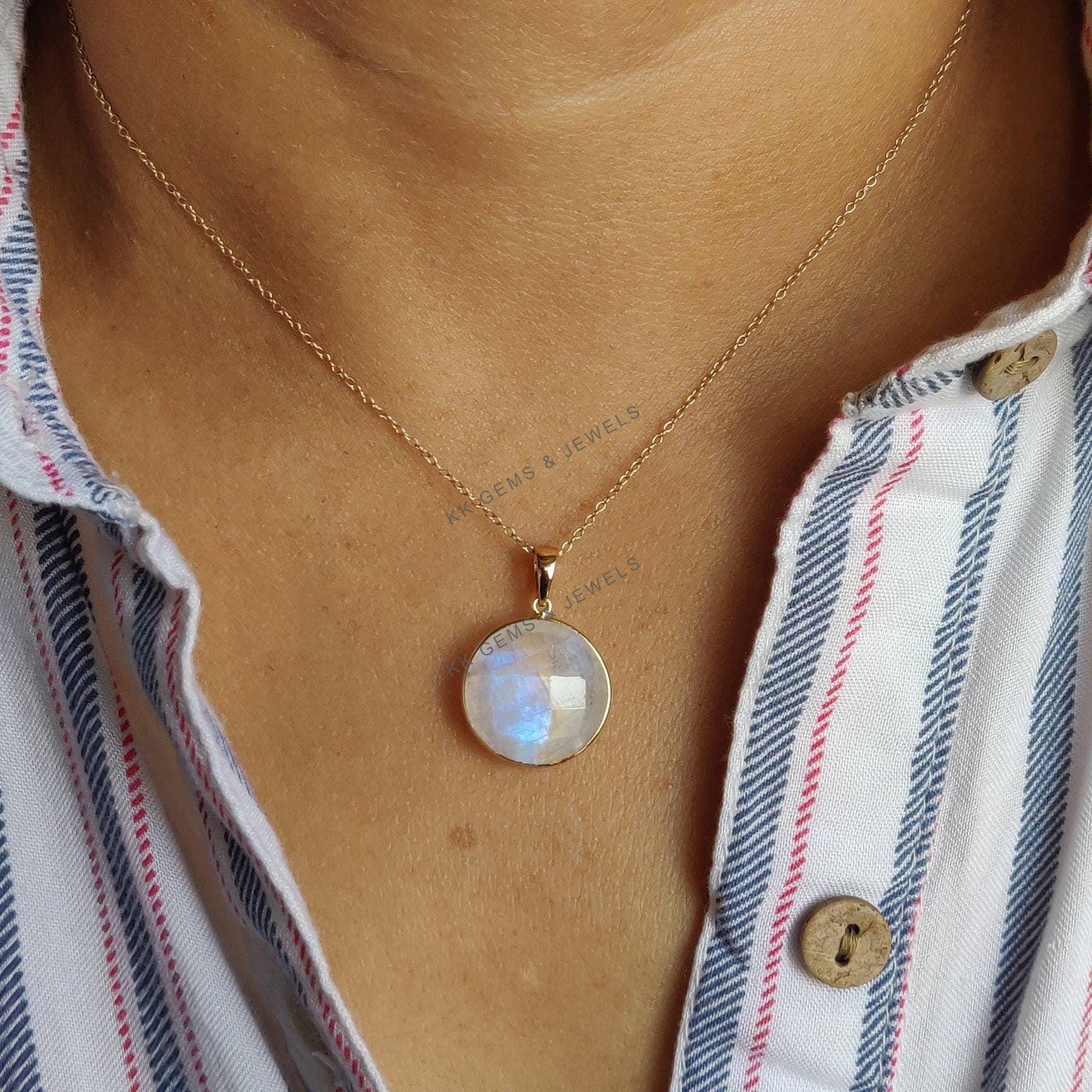 This stunning pendant is set in 14k Solid Yellow Gold with Natural Rainbow Moonstone with utmost precision. It is an unique gemstone pendant for nearly every occasion and is completely hassle-free jewelry. ✓ ABOUT GEMSTONE: Rainbow Moonstone is believed to…