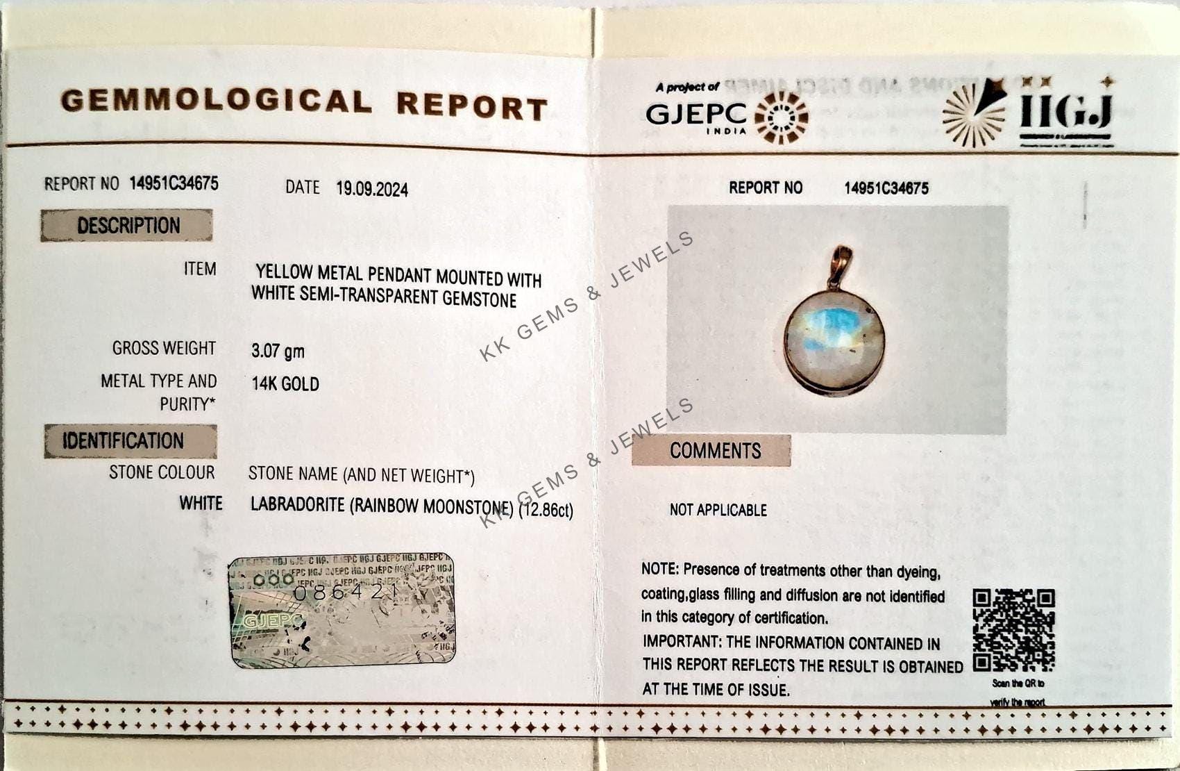 This stunning pendant is set in 14k Solid Yellow Gold with Natural Rainbow Moonstone with utmost precision. It is an unique gemstone pendant for nearly every occasion and is completely hassle-free jewelry.